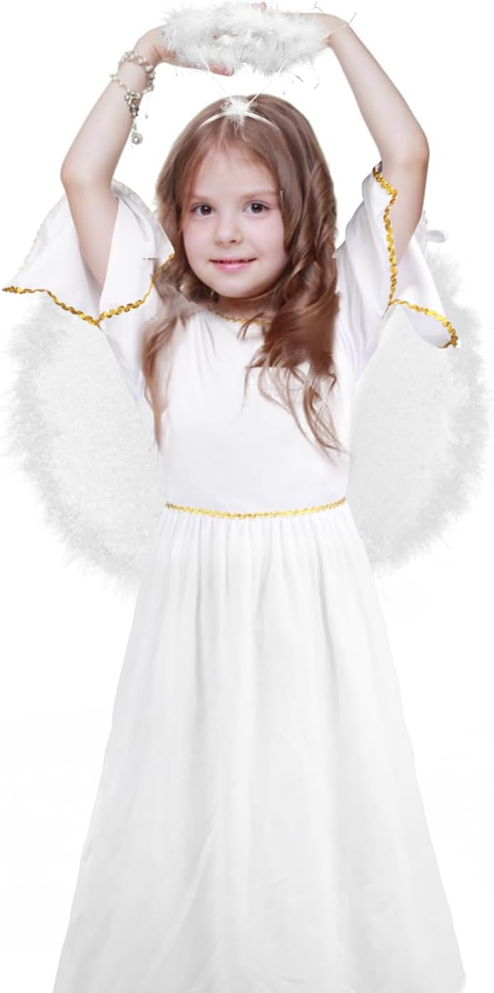 Descrizione prodotto Vero design: questo costume da angelo include abiti d'angelo, le ali e il cerchio della testa riflettono perfettamente lo spirito del Natale. Avviso di sicurezza No