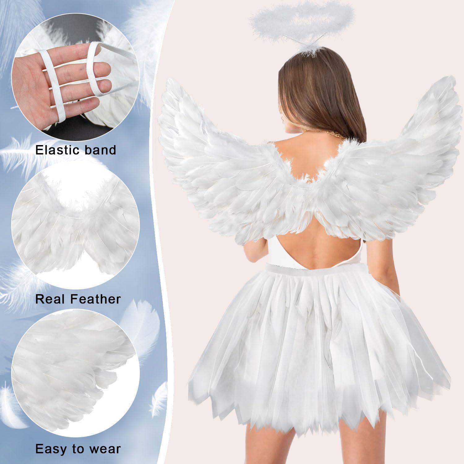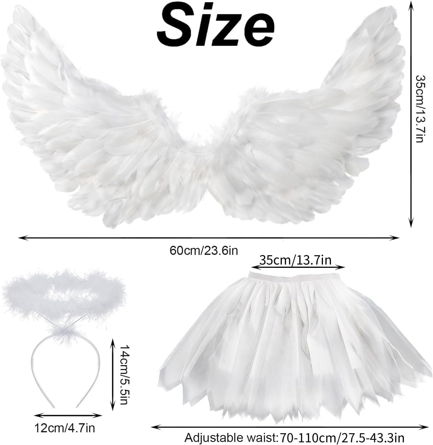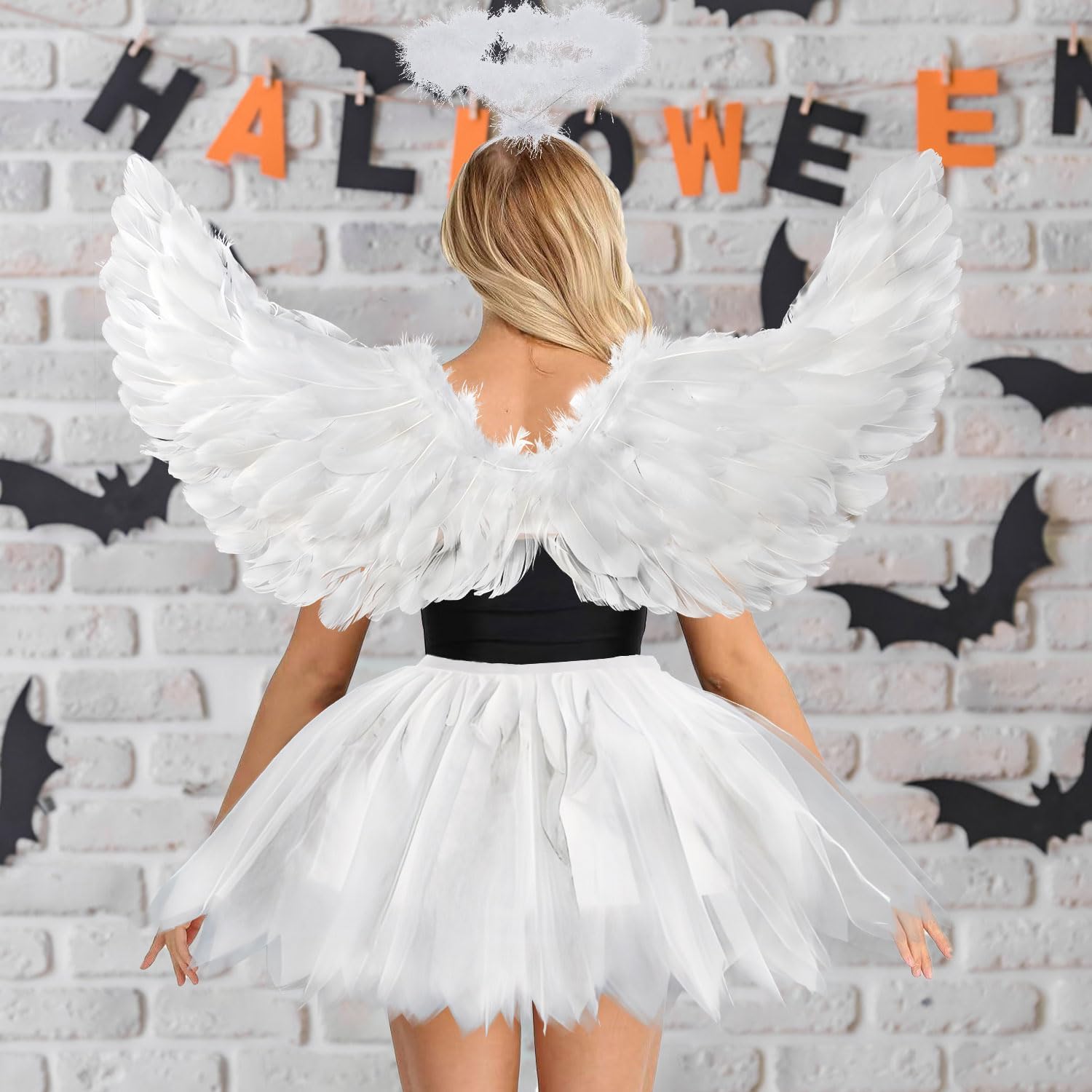Set di costume da angelo da donna: il nostro costume da ala d'angelo e alone include 3 pezzi: 1 ala d'angelo, 1 gonna, 1 fascia halo angelo. Un'ala d'angelo ti rende l'angelo più bello. Gonne tutù sono state scelte: fodera morbida e sottogonna con muti-strati e in stile irregolare, ottimo servizio per il vostro carnevale, Halloween, feste di angelo Facile da trasportare: le ali d'angelo sono progettate con elastico regolabile, che è facile da vestire e comodo per un lungo periodo di tempo. Spallacci elastici, ali pieghevoli al centro permettono di indossare due modi diversi, più facile e comodo per trasportare le ali del costume. Ideale per costumi e feste a tema: ali d'angelo e alone, ideale per costumi e feste a tema, ali d'angelo, Halloween, feste natalizie, giochi a scuola, servizi fotografici o per vestirsi. Da indossare per Halloween, Natale e altre feste, ma anche per le prestazioni palcoscenico. Regalo sorprendente: queste ali d'angelo sono un regalo di benvenuto, perfette per celebrare vacanze, compleanni per ragazze, saranno sorpresi di ricevere questo regalo, vestito per le prossime vacanze e feste. Datele la sorpresa più inaspettata.