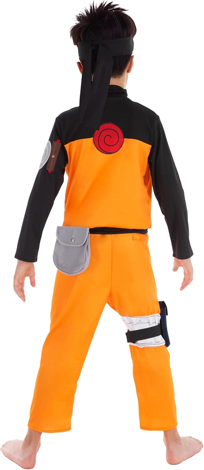 Look anime per adulti: questo costume di Naruto Shippuden porta lo stile unico del personaggio cult direttamente nel tuo guardaroba e trasforma la vita di tutti i giorni in avventure Pronto per le occasioni speciali: nella taglia L, il costume è ampio e offre sufficiente libertà di movimento per ricreare le scene dell'anime con vivacità e sicurezza Cinque pezzi per una trasformazione completa: top, pantaloni, bandana, marsupio e scaldamuscoli con tasca completano il outfit e garantiscono un aspetto autentico Riconoscibile dai fan: con il suo design nero e arancione, il suo simbolo sulla schiena e fascia per capelli, sarai subito riconosciuto e acclamato come un vero fan. Una forte dichiarazione agli eventi: Comic Con, Halloween o feste a tema, questo costume esprime chiaramente il tuo amore per la serie e ti renderà irresistibile in ogni situazione