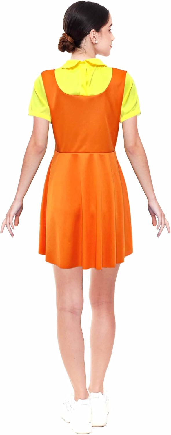 Costume da bambola del gioco del calamaro da donna. Completo di vestito. Scarpe non incluse