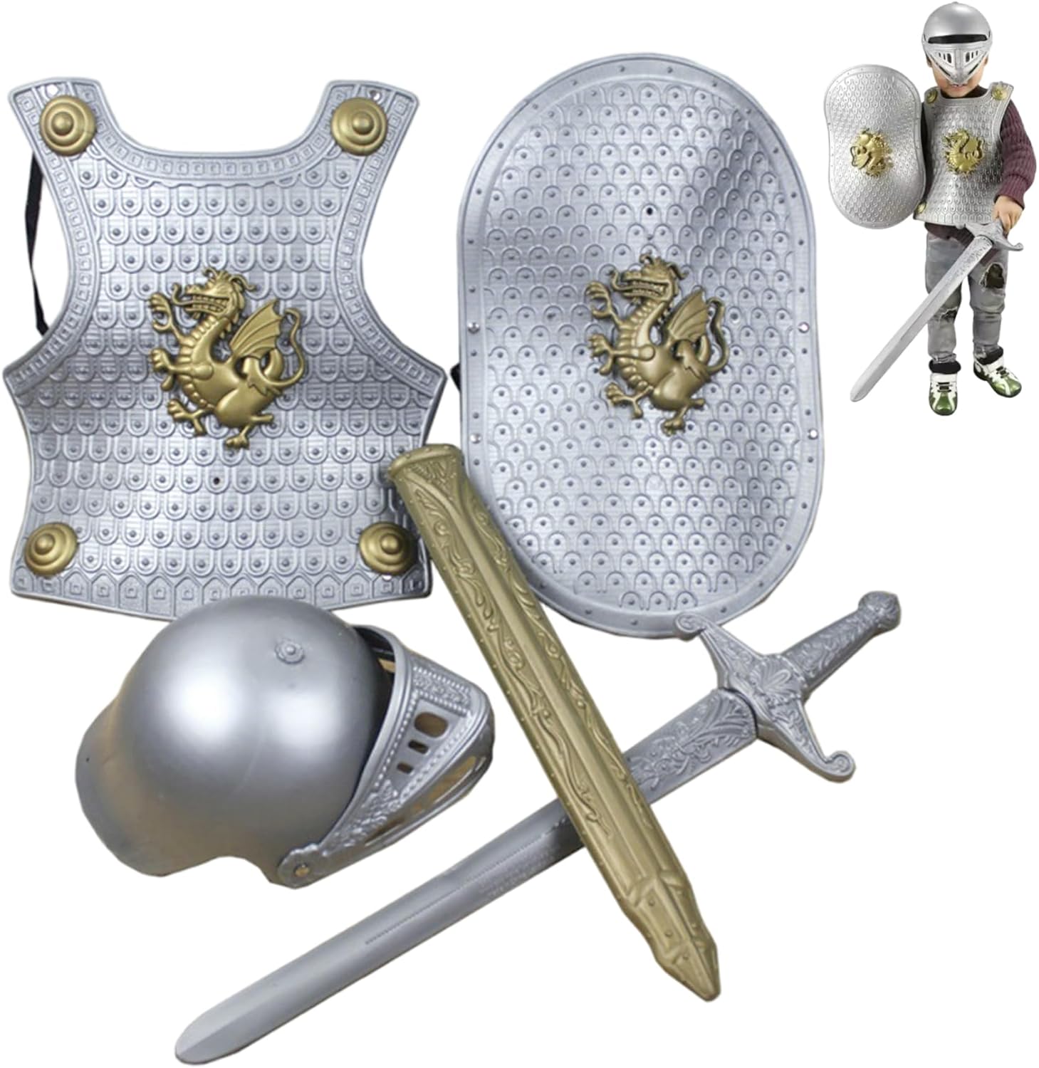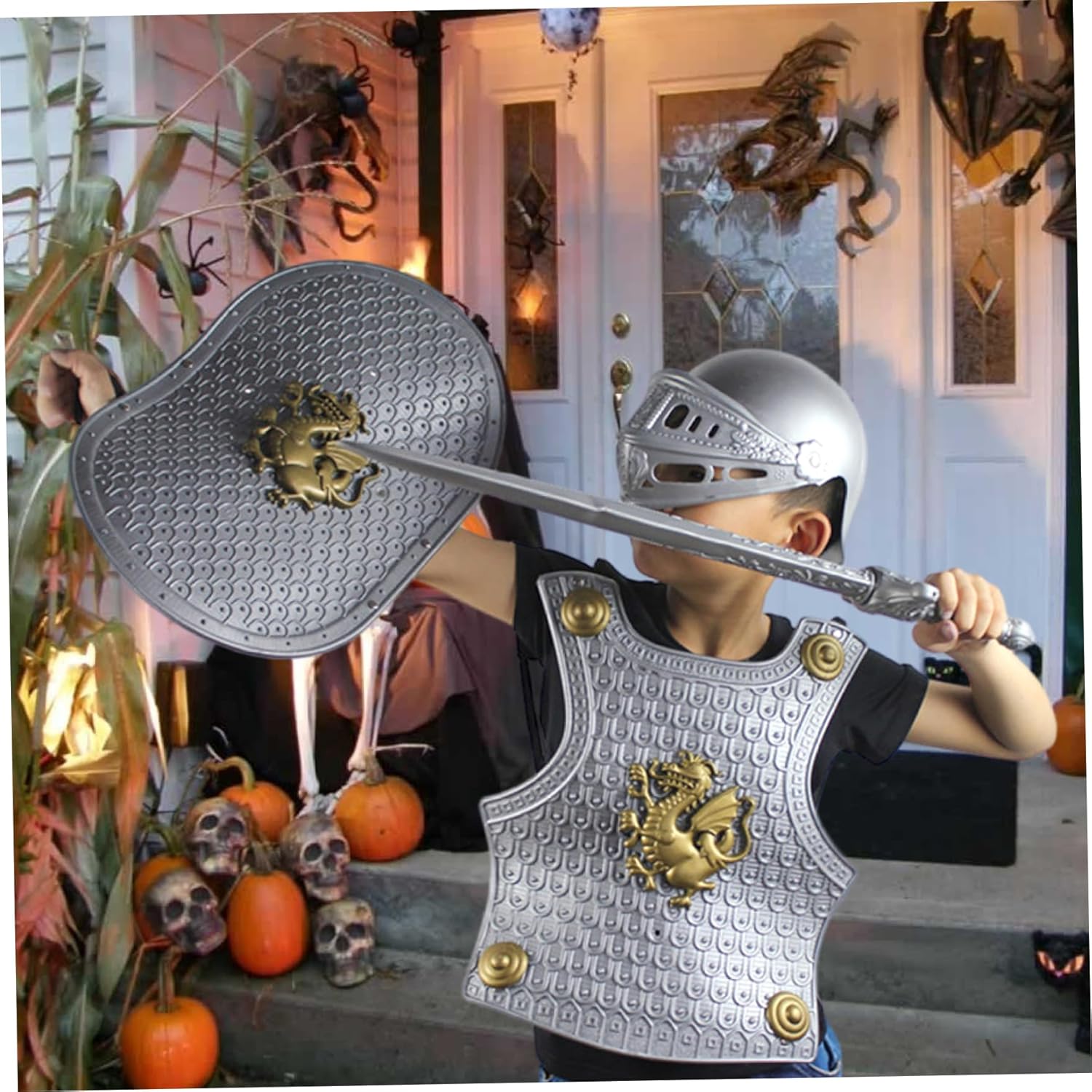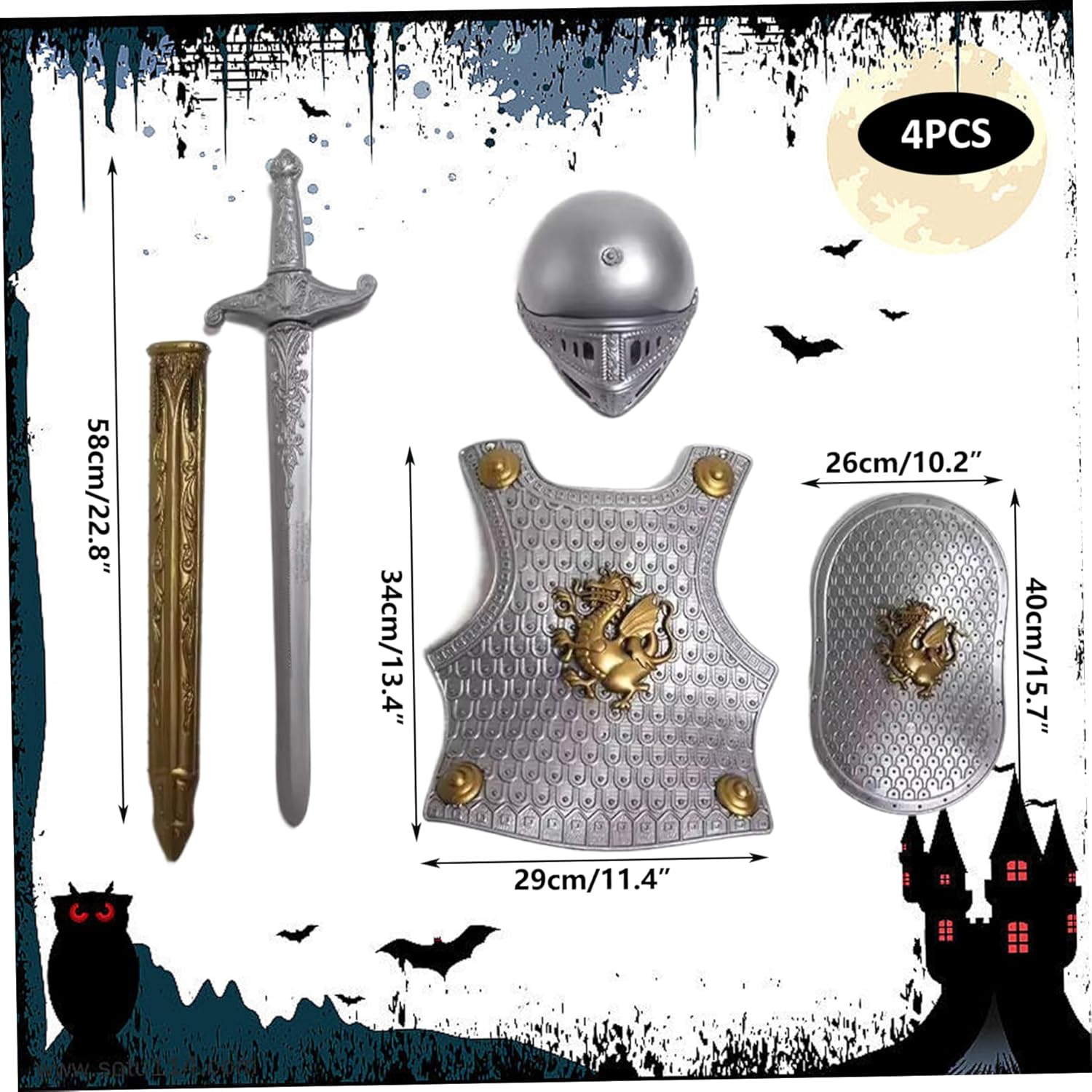 Ideale per eventi e regali: scelta perfetta per il costume per Halloween, feste in costume, eventi scolastici o convention cosplay-fa un regalo eccellente che stimola la gioia e l'eccitazione nei giovani avventurieri desiderosi di immergersi nei mondo fantasia. Set da 4 pezzi completi: include tutto ciò che il bambino ha bisogno per un elmet di trasformazione, scudo, spada e armatura a full cavaliere, che produce facile da vestirsi senza cercare accessori extra, perfetto per le feste di Halloween, Cosplay o a tema..Knight Armor Knight Costume Autentico design medievale: questo set di costumi da cavaliere presenta un'armatura dettagliata, un casco, scudo e spada dal design realistico che ispirano il gioco fantasioso e danno vita alle avventure medievali storiche per i bambini..I materiali garantiscono un uso di lunga durata attraverso molte sessioni di gioco di ruolo..Knight Costume Medieval Armatura Fit comodo e sicuro: progettato pensando al comfort dei bambini, l'armatura leggera e il casco regolabile si adattano comodamente senza limitare i movimenti, consentendo il gioco attivo mantenendo la sicurezza una priorità di travestimento e attività di gioco di ruolo..I bambini delle armature medievali vestono costumi Incoraggia la creatività e l'immaginazione: questo costume scatena narrazione immaginativa e divertimento interattivo, sostenendo lo sviluppo sociale e la creatività mentre i bambini recitano le proprie battaglie medievali, missioni eroiche o storie fantasy..I bambini vestino costumi di Halloween costumi