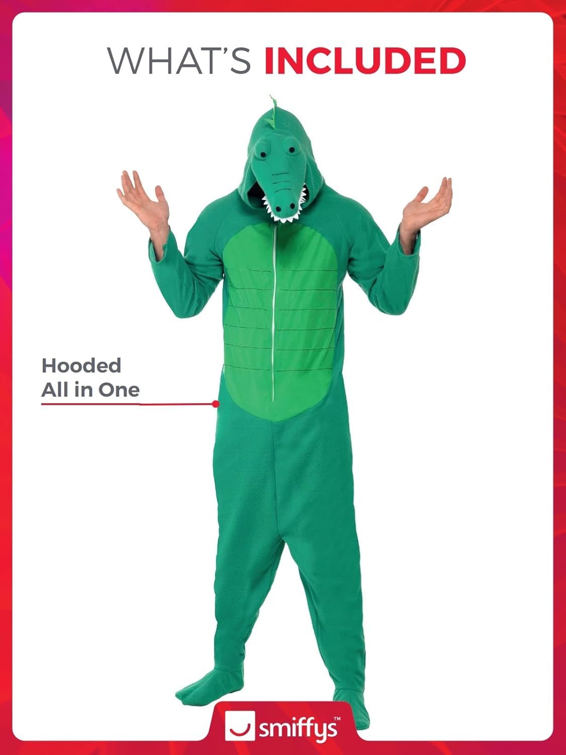 Descrizione del prodotto Smiffys Costume da uomo, Coccodrillo, con tuta con cappuccio Include: tuta con cappuccio Taglia M: Petto: 97-102 cm, Vita: 81-86 cm, Cucitura interna: 83 cm Perfetto per carnevale, Halloween e feste a tema Avviso di sicurezza non adatto a bambini di età inferiore a 1 anno Contenuto della confezione 1 tuta in coccodrillo taglia M Vedi altro