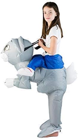 Loved this costume. A few changes that the seller might consider is creating a better strap for the head to stay up and the air pump could use a pocket. The outside of the air pump came apart the first time I open the package. I taped it in order to hold it in place. My daughter loved it and she can wear again next year.