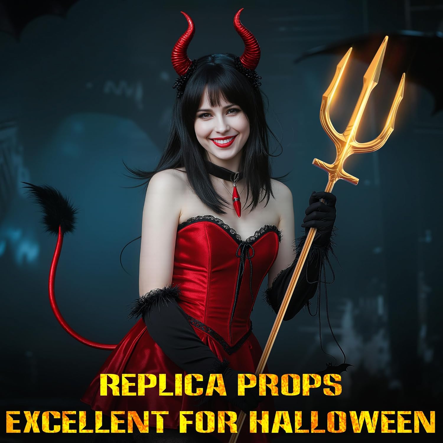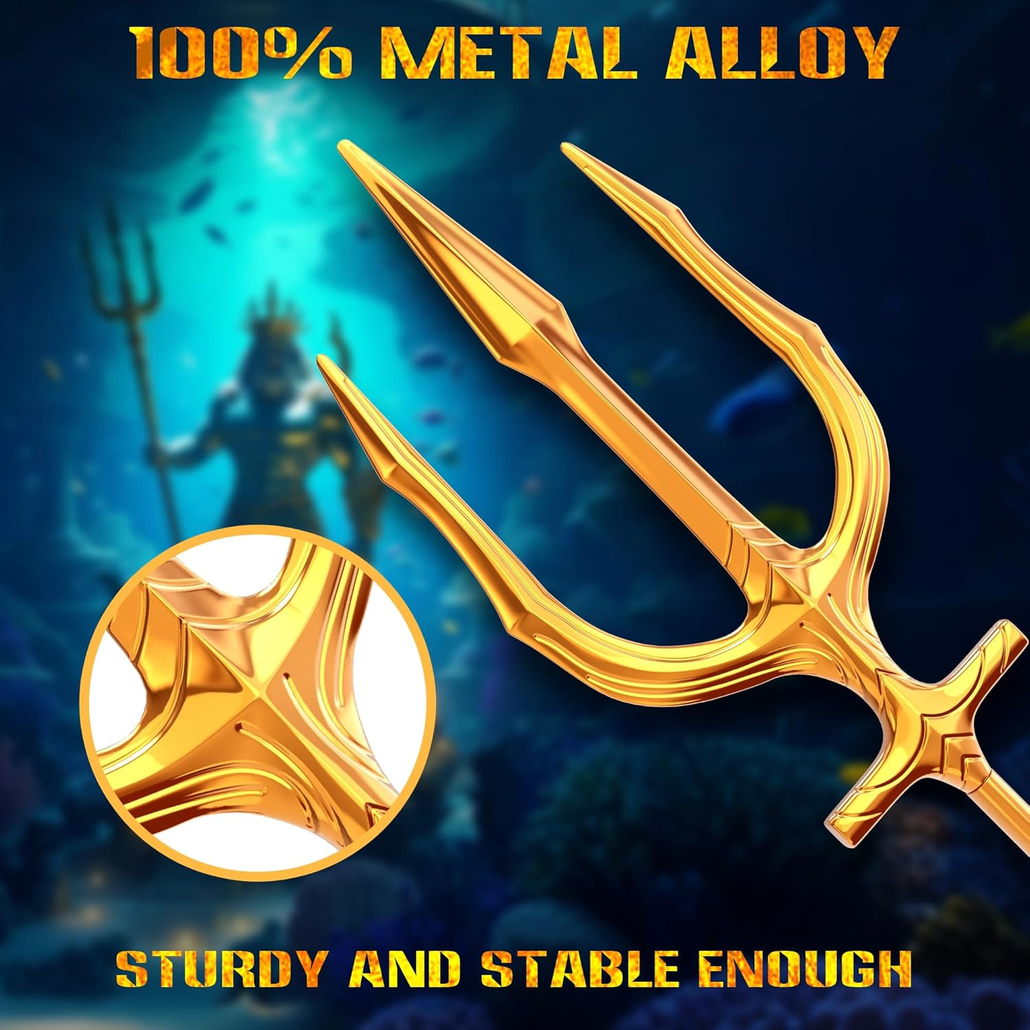 Design con Lancia a Tridente – Presenta un'audace punta di lancia a 3 punte ispirata alla mitologia antica e al folklore fantasy, perfetta per collezionisti, cosplay o decorazioni a tema. Struttura in Metallo Resistente – Realizzata in metallo di alta qualità per una resistenza duratura, sia per uso espositivo che per travestimenti. Pezzo da esposizione a figura intera – Misura circa 198 cm, il che lo rende un elemento centrale accattivante per supporti a parete, eventi o servizi fotografici. Ottimo per Cosplay, LARP o Decorazioni – Accessorio ideale per Poseidone, costumi da gladiatore o come arma decorativa spettacolare in casa o in studio. ATTENZIONE: Il tridente è in metallo e può essere molto pericoloso, consentito solo agli adulti.
