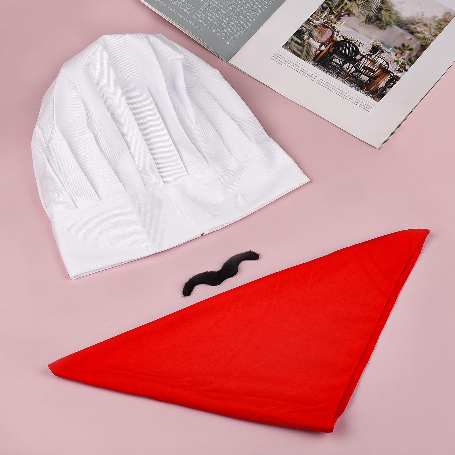 Costume da cuoco bianco con barba finta - Bandana rossa regolabile - Baffi neri - Bandana alla moda per adulti - Accessori per travestimenti per Halloween, Natale Caratteristiche: - Materiali di alta qualità per un uso più sicuro. - Abbinalo ai vestiti per creare un effetto più perfetto. Caratteristiche: Materiale: poliestere. Colore: bianco, nero, rosso. Taglia: taglia unica. Contenuto della confezione: 1 cappello da cuoco. 1 barba finta. 1 bandana rossa.