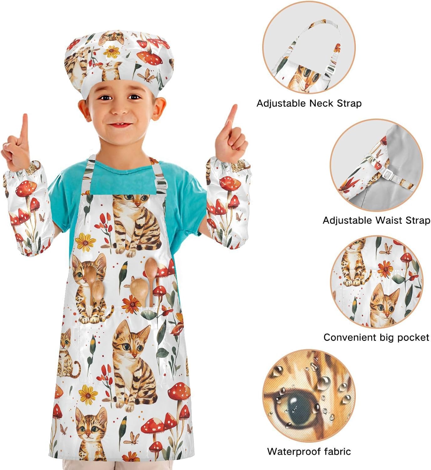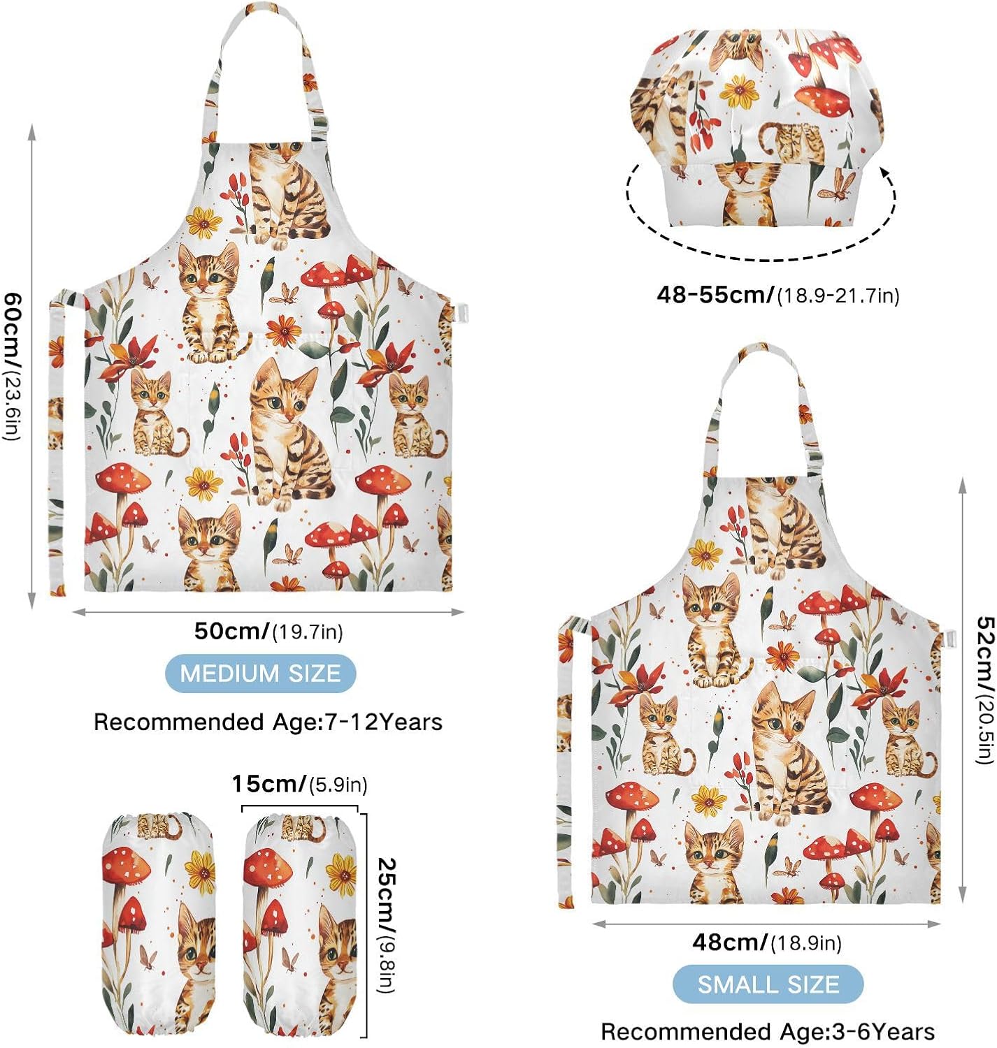 Taglia disponibile: S: 48 x 52 cm, per bambini dai 3 ai 6 anni. M: 50 x 59,7 cm, per bambini dai 7 ai 12 anni. Le taglie di cappelli e maniche condividono le stesse dimensioni. Cappello: 48-55 cm. Maniche: 15 x 24,9 cm. Materiale ecologico: il tessuto è impermeabile, leggero, accogliente, stampa adorabile alla moda, ecologico per la pelle dei bambini. Cinghia regolabile: il collo lungo e le cinghie in vita sono regolabili. È possibile regolare la cinghia in base alla lunghezza che i bambini si sentono a proprio agio per attività o vestirsi Inoltre, la cinghia regolabile può fornire abbastanza spazio per i bambini da indossare o togliere. Scenario applicabile: ideale per asilo, asilo, cucina, sala pittura, giardino, Halloween, Natale, abbigliamento del Ringraziamento, artigianato e attività di pittura artistica, festa di compleanno per incoraggiare i bambini a sviluppare la loro cucina, pittura, cottura, giardinaggio o altre abilità. L'articolo include: il costume da chef per bambini include 1 grembiule leggero, 1 cappello da chef e 2 maniche. Il set da cucina per bambini da 3 pezzi può dare ai bambini una buona esperienza di utilizzo per cucinare o dipingere come fornelli o pittori professionisti.