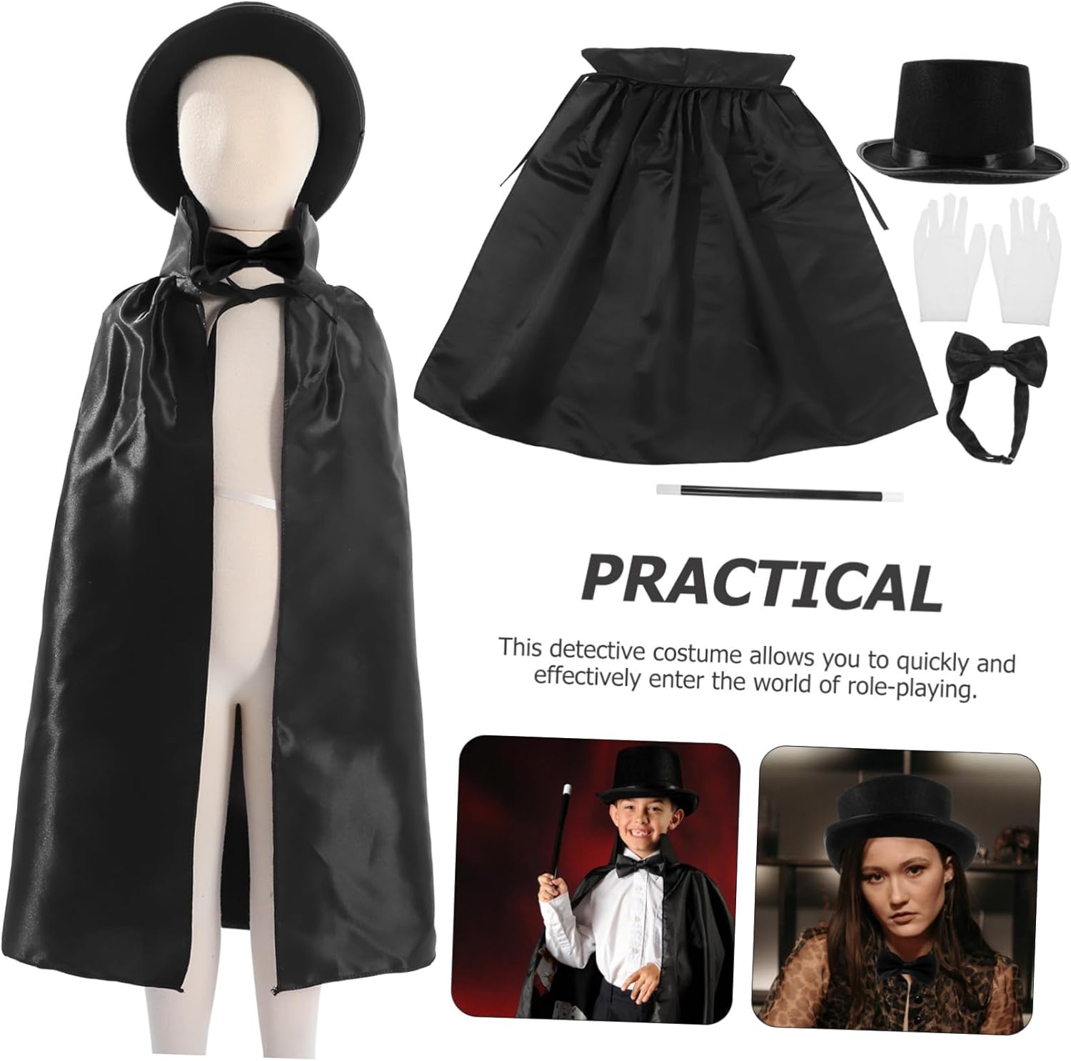 Cappello da mago - leggero e comodo da indossare, facile da indossare e da togliere, ideale per rapidi cambi di costume, accessori per costume da detective Abito da palcoscenico da mago - questo costume da detective ti consente un ingresso rapido ed efficace nel mondo dei giochi di ruolo, kit da detective cosplay Accessori per costume da detective - promuove le capacità di osservazione e analisi e aiuta con il pensiero critico. Costume da detective per accessori cosplay - realizzato in tessuto, plastica, leggero, di buona fattura, oggetti di scena da detective Oggetti di scena cosplay da detective - leggeri e ben fatti, comodi e alla moda da indossare senza preoccuparsi di scivolare o fallire, costume cosplay da detective