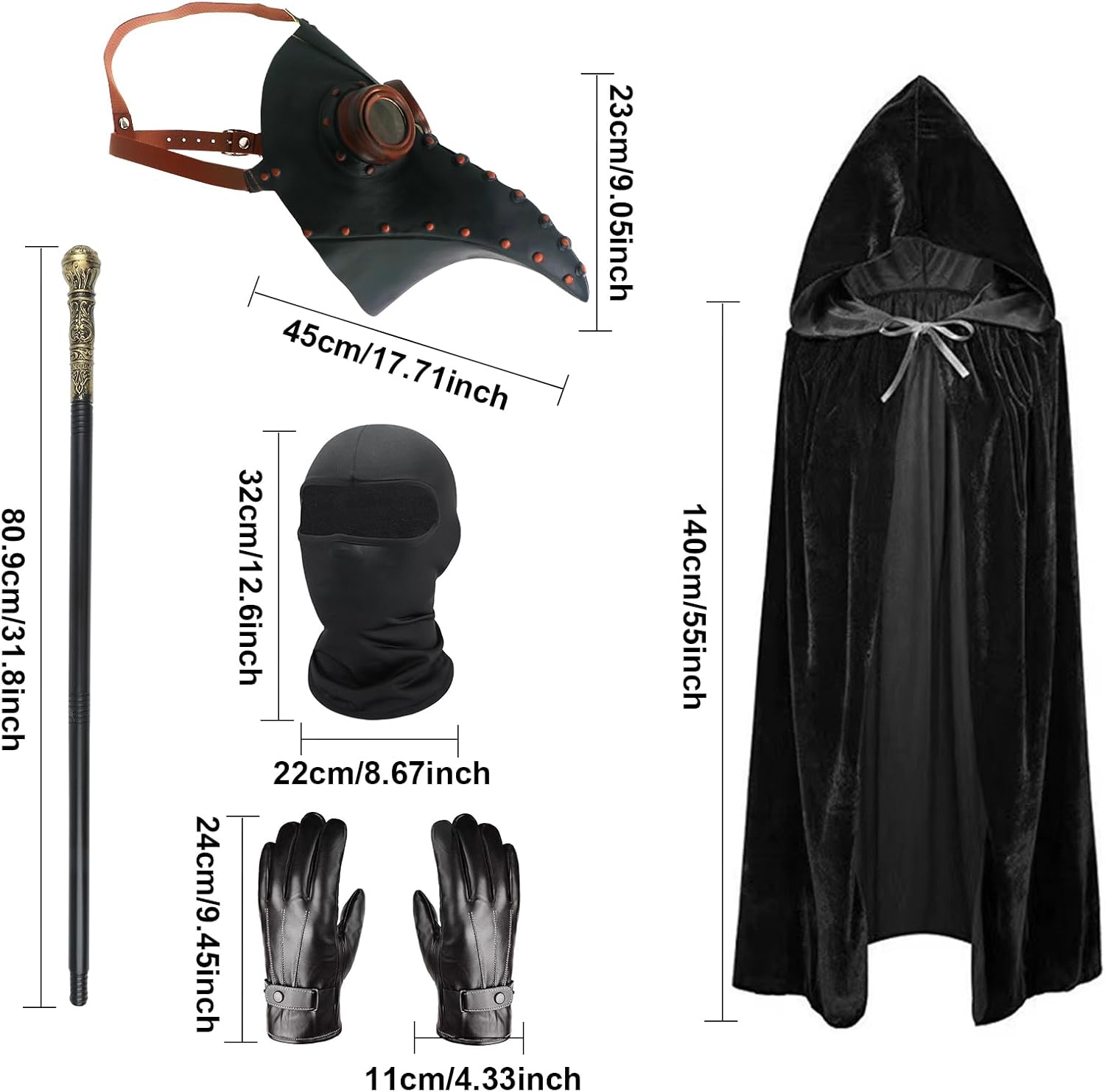 Descrizione prodotto Caratteristiche: 1. Realizzata con materiali di alta qualità, la maschera del medico della peste è realizzata in resistente pelle sintetica, garantendo che sia comoda da indossare e durerà per molte feste di Halloween a venire. 2. Con 12 fori traspiranti sulla maschera per uccelli, questa maschera offre un'eccellente ventilazione in modo da poter festeggiare tutta la notte con facilità. 3. Il mantello nero con cappuccio è realizzato in velluto morbido ed elastico, comodo e resistente. Copre perfettamente il tuo corpo, rendendolo il costume perfetto per feste di Halloween, eventi cosplay o altre feste in maschera. Adatto a tutti i tipi di eventi, inclusi Mardi Gras, balli in maschera, feste di Halloween e feste in maschera, il costume del Dottore della Peste è un must per ogni amante dei costumi. Avviso di sicurezza Per evitare qualsiasi rischio di danni, tenere questo sacchetto di plastica lontano dalla portata di bambini e ragazzi. Non utilizzare questa borsa in culle, letti, trasportini o recinti da gioco. Questa borsa non è un giocattolo.
