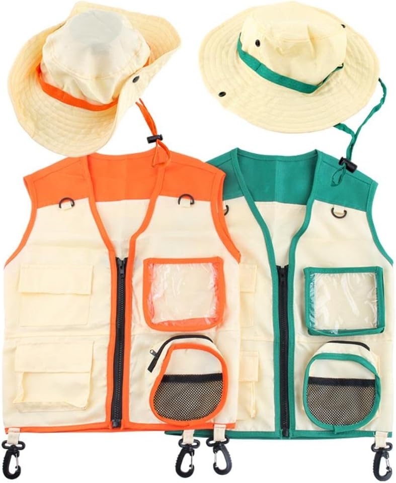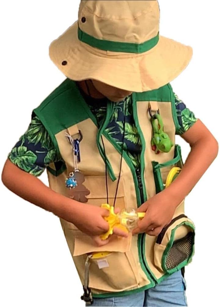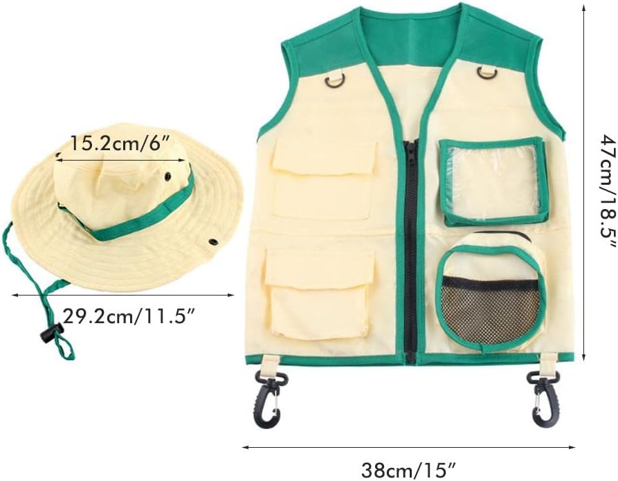 1. Design del gilet: realizzato in tessuto lavabile durevole. Divertente tasche vibranti e anelli D per conservare e trasportare tutti i tuoi elementi essenziali. Ottimo per birdwatching, pesca, safari, escursioni, campeggio. 2. Design del cappello: il cappello a tesa larga fornisce protezione dai raggi dannosi naturali. Questo cappello luminoso e carino può essere indossato in 3 modi diversi. I covoni regolabili lo mantengono sicuro, mentre i bastoncini adesivi a rilascio rapido lo mantengono sicuro. 3. Avventura all'aperto: questo kit carino e divertente ispirerà il piccolo esploratore di ogni bambino. Lascia che l'immaginazione di tuo figlio si scateni con questo ranger del parco, archeologo, avventuriero, costume e outfit. È incoraggiato un amore per la natura e la fauna selvatica. 4. Educational Gear: i tuoi bambini adoreranno indossare questo cappello e gilet sul grande all'aperto. Gioca, esplora e interagire con la natura come parte dell'educazione di tuo figlio. Il per qualsiasi 3, 4, 5, 6, 7, 8 anni per promuovere il rimanere attivo e coinvolgere con l'ambiente naturale. 5. di imballaggio: otterrai 1 gilet e 1 cappello. La lunghezza del giubbotto è di 18,5 pollici, la larghezza delle spalle è di 15 pollici; Il diametro totale del cappello è di 11,5 pollici.