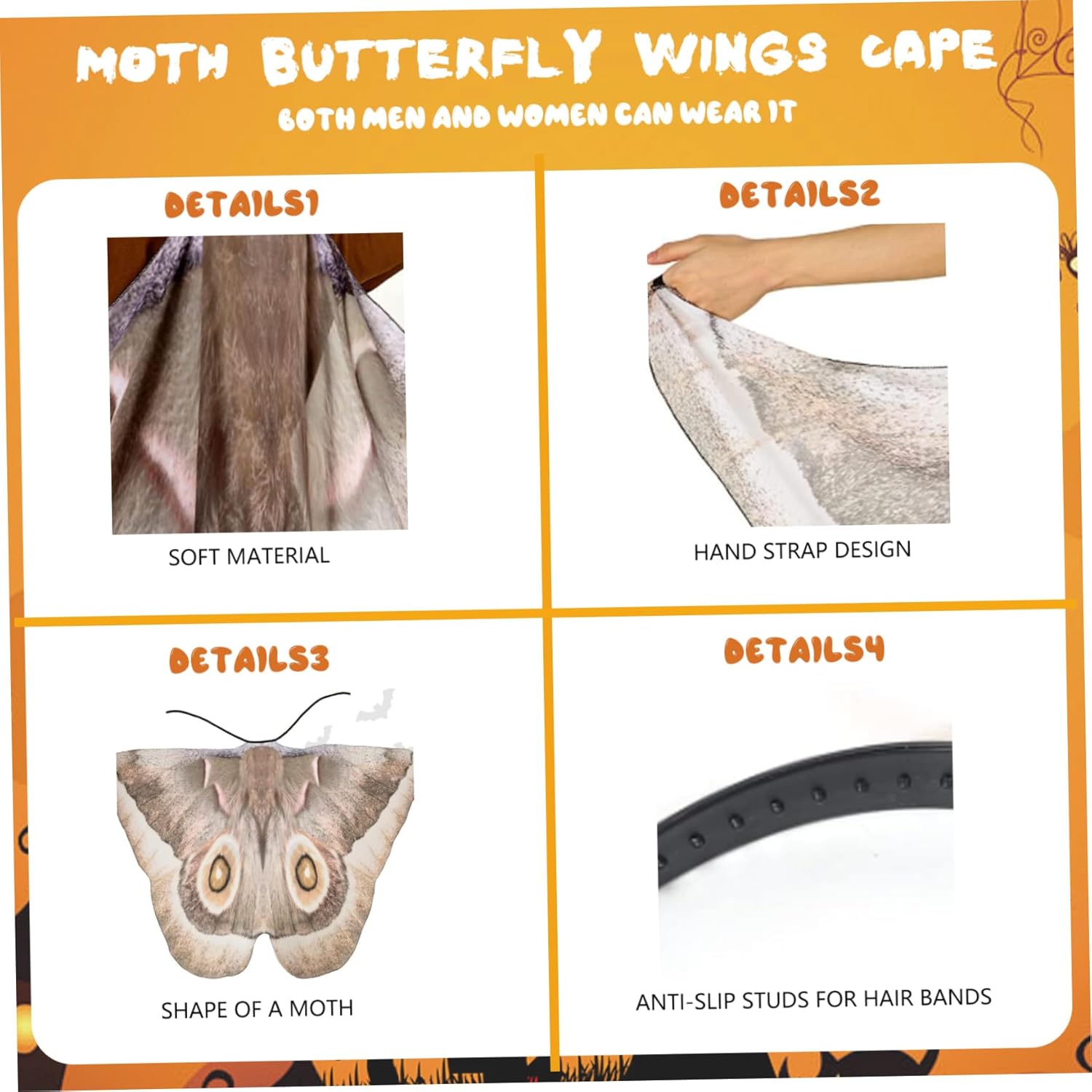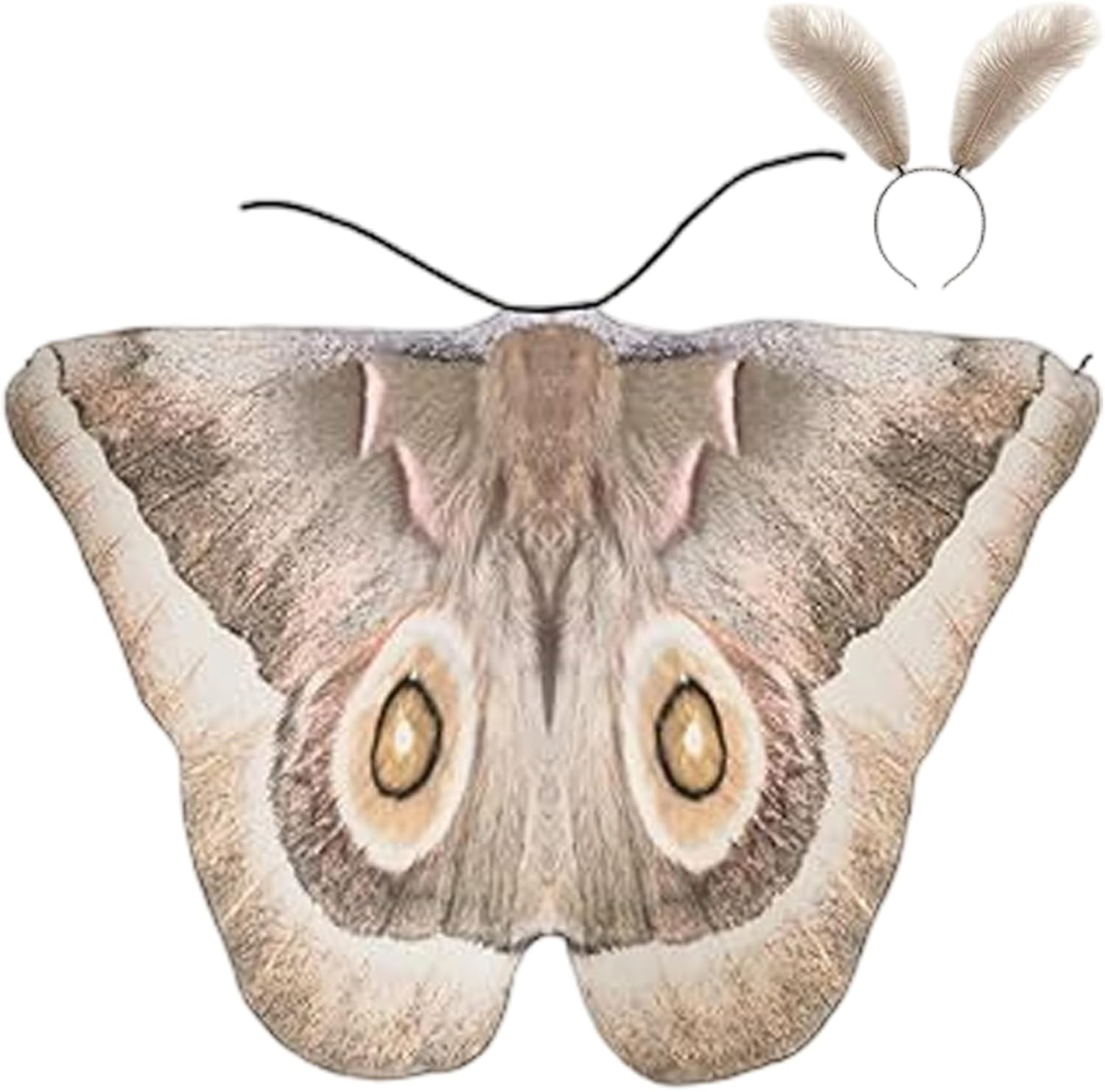 Costume da falena, Ala di Farfalla di Halloween con Fascia per la Fascia di Piume Stampa su Entrambi i Lati Wing Cape per Halloween o Costume Butterfly Cape