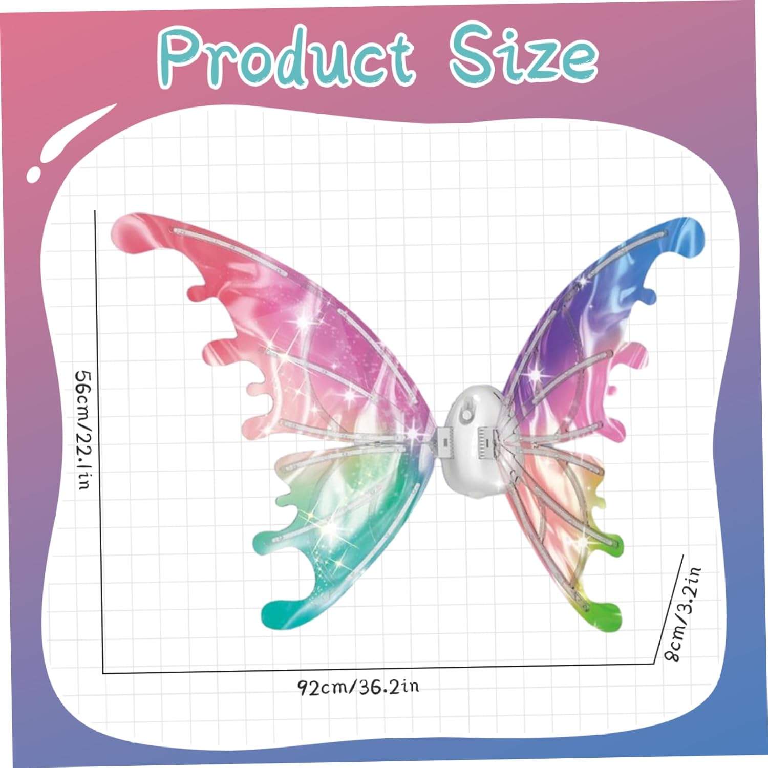 Funzione musicale incorporata: progettato con musica deliziosa, il costume aggiunge un'esperienza interattiva per i bambini..La combinazione di luci e suoni migliora il divertimento durante il gioco, perfetto per compleanni, Natale e spettacoli teatrali. Costumi da travestimento per bambini Costume da fata per ragazze Costume da fata Perfetto per feste e cosplay: ideale per compleanni, feste di Natale, Halloween ed eventi cosplay, questo costume da fata ispira creatività e giochi di ruolo, permettendo ai bambini di immergersi nella loro principessa o nel personaggio magico della fata..Costume da fata per bambina Costume da fata Costume illuminato Ottima scelta di regali: con luci incantevoli, musica e un bellissimo design, questo costume è un regalo meraviglioso per le bambine che amano le fiabe, incoraggiando l'immaginazione e momenti di gioco gioiosi..Costume da fata Costume illuminato di farfalla LED Comodo e sicuro da indossare: realizzato con tessuto morbido e leggero e bordi lisci, il costume garantisce comfort e sicurezza per i bambini..Le cinghie regolabili facilitano la vestibilità sicura senza limitare i movimenti..Illumina l'ala della farfalla del costume LED Illumina l'ala Magica ala di farfalla a LED: dotata di scintillanti luci a LED, queste di farfalla illuminano magnificamente al buio, creando un'atmosfera magica e fiabesca che fa brillare la tua piccola principessa alle feste o alle celebrazioni festive..Ala di farfalla a LED Ala illuminata Illumina l'ala di farfalla