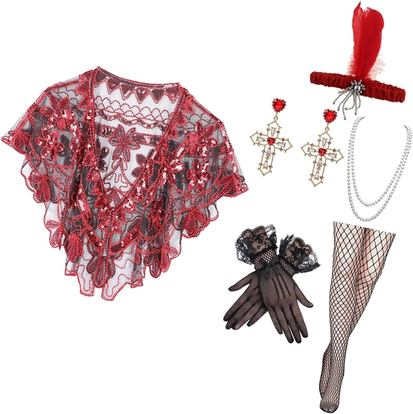 Costume da flapper anni '20 per le donne con scialle con paillettes e collana di perle accessori per feste a tema Caratteristiche: Il set di accessori Flapper anni '20 è una collezione completa, con scialle con paillettes e accessori di ispirazione vintage. Questo set include un copricapo flapper, collana di perle artificiali e guanti, orecchini anni '20, collant e scialle, tutto artigianale per un look autentico. Progettato per le donne che apprezzano la moda vintage, per coloro che cercano di fare una dichiarazione con eleganza e fascino in occasione di eventi a tema. Ideale per cocktail party anni '20, riunioni a tema, eventi cosplay e matrimoni, assicurandoti di distinguerti in qualsiasi folla. Con il suo tessuto in poliestere e l'attenzione ai dettagli, questo costume Flapper Set offrono comfort e raffinatezza, rendendolo un must per ogni appassionato di moda. Specifiche tecniche: Tessuto: fibra di poliestere. Colore: rosso, blu, oro nero, argento nero (opzionale) Lunghezza scialle: circa 45 cm. La confezione include: 1 scialle. 1 copricapo. 1 paio di orecchini. 1 paio di guanti. 1 collana di perline. 1 paio di collant. Nota: Considerare un margine di errore di 1-2 cm dovuto alla misurazione manuale. Si prega di consentire lievi differenze di colore dovute alla diversa risoluzione dello schermo.