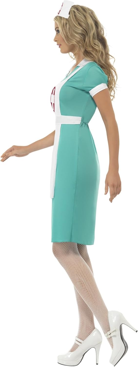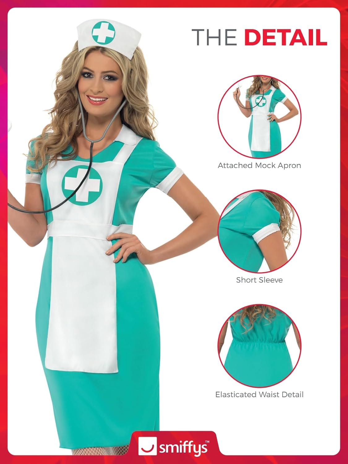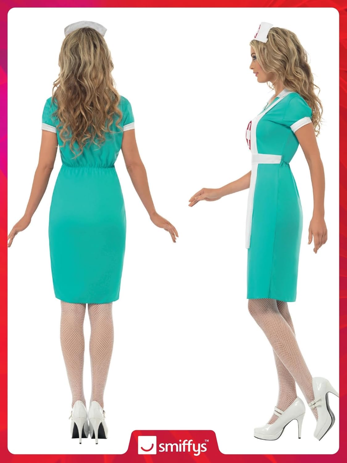 Costume da infermiera di sala operatoria per donna, Include: vestito, grembiule finto e copricapo, Ideale per eventi indoor e outdoor, Perfetto per carnevale e feste a tema - Taglia 40-42: Petto: 94-98 cm, Vita: 75-77 cm, Fianchi: 100-104 cm, Tessuto leggero per non surriscaldarsi - Facile da indossare e togliere grazie alla fascia elastica dietro - Aiuta gli altri a sentirsi meglio! Solo lavaggio a secco, 100% poliestere – Contenuto: 1 costume da donna Smiffys, infermiera di sala operatoria, con vestito, grembiule finto e copricapo, non include: stetoscopio, taglia 40-42, colore: verde, 25870