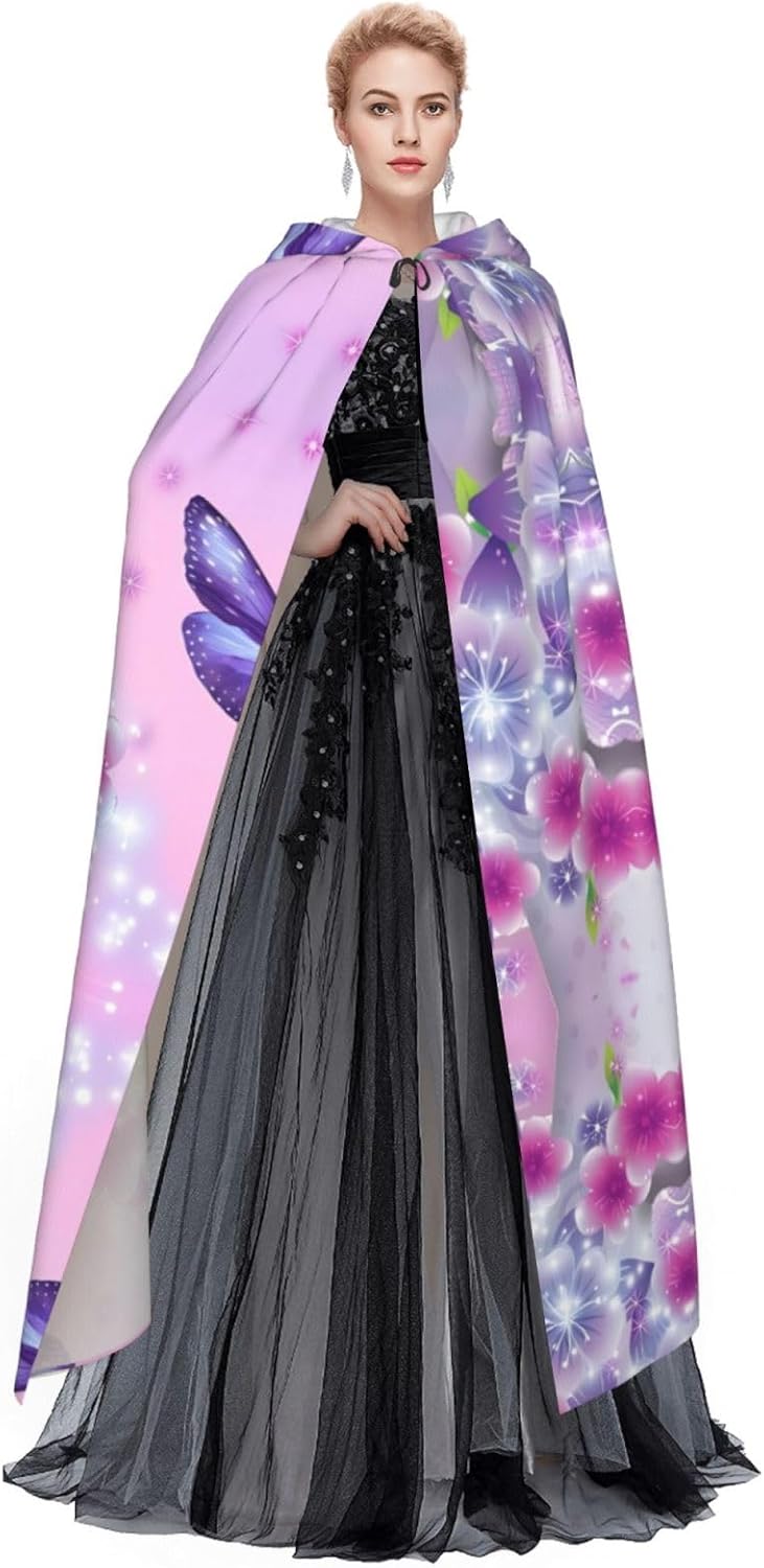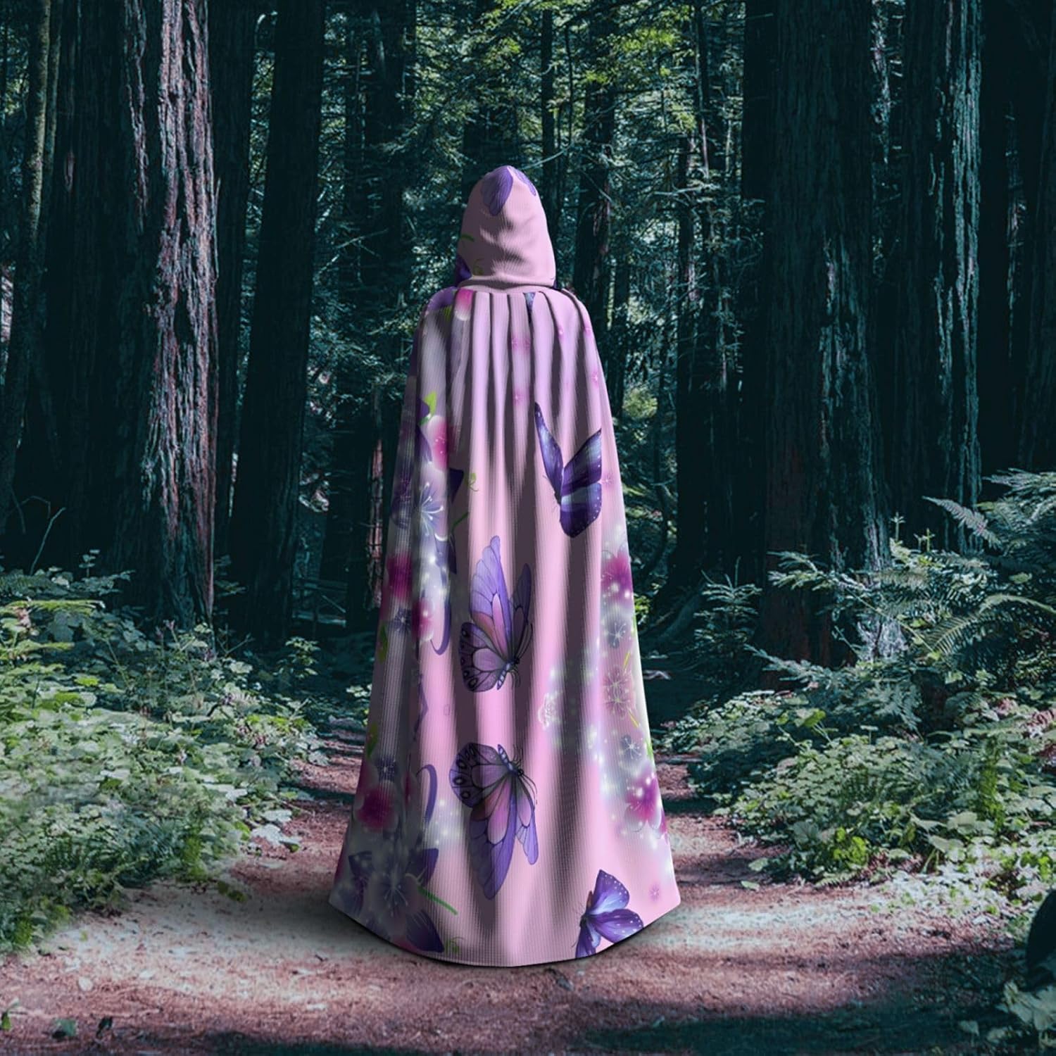 Costume da mantello con stampa HD con farfalla rosa, per Halloween, cosplay e altri costumi unici con cappuccio. Costume versatile