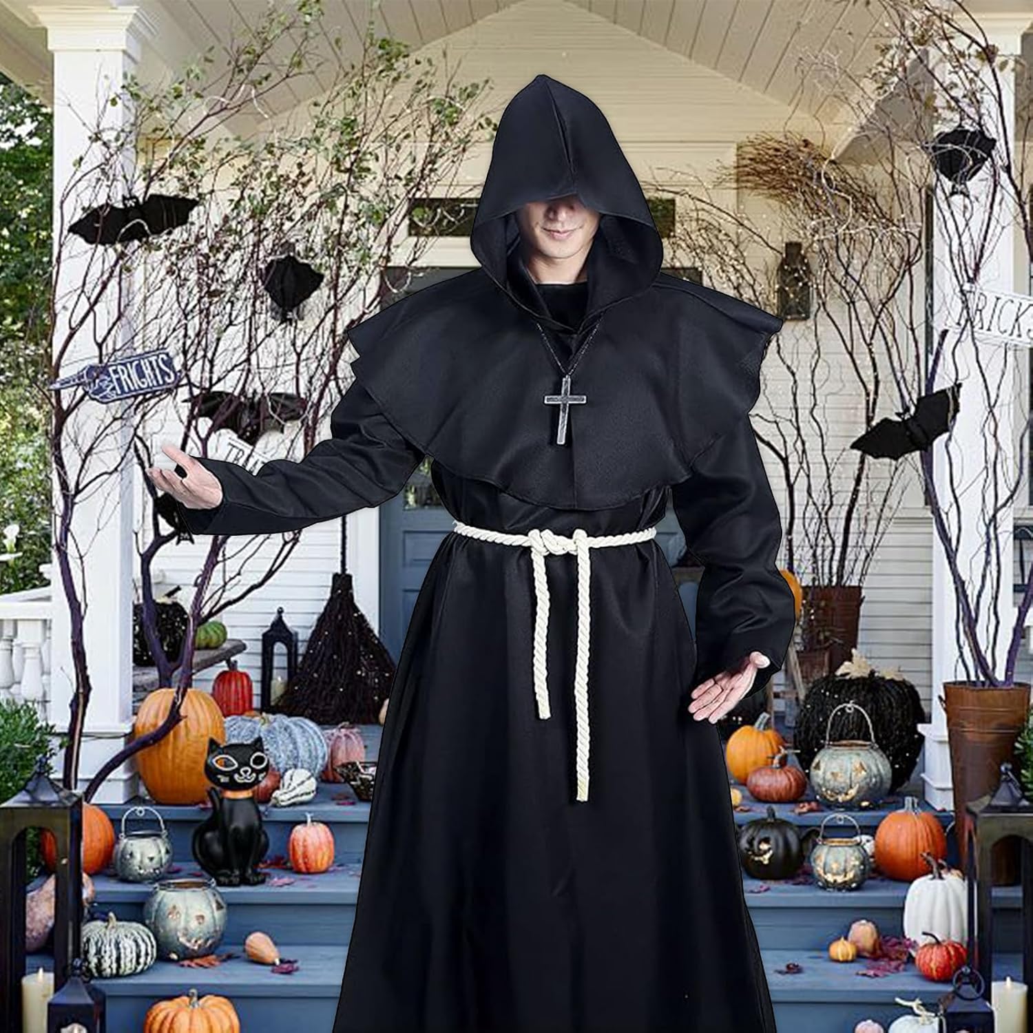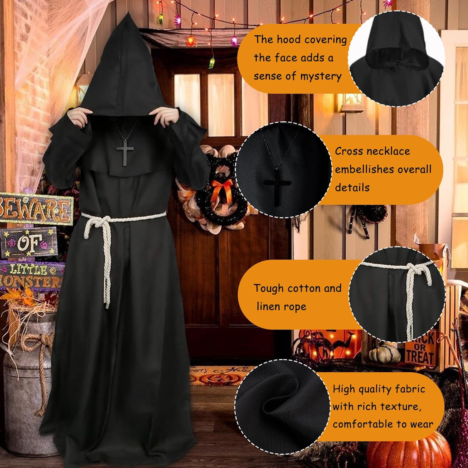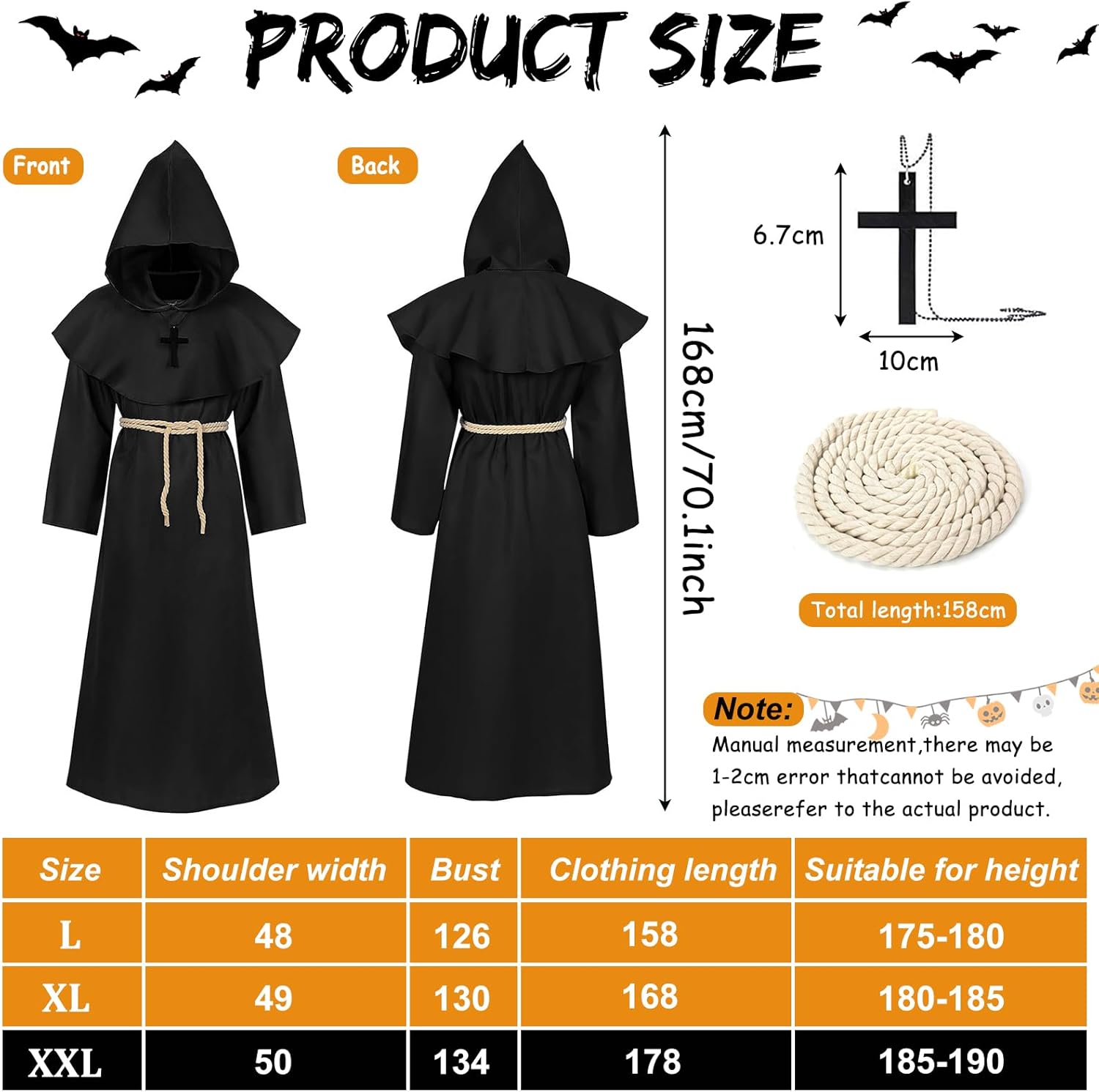 Descrizione prodotto Costume da Monaco,Costume monaco,Abito da monaco,Costume da Prete,Sacerdote Accappatoio Frate,Frate Medievale Abito con Cappuccio,per feste Cosplay, Halloween,Carnevale. Caratteristica: -Pacchetto costume da monaco che include costume da sacerdote, cintura di corda e collana con croce. -Il nostro Costume da Monaco è realizzato in tessuto di poliestere resistente e di alta qualità. -Il mantello del costume da monaco è di grandi dimensioni, può nascondere il tuo viso e sembra più misterioso! -Il cordoncino in vita lo rende facile da indossare e da togliere, La cintura inclusa indosserà il costume da monaco per adattarlo a molte taglie. -Questo costume da monaco è adatto per costumi cosplay di Halloween, costumi da mago, costumi da monaco medievale. Specifiche: Materiale:Poliestere Colore:Come Mostrato Dimensioni:Come Mostrato Contenuto della Confezione: 1 x Costume da Monaco Promemoria Caloroso: 1.Si prega di consentire lievi differenze di dimensione dovute alle diverse misurazioni manuali. 2.A causa delle differenze nelle impostazioni della luce e dello schermo, il colore dell'articolo potrebbe essere leggermente diverso dall'immagine. Avviso di sicurezza no