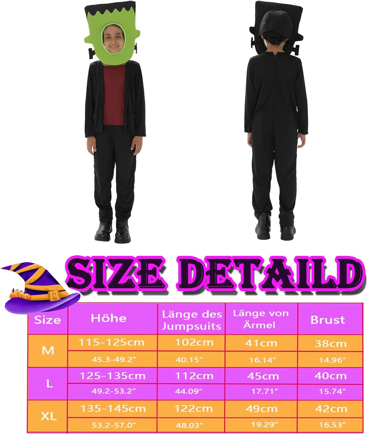 Descrizione prodotto Rendi il tuo bambino un fantastico spettro per Halloween o carnevale. Questo spettrale costume da mostro per bambini si distingue per la sua combinazione unica di top con tuta e copricapo. Il design unico garantisce una vera attrazione ed entusiasma tutti alla festa. Il copricapo con "viti" dettagliate e il top in costume con tuta offrono una fantastica realistica e creano un accattivante outfit da mostro. Il costume è realizzato in materiale di alta qualità e garantisce una lunga durata e una sensazione confortevole. Con questo costume il vostro bambino diventerà la stella spaventosa della festa e metterà in ombra tutti gli altri costumi! Avviso di sicurezza Non applicabile