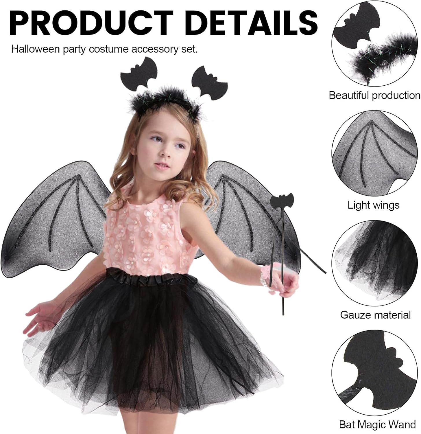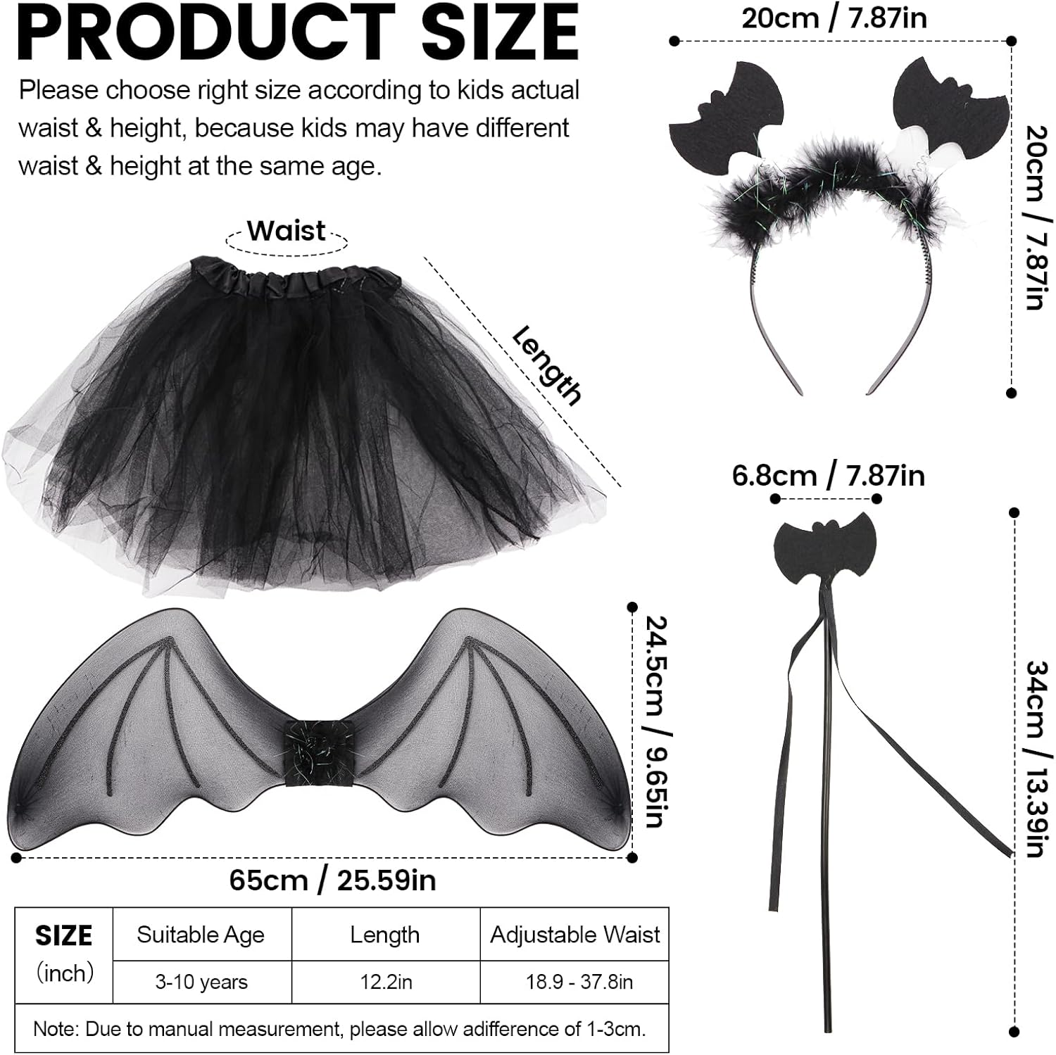 Descrizione prodotto Costume da pipistrello per bambini, set da 4 pezzi, costume da pipistrello, tutù da pipistrello, Halloween per bambini, per cosplay, feste, feste a tema, carnevale Avviso di sicurezza No