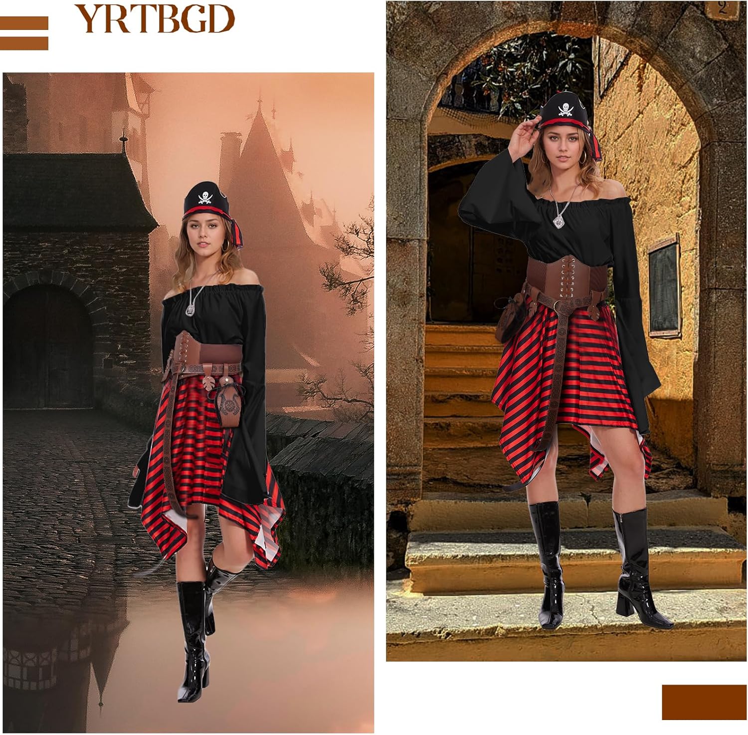 Descrizione prodotto YRTBGD Costume da pirata da donna, 5 pezzi, camicetta vichinga medievale rinascimentale, con corsetto, accessori per Halloween, carnevale Avviso di sicurezza Nessuna applicabile