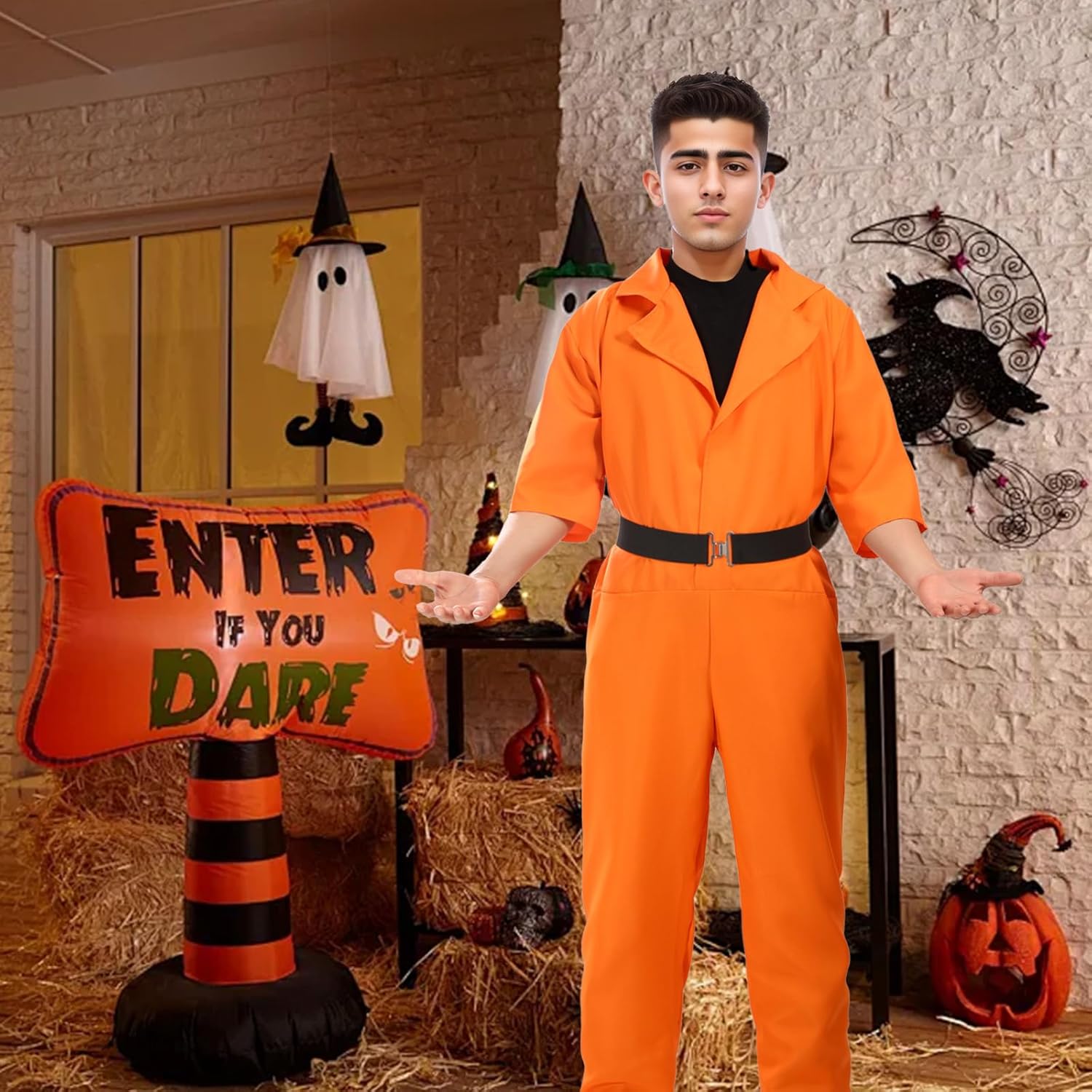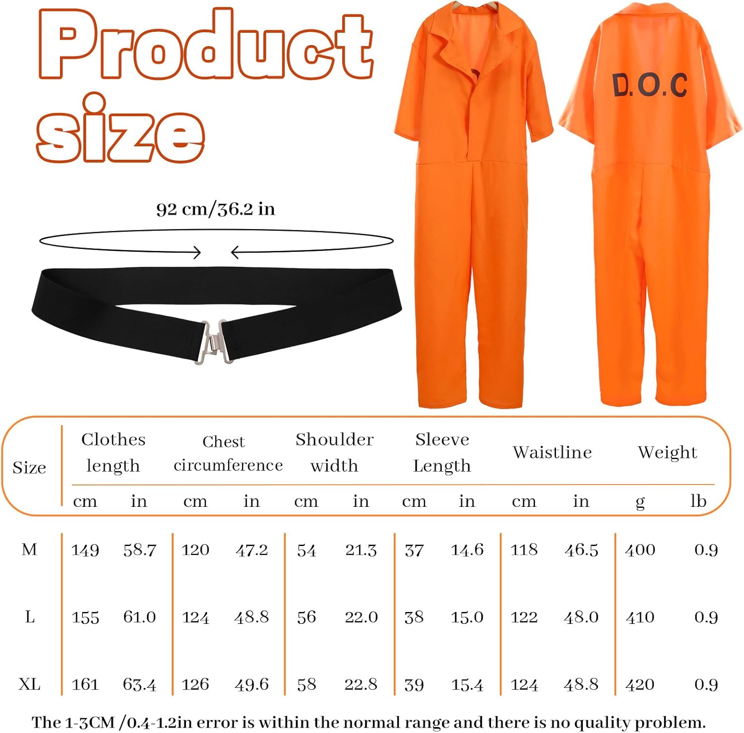 Descrizione prodotto Contenuto della confezione: Costume da prigioniero arancione per gli uomini 1 tuta arancione da prigioniero. 1 cintura nera (92 cm). Descrizione: Questo è un costume da prigione criminale che lascia una profonda impressione. Design unico: Design con chiusura in velcro. Cintura regolabile Testo personalizzato "DOC" stampato sul retro Questa tuta arancione da prigioniero per adulti ti consente di dare vita alla tua visione di un eroe. Materiale setoso: In poliestere di alta qualità. Incredibilmente morbido al tatto. Traspirante e non facile da deformare Occasioni adatte: Costume di Halloween Feste. Compleanni Feste a tema Drammi scolastici Performance Cosplay prigioniero Carcere cosplay Cosplay detenuto Cosplay criminale Cosplay rapinatore E molto altro! Taglie per adulti: Disponibile in tre misure. Adatto per adulti, uomini e donne Grande costume di Halloween per travestimento Nota: Si prega di fare riferimento alla tabella delle taglie nell'immagine per le dimensioni specifiche. Avviso di sicurezza No