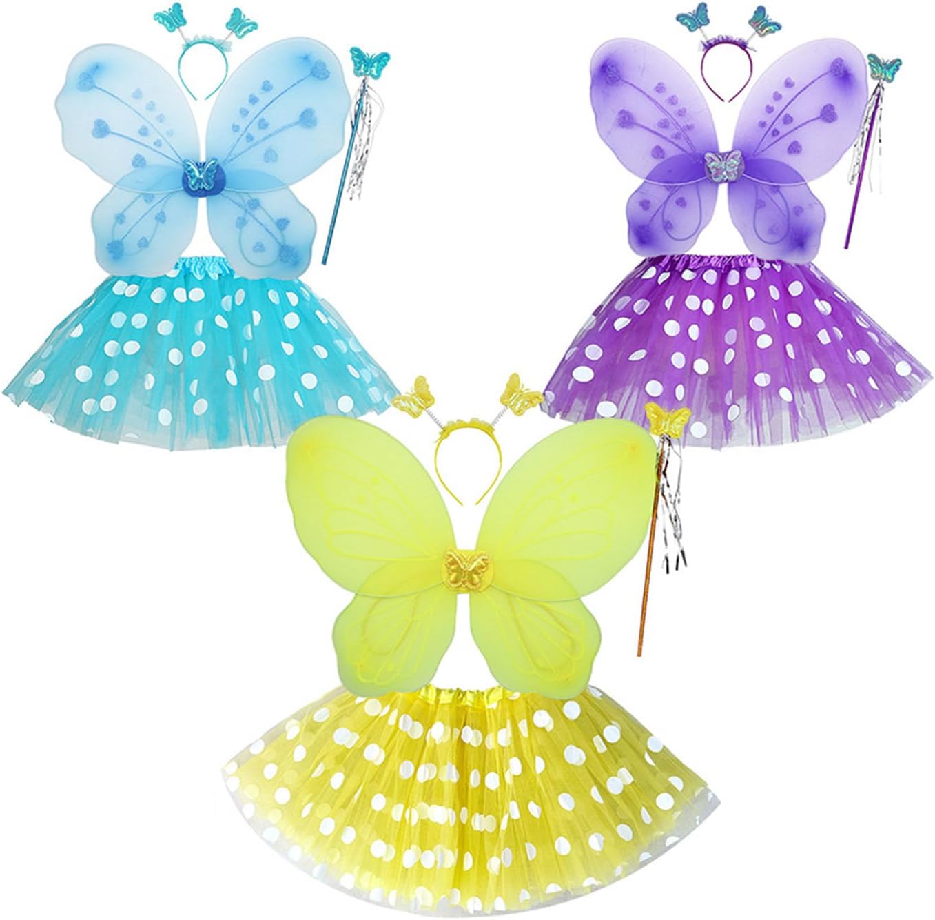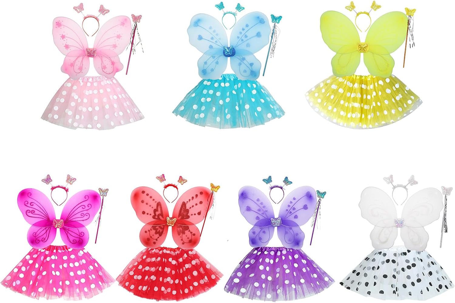 Costume da principessa delle fate per 4 ragazze con ali di farfalla, tutù, accessori per giochi di ruolo di Halloween Caratteristiche: costume da principessa con ali di farfalla, cinturino elastico, ala d'angelo, gonna tutù, bacchetta magica, fascia elastica per creare un completo migliore per bambini e ragazze Materiali in poliestere, comodi, delicati sulla pelle, morbidi, leggeri da indossare, facili da spostare, giocare e ballare, comodi da indossare. Contenuto della confezione: gonna tutù con ali di fata, fascia per capelli. Ampi usi per festival all'aperto, feste a tema fatato, costumi di Halloween, oggetti fotografici, regali di compleanno per ragazze, spettacoli di danza, giochi di ruolo di principesse delle fate, abbigliamento quotidiano, spettacoli scolastici. Regalo meraviglioso, ideale per sorprendere i bambini nel giorno del compleanno, Halloween o altre feste speciali, principessa da sogno. Caratteristiche: Colore tessuto: rosso, blu, viola, giallo, bianco, rosa. Contenuto della confezione: 1 pezzo. 1 ala di fata farfalla. 1 fascia. 1 gonna tutù Nota: si prega di consentire un errore di 1-2 cm dovuto alla misurazione manuale. Il colore dell'articolo può variare dalla foto a seconda delle impostazioni di visualizzazione e luminosità del computer.