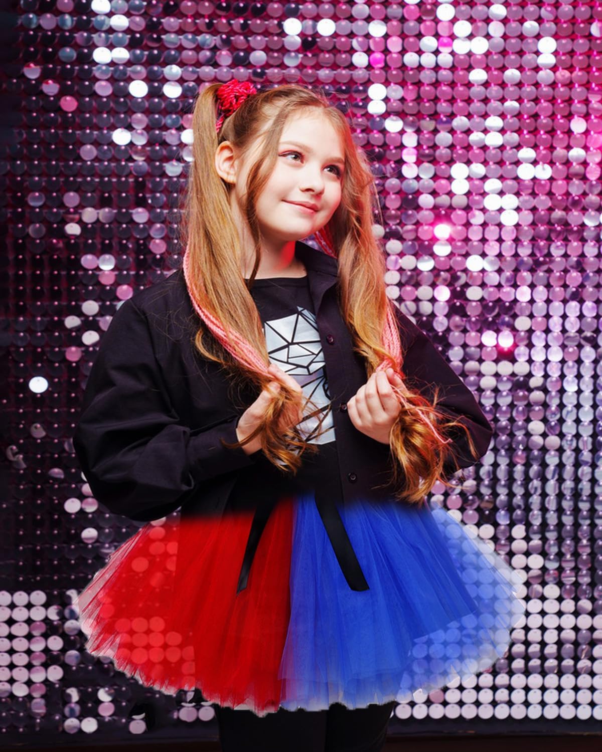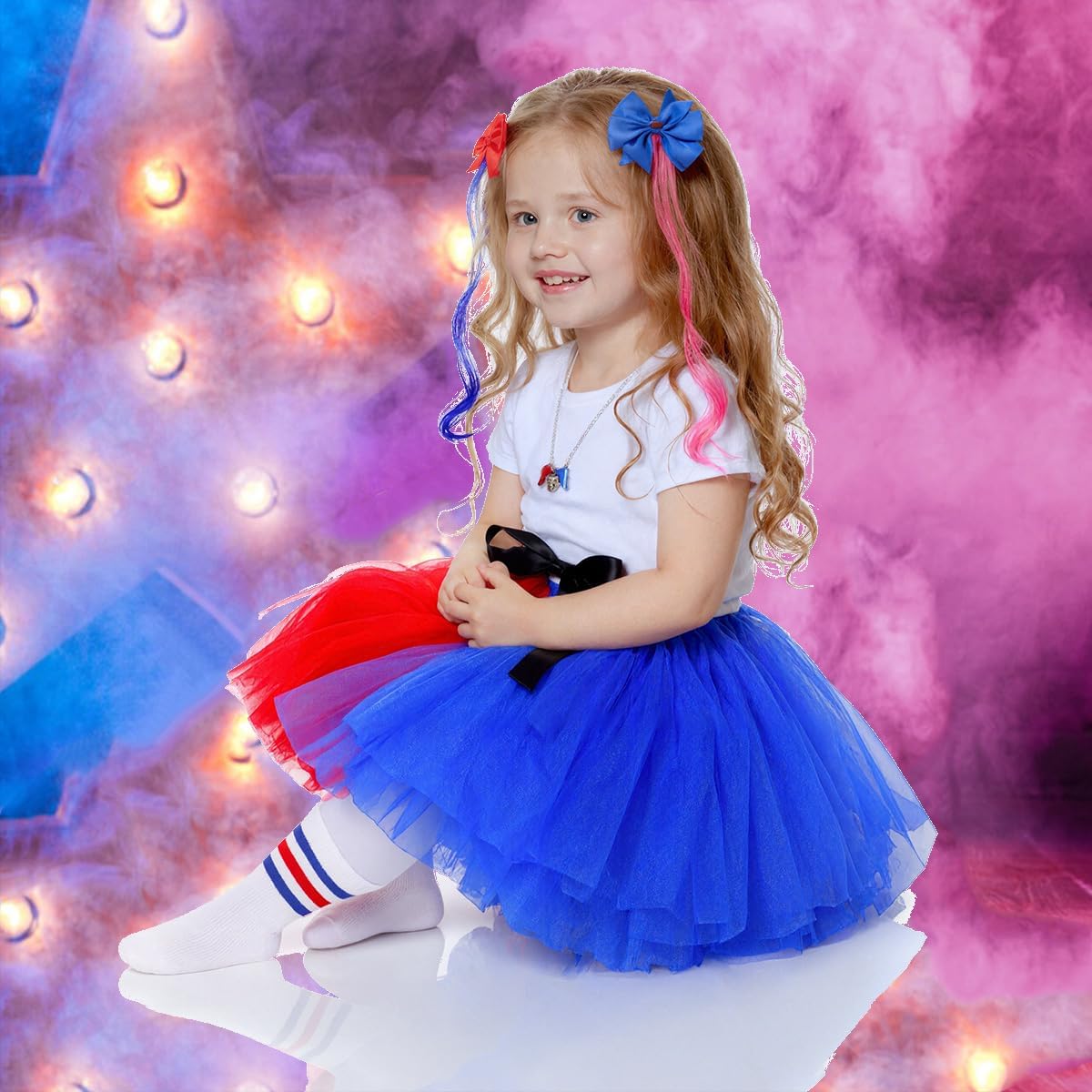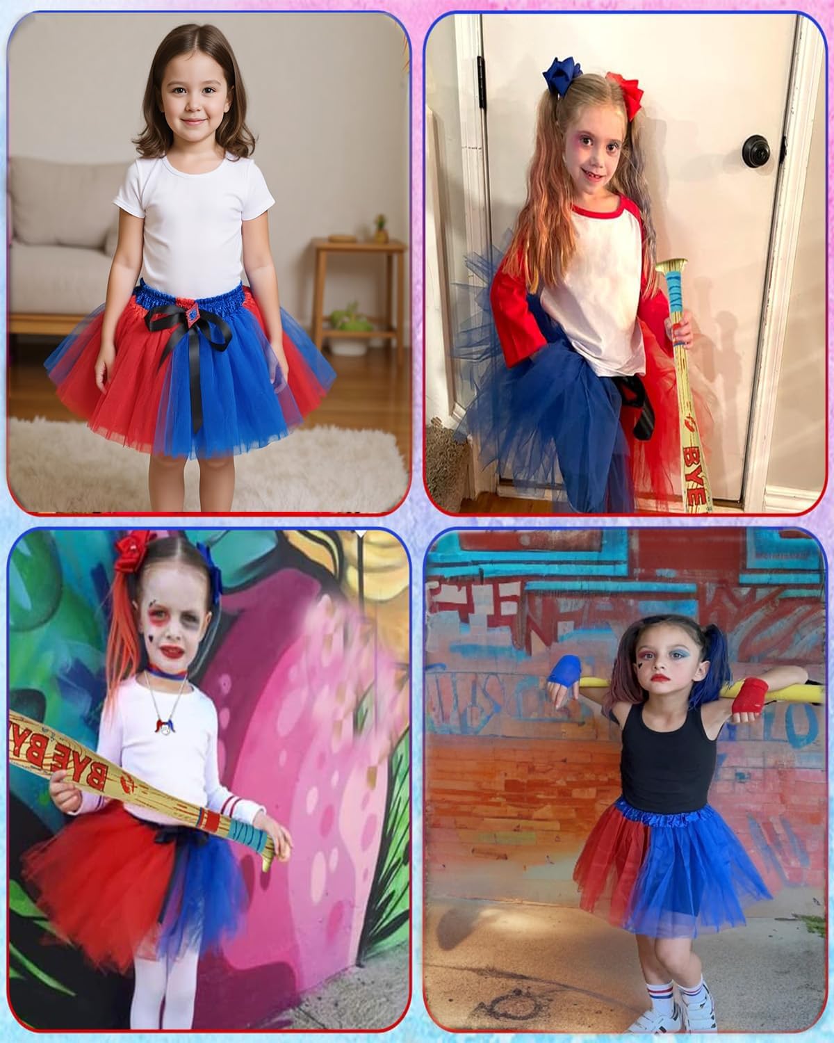 Descrizione prodotto Costume da per bambini, tuffati nel mondo stravagante di nostro set completo di gonna tutù, progettato per trasformare il tuo piccolo nel suo personaggio preferito. Questo set include una gonna tutù dai colori vivaci (con top non incluso), un paio di fiocchi per capelli, una mazza da baseball gonfiabile per un divertimento extra, due ciocche di capelli rosa e blu per un look vivace, un paio di calzini a righe e una collana di per completare l'outfit. Con tutto il necessario per un costume daperfetto, il tuo bambino sarà pronto a distinguersi alle esibizioni di tage e alle code di gioco di ruolo che diventano ancora più abbaglianti sotto la luce, la personalità piena. Avviso di sicurezza Non applicabile