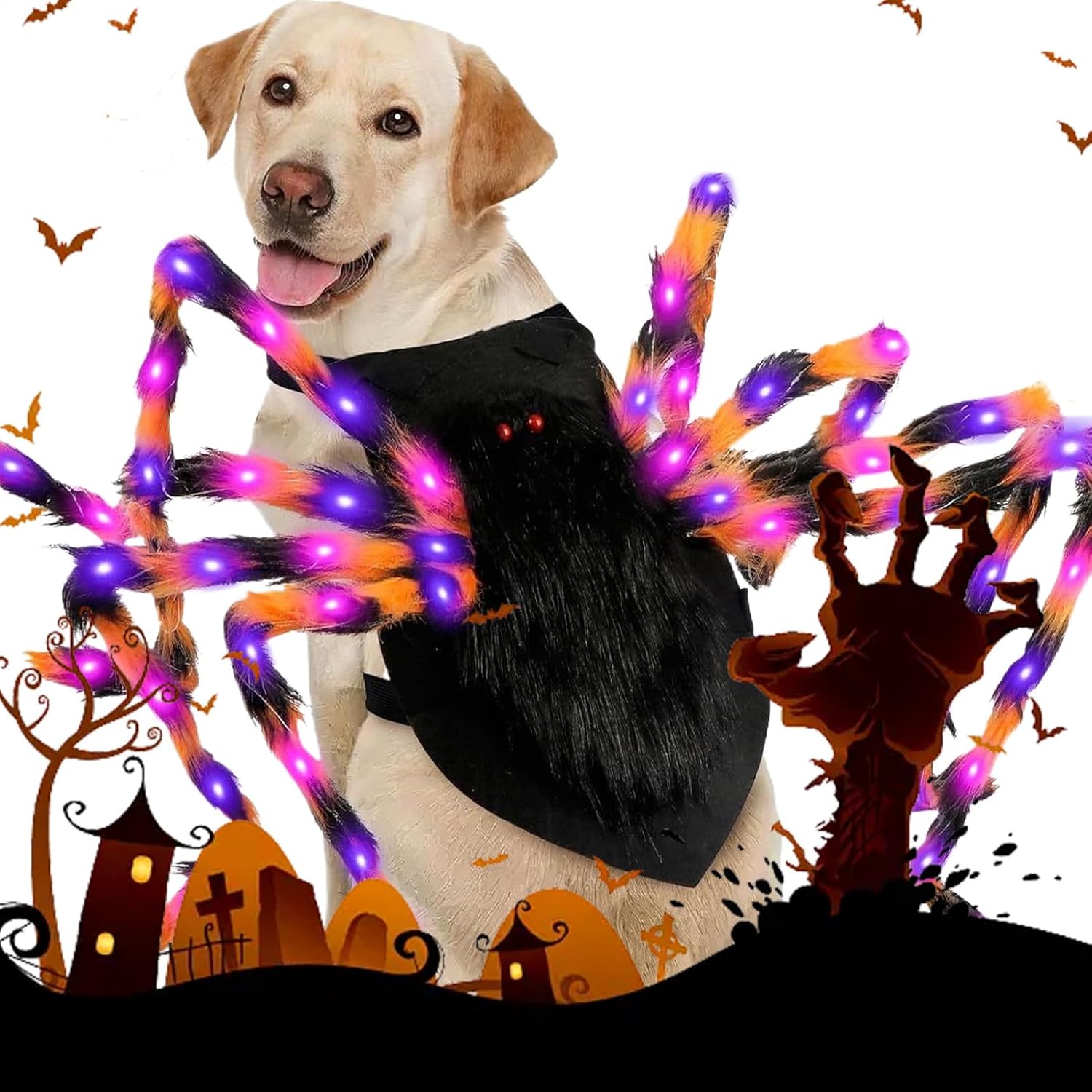 Cerca animale domestico: grazie alle sue otto morbide zampe, questo costume da ragno crea un look da cane eccezionale e immediatamente notevole. Ideale per feste a tema, eventi di Halloween o celebrazioni festive, garantisce che il tuo compagno sarà al centro dell'attenzione con il suo aspetto originale. Comfort regolabile: questo costume per cani di Halloween è adatto a razze di taglia medio-grande. La sua chiusura a strappo () consente regolazioni personalizzate per una vestibilità comoda e sicura attorno al collo e al busto, adattandosi alle diverse forme del corpo. Costruzione solida: il feltro morbido e inodore mantiene la sua forma dopo molteplici utilizzi. Fornisce maggiore durata e comfort per il costume del tuo cane, anche durante le feste vivaci. Illuminazione a LED versatile: goditi 8 modalità di illuminazione flessibili con luci a LED adattive, che offrono effetti di luce fissi o lampeggianti. Questo affascinante bagliore di Halloween migliora il costume del tuo animale domestico, ottimizzandone lo stile durante le feste serali e gli eventi a tema. Utilizzo: ottimale per servizi fotografici, eventi di raccolta di caramelle, feste di animali domestici e sfilate. Questo costume di Halloween da cane è il regalo festivo perfetto per il tuo amico peloso, assicurando momenti divertenti e memorabili durante le festività natalizie