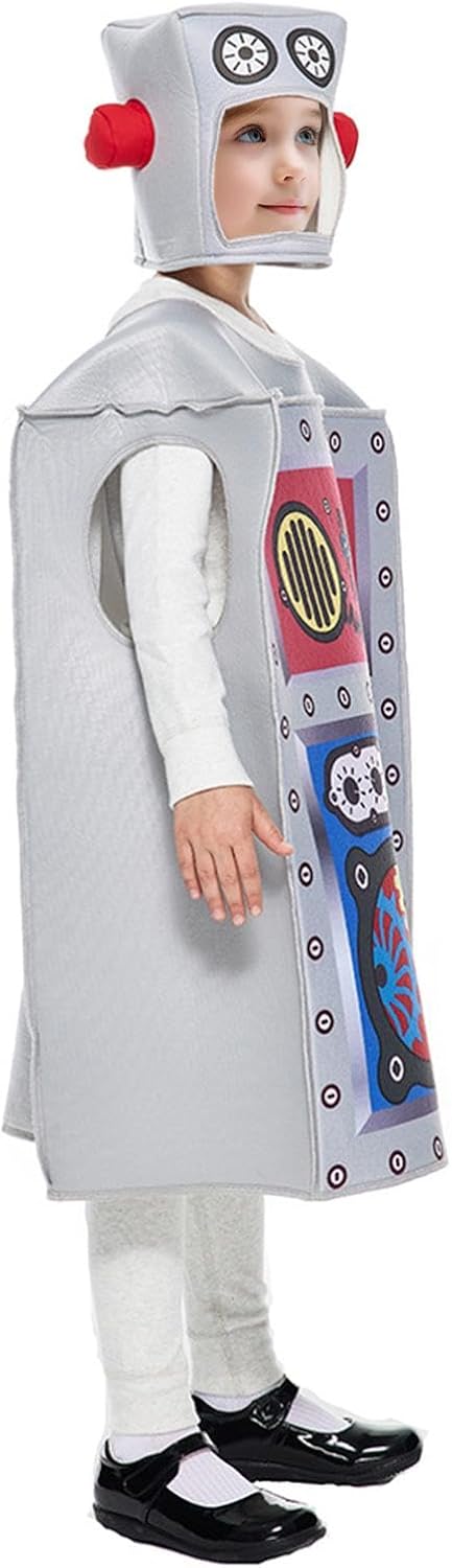 【Occasioni adatte】: Il costume da robot è perfetto per feste, Halloween, cosplay, carnevale, spettacoli teatrali, oggetti di scena per foto di Natale e altre occasioni speciali. 【Materiale di qualità】: poliestere di prima qualità, cucito con cura, riutilizzabile. Solo lavaggio a mano. 【Costume da travestimento】: il costume da robot per bambini è l'outfit perfetto per feste divertenti o celebrazioni natalizie. 【Oggetto di scena per feste a tema】: quando indossi questo costume da festa di Halloween, sarai speciale tra la folla. 【Taglia】: Adatto per altezza 100 cm-140 cm, lunghezza 61 cm/24,02 pollici, torace 46 cm/18,11 pollici, la confezione contiene copricapo e vestiti. Prima di ordinare, si prega di misurare la taglia.