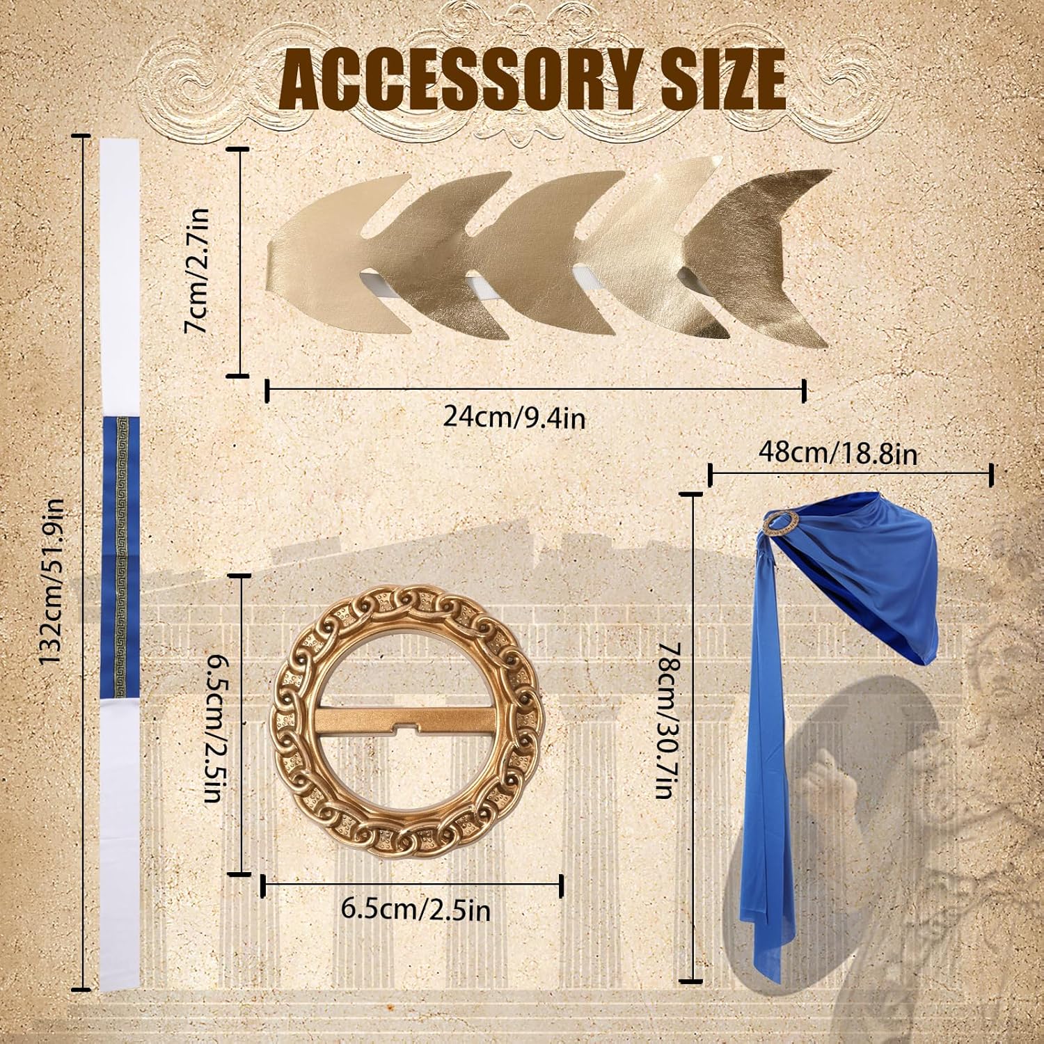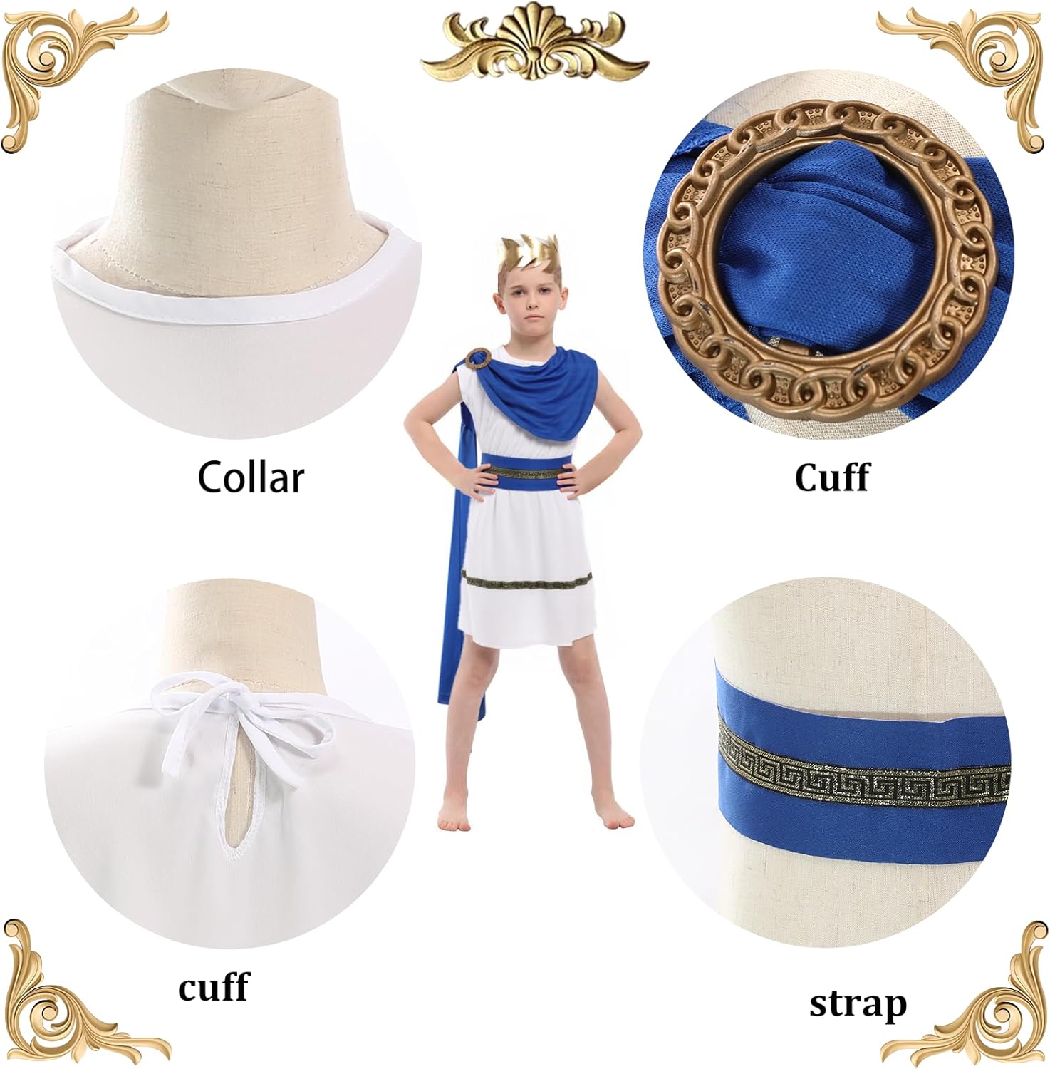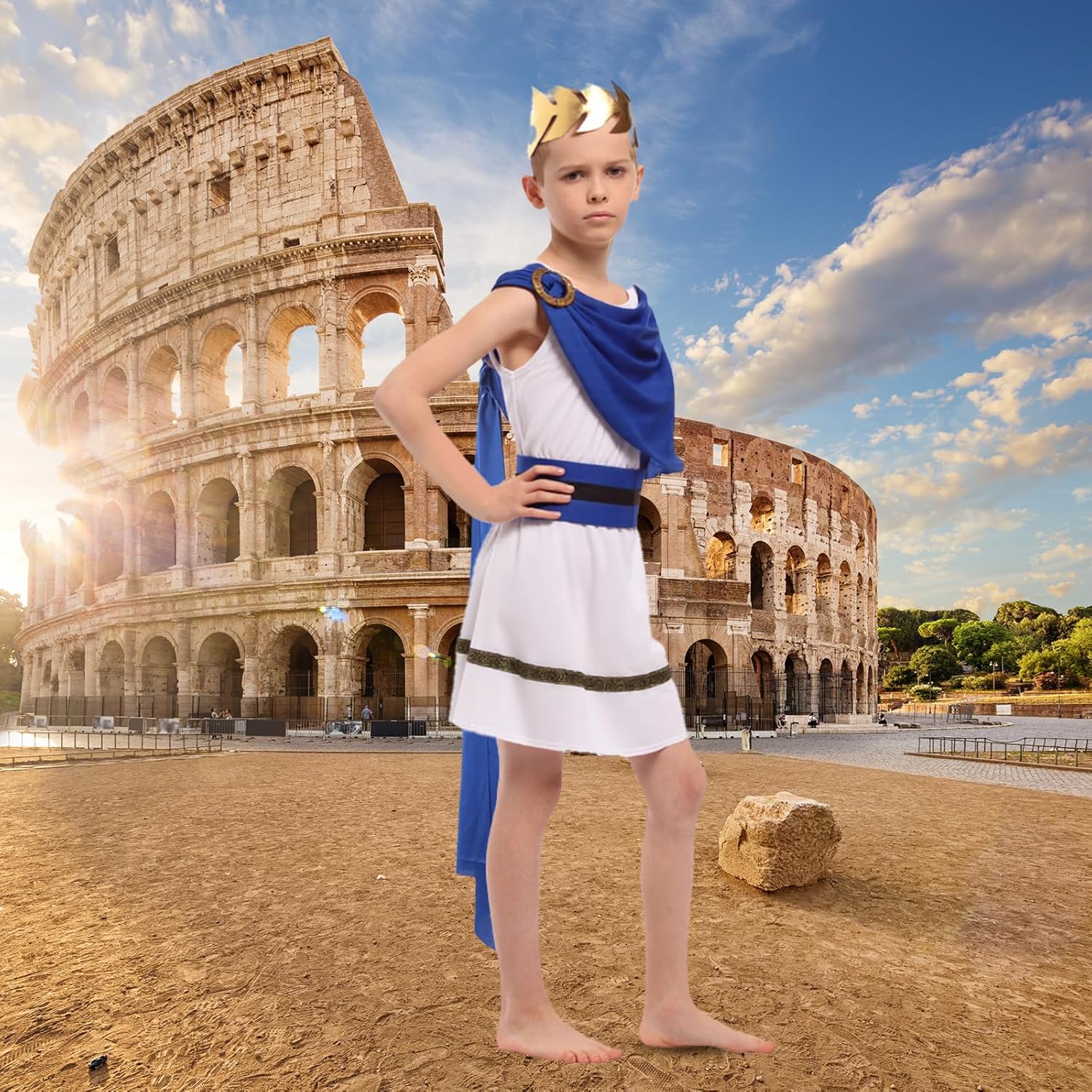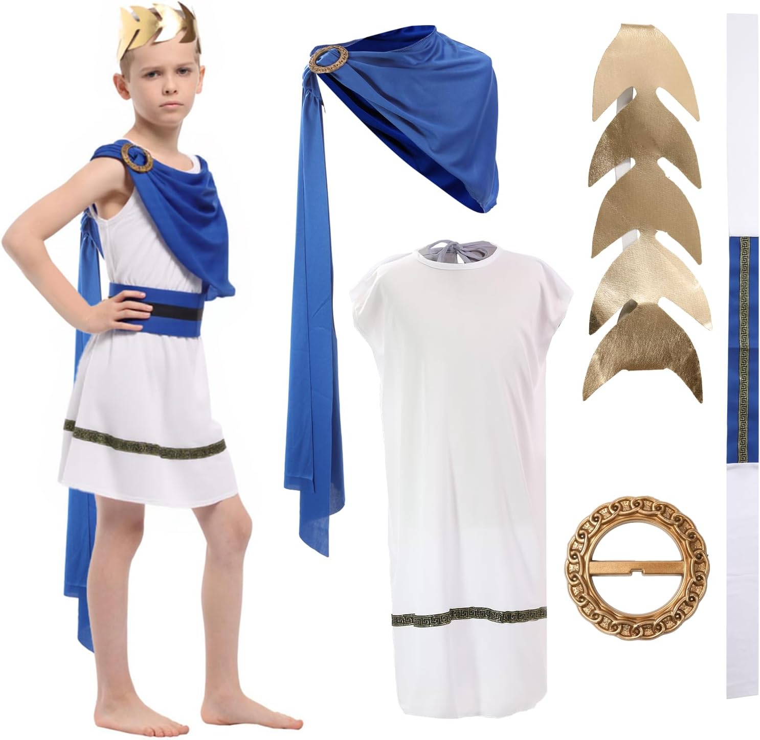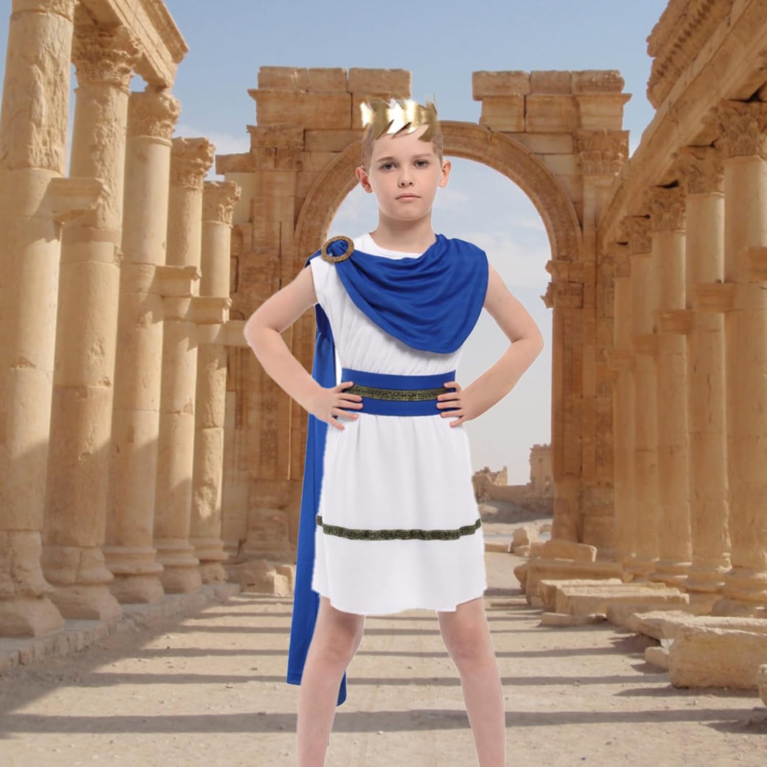 Descrizione prodotto La toga è realizzata in tessuto comodo da indossare e offre una libertà di movimento ottimale. Il maestoso mantello blu è elegantemente attaccato con una spilla dal design antico e aggiunge un autentico tocco romano al costume. Il costume è disponibile per bambini dai 3 ai 12 anni ed è facile da indossare e togliere. Il design tradizionale consente ai bambini di sentirsi un vero nobile romano. Ideale per feste in costume, spettacoli teatrali o eventi storici. Avviso di sicurezza no