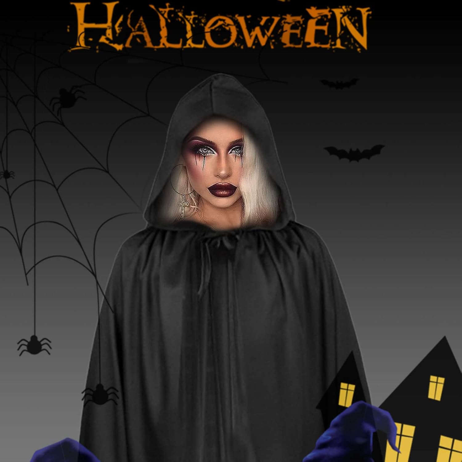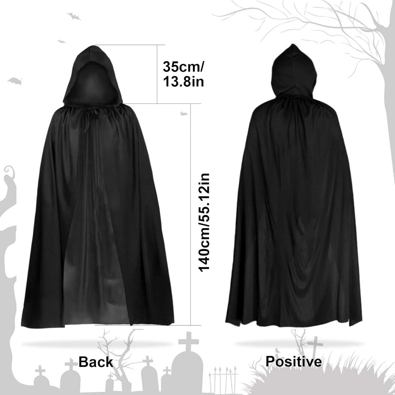 La confezione include: la confezione include un mantello nero. La dimensione del mantello è di circa 140 cm di lunghezza. Questo elegante mantello nero con cappuccio è adatto per la maggior parte degli uomini e delle donne, può essere facilmente abbinato con abiti e lo adorerai! Materiale premium: classico mantello con cappuccio per accessori per costumi di Halloween. Questo mantello nero con cappuccio è tessuto a maglia di alta qualità, comodo e morbido da indossare, non facile da rompere, delicato sulla pelle, traspirante, caldo ed elastico. Facilità d'uso: fissare il mantello, basta legarlo al collo per essere sicuro sulle spalle. Facile da indossare in casa o per tutto il tempo necessario al tuo personaggio. Ti darà la migliore esperienza confortevole ed è un ottimo modo per rendere la tua festa piena di divertimento e impressionare i tuoi ospiti. Attraente: quando indossi questo mantello entrerai rapidamente nel tuo personaggio, questo mantello nero con cappuccio è un must per occasioni come Halloween, sia che lo indossi sopra i tuoi vestiti ordinari, vorresti appenderlo come parte delle tue decorazioni di Halloween o indossarlo come una dichiarazione di moda. Multiuso: questo mantello nero è ideale per qualsiasi gotico, Halloween, feste in maschera, vampiro, strega, feste in costume, feste a tema horror e altre occasioni. Vestirsi darà vita ai tuoi personaggi della festa e aggiungerà mistero alla festa. E crea alcuni ricordi incredibili con la famiglia e gli amici.
