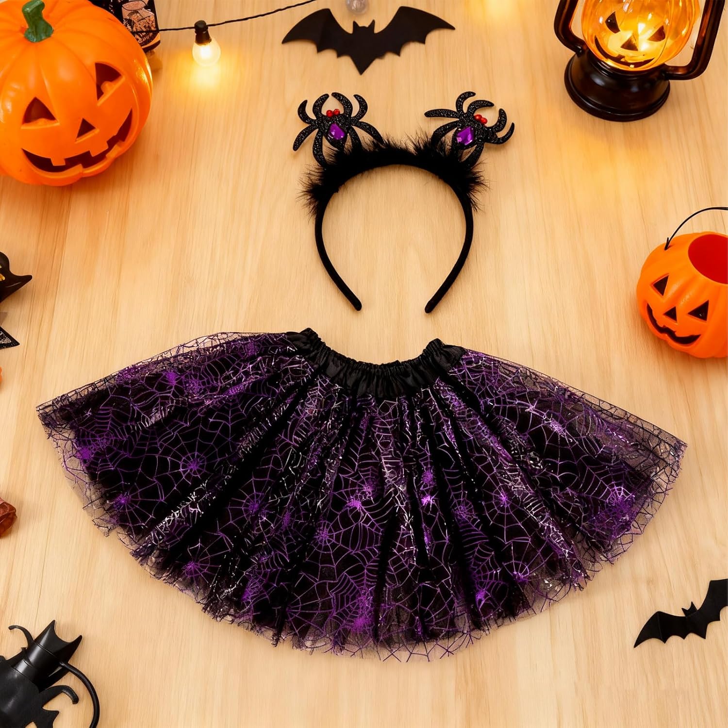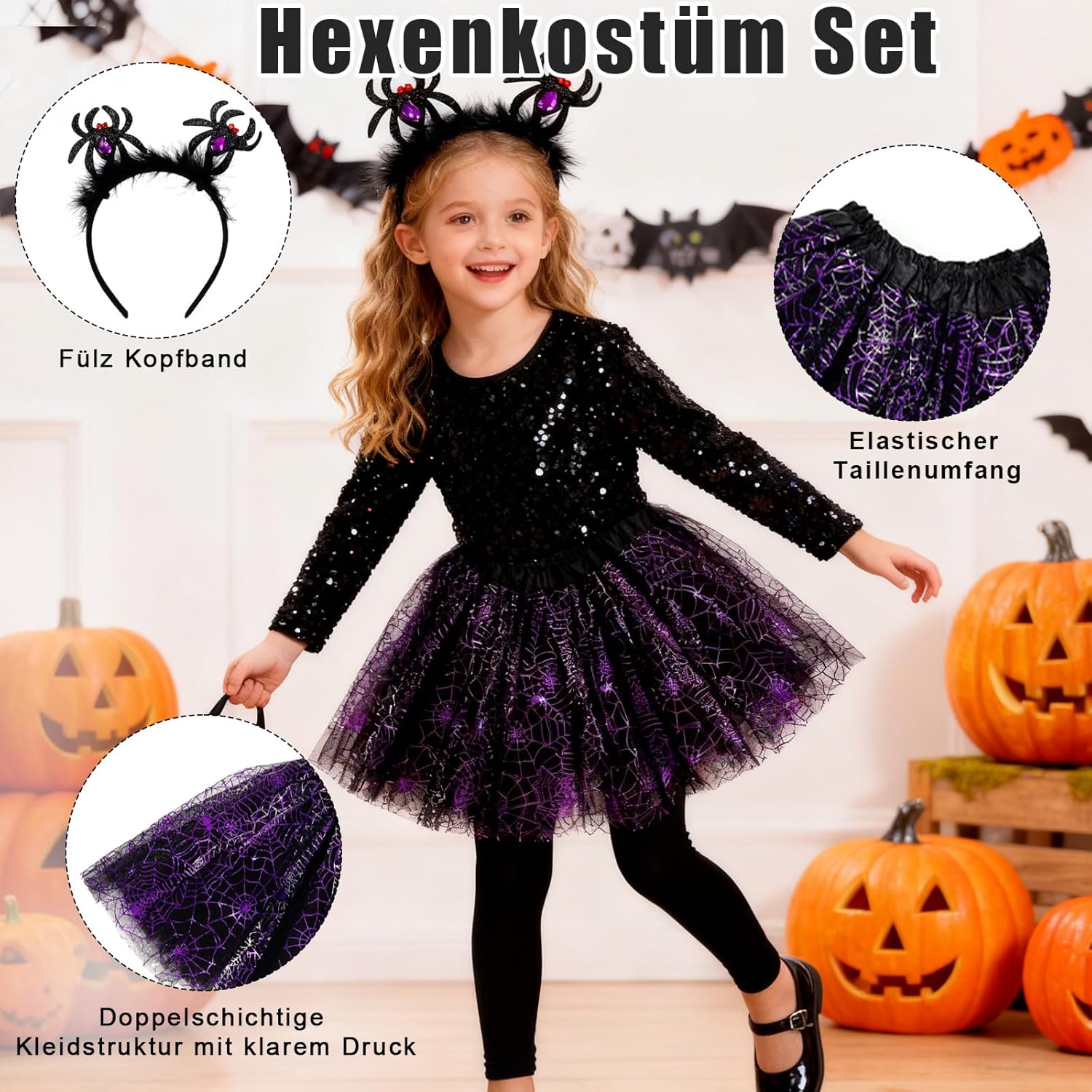 Descrizione prodotto Qwrqwr Costume da strega per Halloween, per bambini, set premium con gonna da strega, fascia per capelli, carnevale, Avviso di sicurezza Non ingerire.