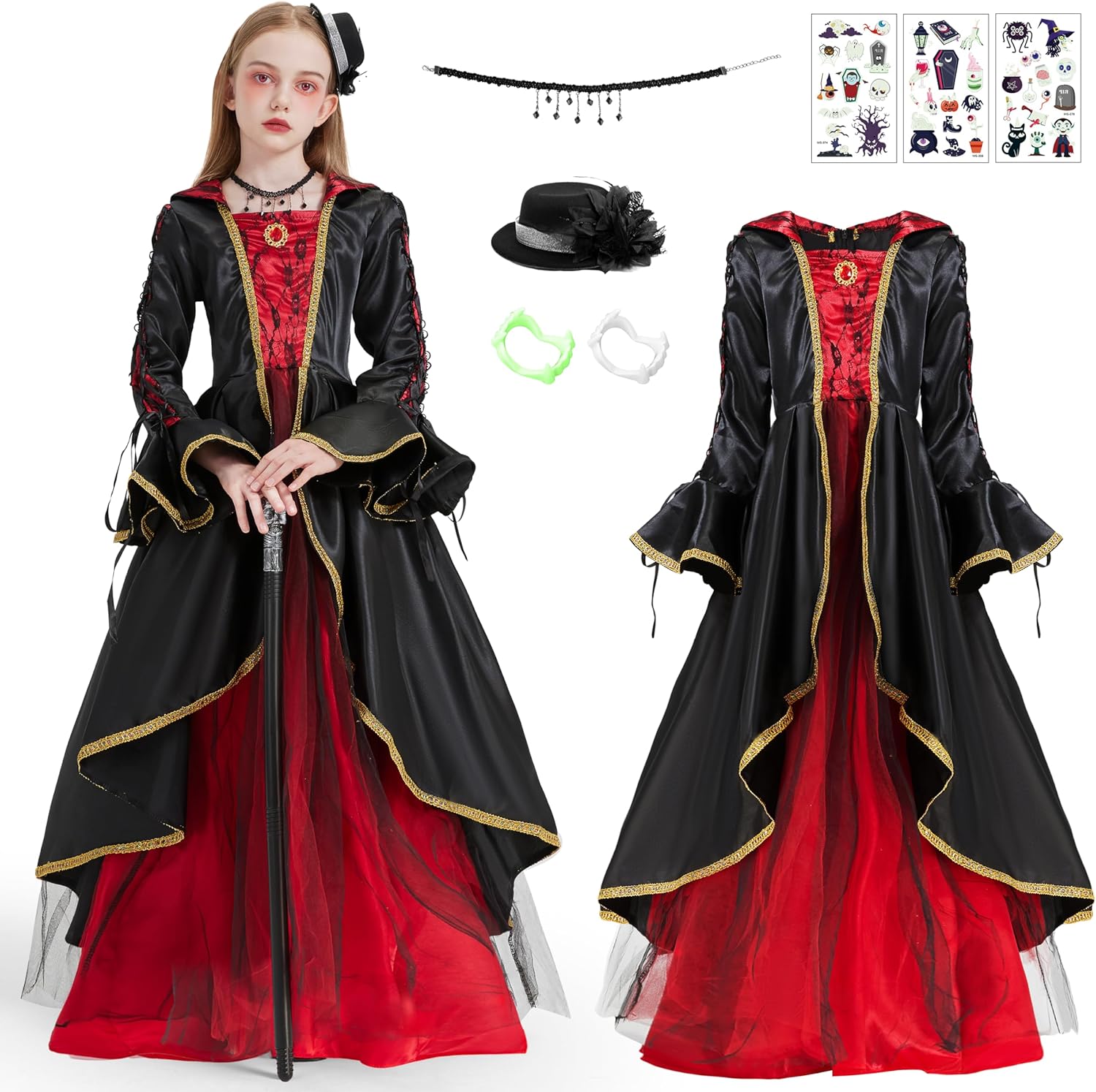 Costume da strega per ragazze, tutù da ragno con cappello da strega, set di accessori da strega di Carnevale di Halloween, per regalo di festa in maschera imitazione cosplay
