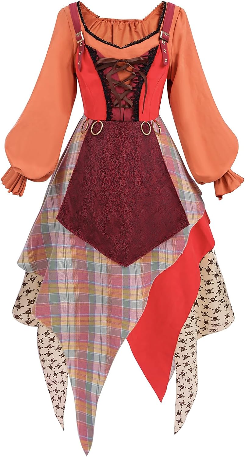 The media could not be loaded. My daughter is 8 years old, 53 lbs and 53” and this fits beautifully. Maybe a little loose but the belt cinches the waist, and the sleeves and length are nice and long. She will have to wear leggings and a long sleeve underneath in our cold climate. Love the high neck! Very elegant and glamorous for also being wicked. The choker is a nice touch but she already misplaced it because she’s been loving wearing it and Halloween is still weeks away. So nice to find an inexpensive complete outfit and never have to go to town to go shopping!