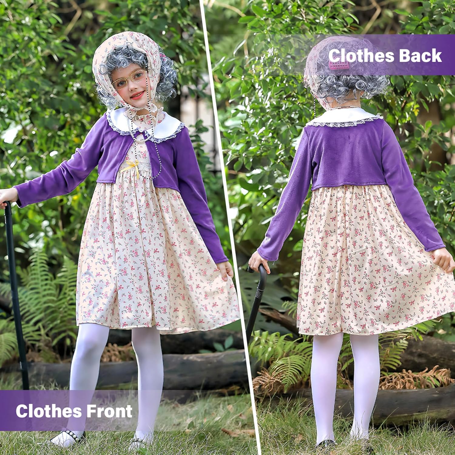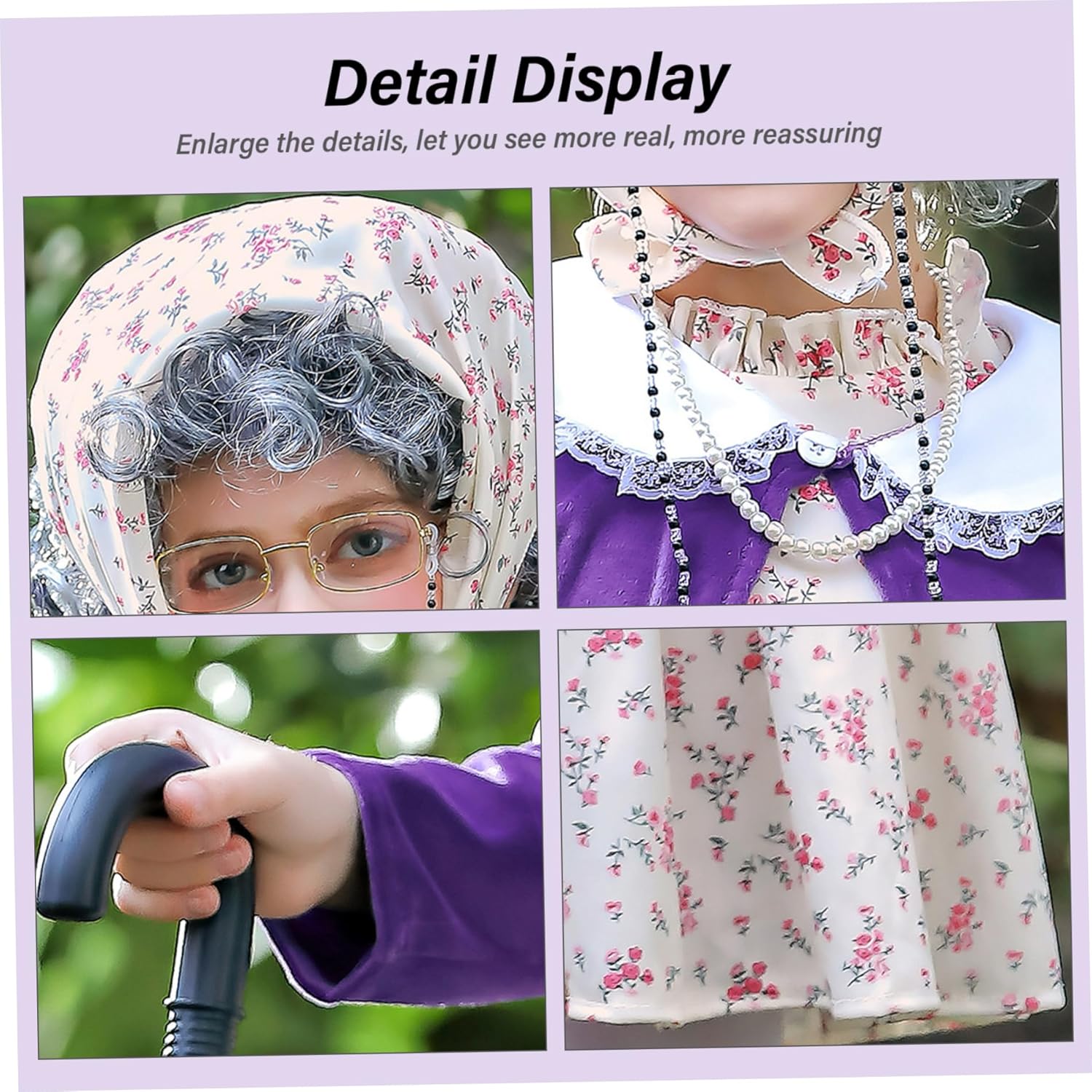 Descrizione prodotto Descrizione: Lascia che il tuo bambino metta nei panni di un'affascinante nonna con questo costume da vecchia signora per bambini..Perfetto per 100 giorni di feste scolastiche, feste in maschera o divertenti giochi di ruolo, questo set completo include tutto ciò di cui il tuo piccolo ha bisogno per trasformarsi in un personaggio anziano dolce ed elegante..Dal foulard alla catena di perle, ogni pezzo è pensato per creare un look autentico e divertente.. Caratteristiche:.. Costume da Vecchia Signora per bambino.. -Colore: come mostrato.. -Materiale: fibra di poliestere.. -Taglia: M (130 cm).. Nota: Misurazione manuale, prega di consentire lievi errori sulla dimensione.. I colori potrebbero presentare una leggera differenza a causa dei diversi schermi.. Pacchetto che comprende 1 set * Costume da vecchia signora per bambini Avviso di sicurezza Avvertenza: Non lasciare che i bambini indossino questo costume senza supervisione per evitare il rischio di ingerire parti piccole o soffocamento. Usalo sotto la supervisione di un adulto.