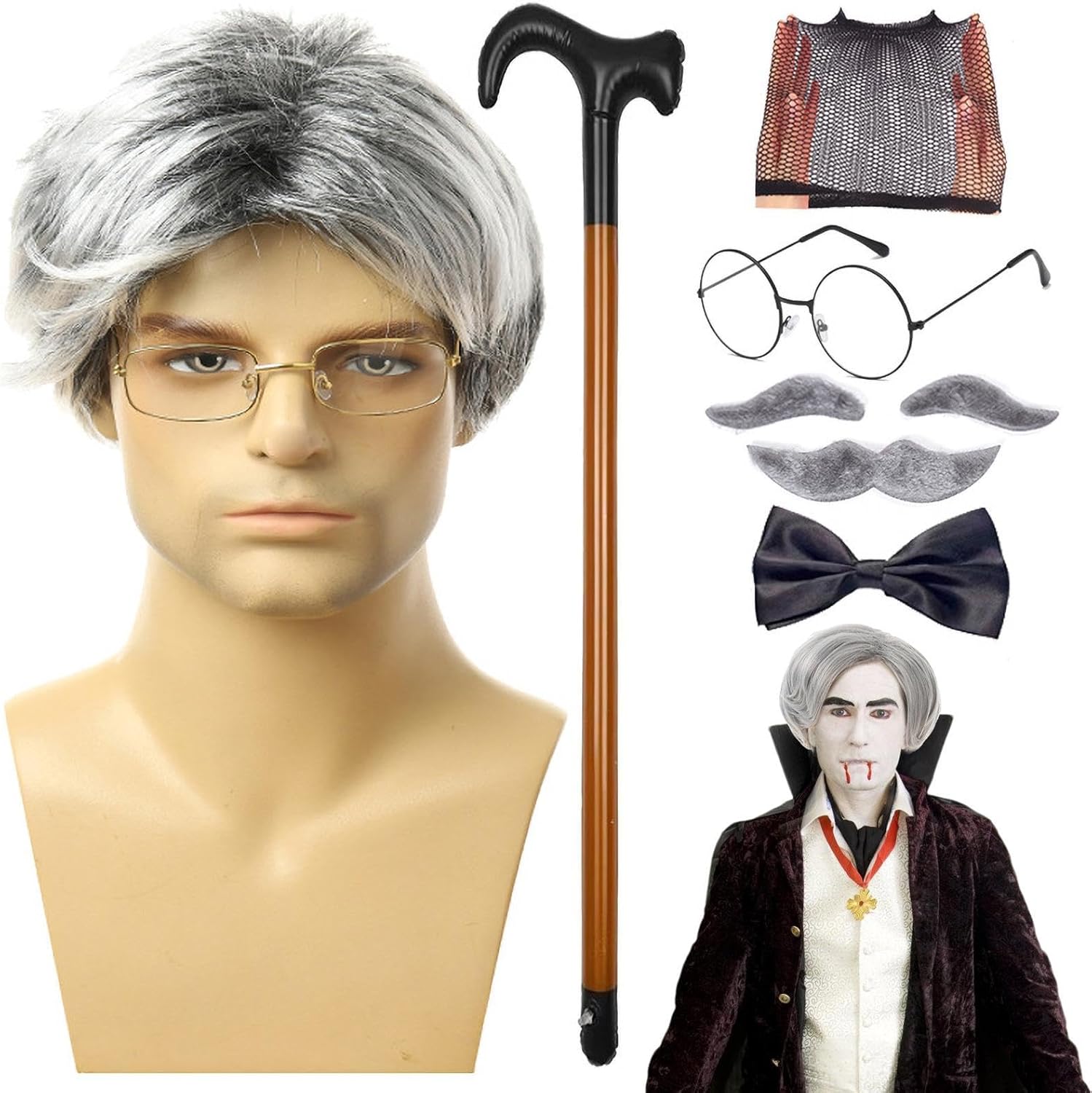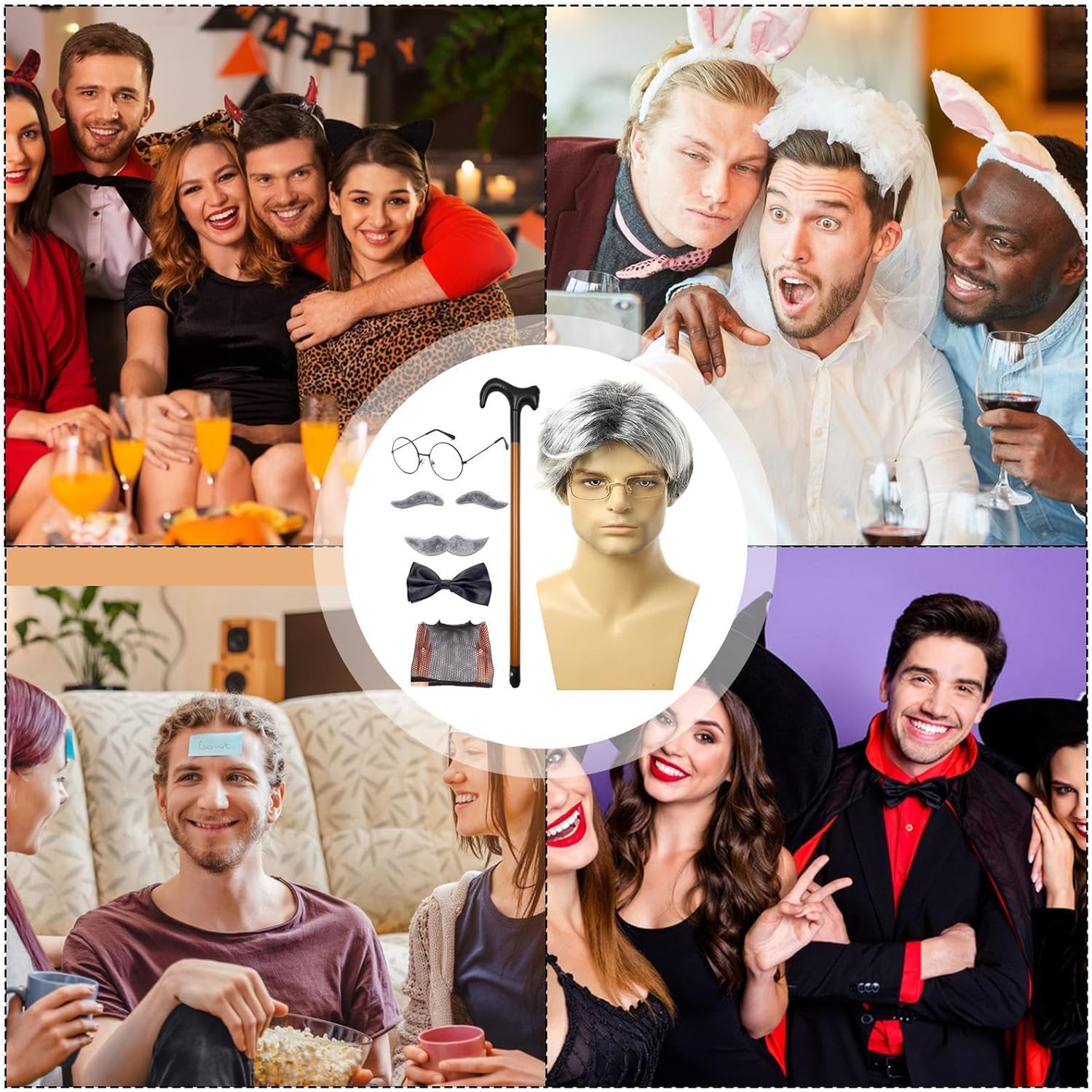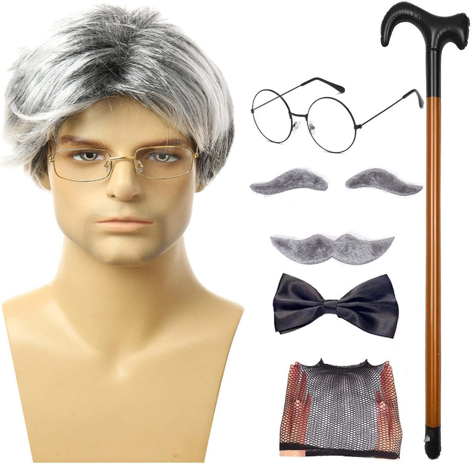 ❧Migliora il tuo aspetto: trasforma il tuo aspetto in pochi secondi con il nostro set di parrucche Old Man. Viene fornito con per cambiare il tuo look per più personalità e divertimento. Perfetto per un'esperienza giocosa e divertente. ❧Durevole e realistico: migliora la tua trasformazione con il nostro set di parrucche Old Man resistente e vivace, realizzato con cura con materiali delicati sulla pelle per un look confortevole e naturale. Realizzato in ottima fibra sintetica, è un accessorio versatile per varie occasioni. ❧Scelta versatile: migliora il tuo cosplay di Old Man con facilità. Questo set di parrucche è adatto a tutti gli adolescenti e gli adulti, dotato di un cappuccio elastico per una vestibilità calda e confortevole, che lo rende la scelta perfetta per qualsiasi cosplay di Old Man. ❧Set parrucca da vecchio: include una parrucca realistica, barba grigia folta, sopracciglia espressive, come papillon, occhiali, berretto per parrucca e un bastone da passeggio gonfiabile per il tocco finale perfetto. Incarna il classico personaggio del nonno e goditi la trasformazione completa. ❧Multiuso: crea look indimenticabili con questo set di parrucche Old Man, un accessorio indispensabile per i tuoi costumi di Halloween, Natale e feste a tema, perfetto per gli amanti del cosplay e adattabile a varie occasioni.
