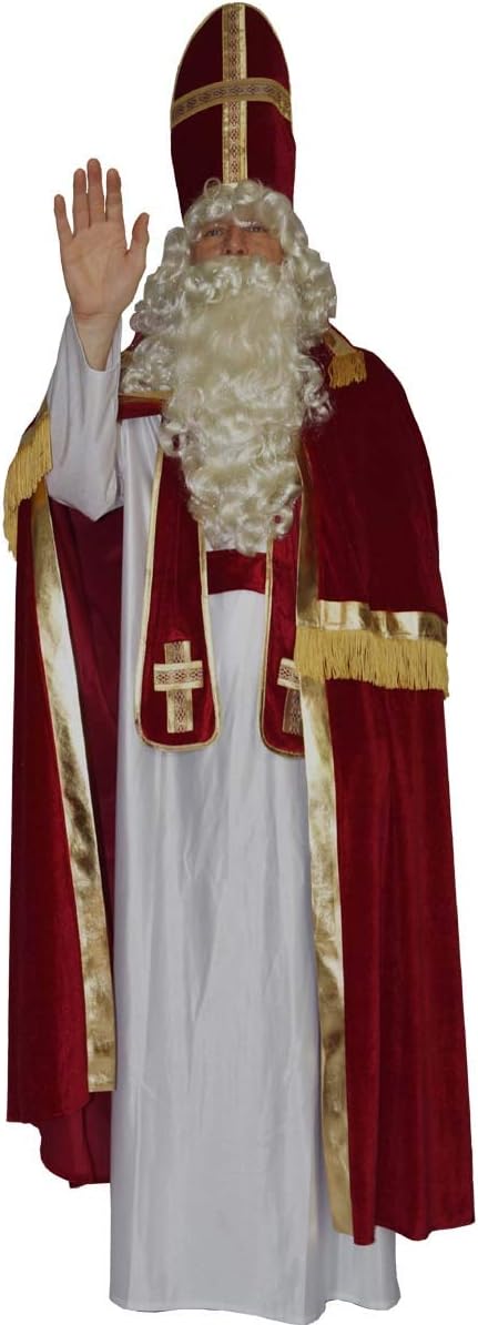 Con questo costume avrete l'outfit perfetto per interpretare il ruolo di un venerabile vescovo, oppure per Natale, San Nicola o carnevale. Questo completo in 4 pezzi è composto da un vestito (alba), un mantello, una stola e una mitra (copricapo). Costume da vescovo 100% poliestere - senza barba e senza parrucca!