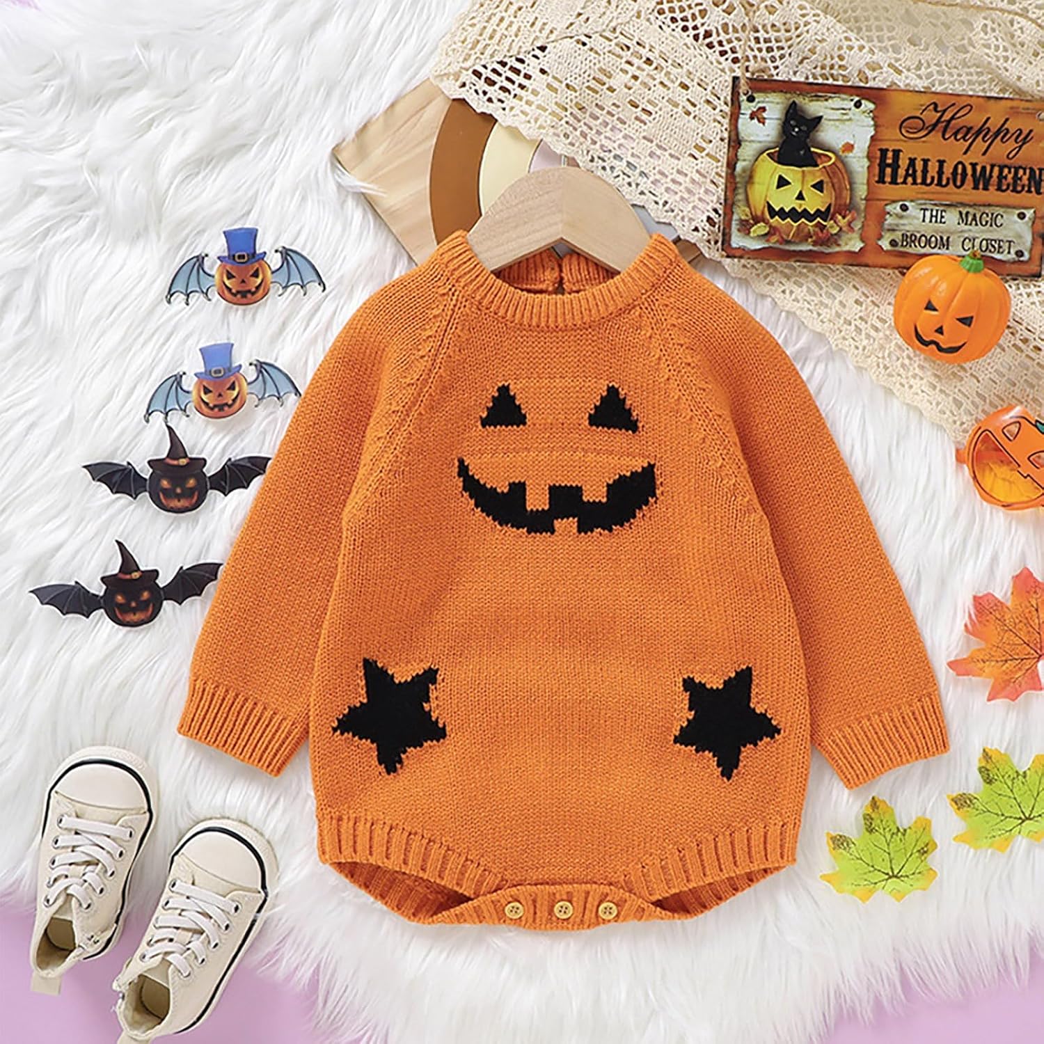Costume da Zucca per Bambini Zucca Vestito da Carnevale Unisex Costume da Pumpkin Bambino Vestito Per Neonati Tutine Neonato Set 0-24 Mesi Ragazze Tutina Pagliacetto Bambine Set di Jumpsuit