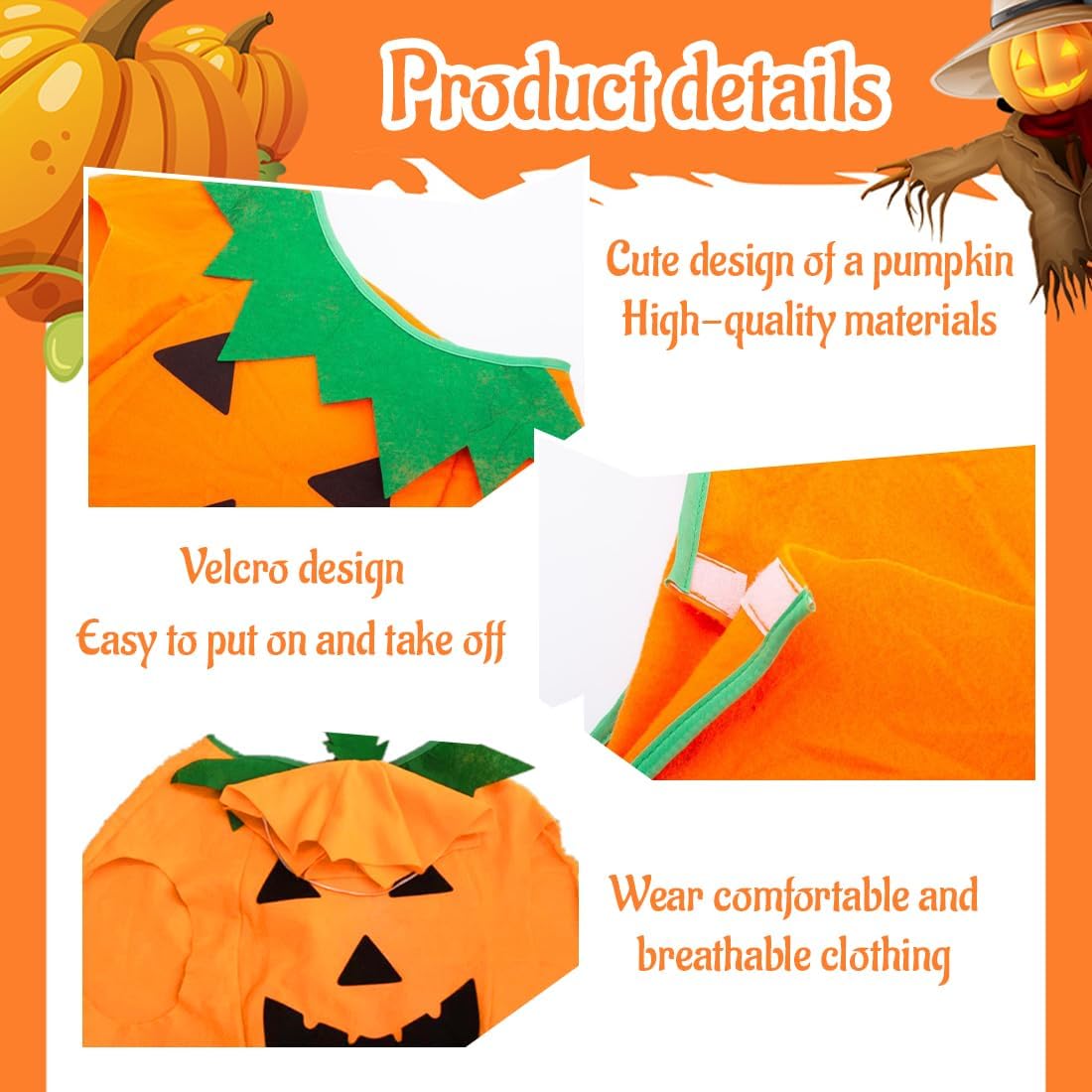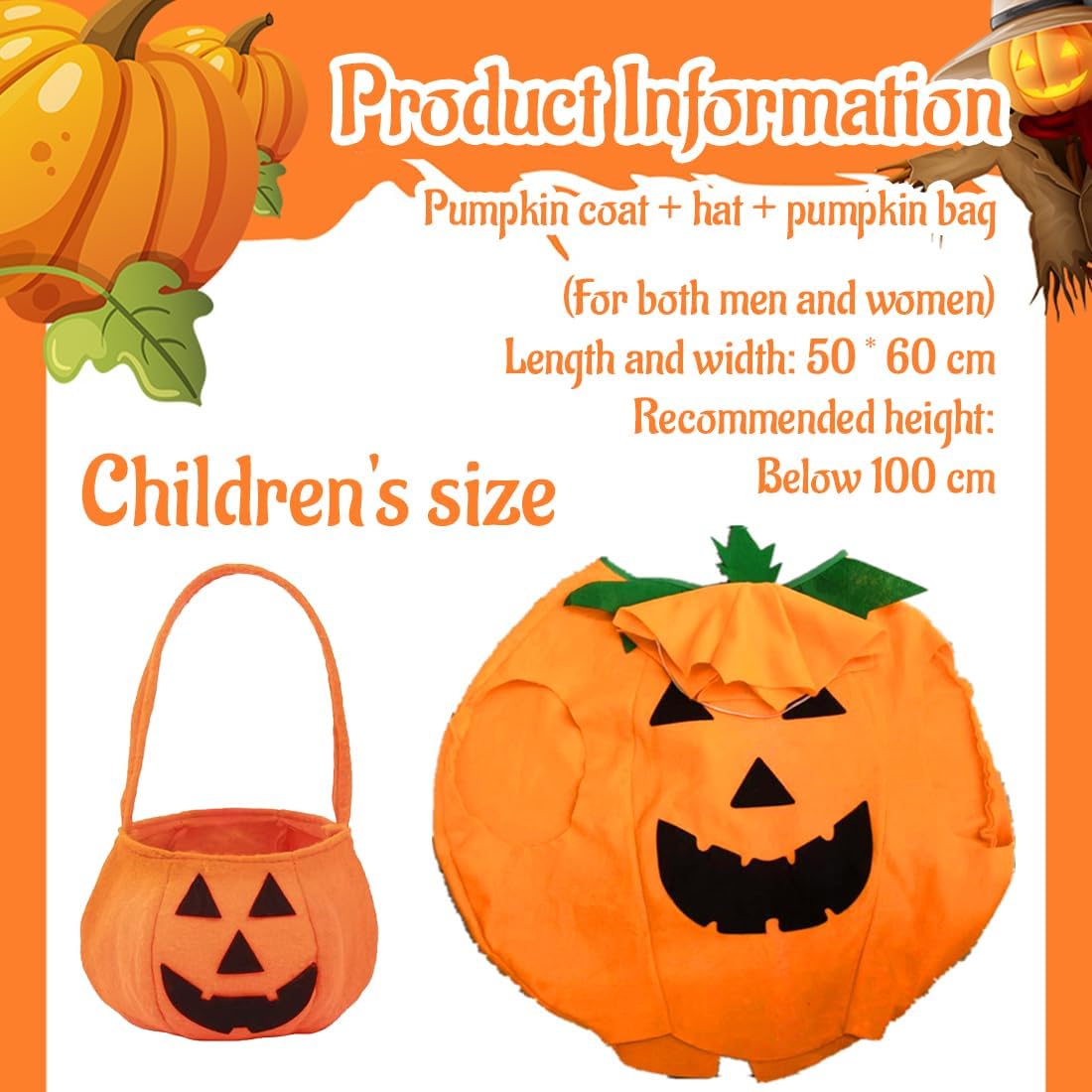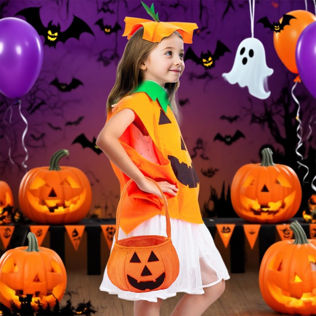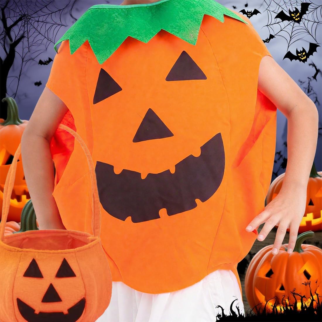 OIXEYA Costume Da Zucca per Dambini Halloween, Con Cesto Di Zucca E Cappello, per Ragazzi E Ragazze, Cosplay, Festa Di Halloween