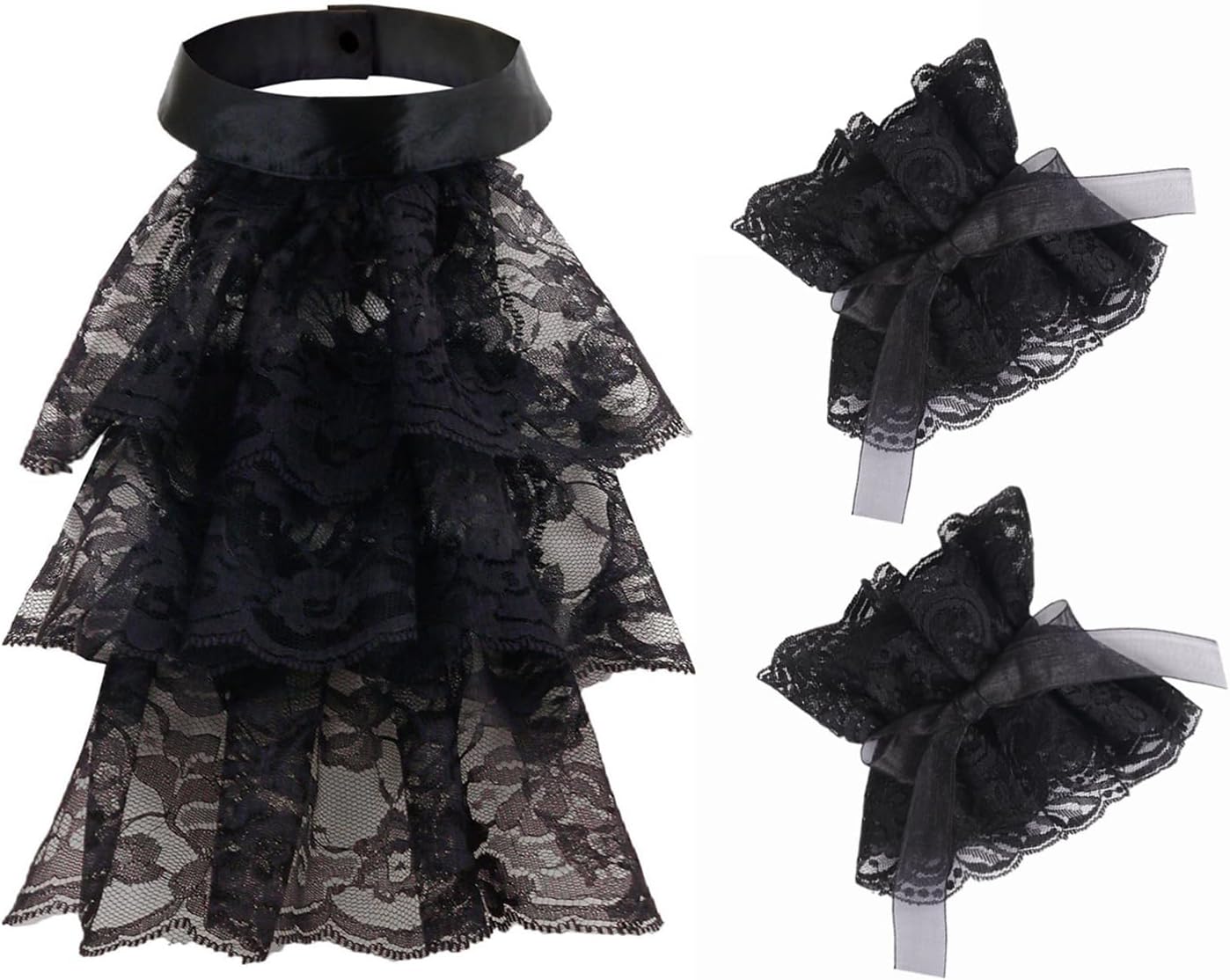 Costume di Halloween Finti Polsini E A Livelli Increspato Pizzo Coloniale Jabot Collari Set Coloniale Vittoriano Coloniale Neckwear Per Le Feste Caratteristiche: in tessuto di poliestere, leggero, morbido e comodo da indossare. Vittoriano jabot collare e polsini set, set costume coloniale. Progettato con chiusure adesive per un facile utilizzo. Il colletto jabot è progettato con pizzo increspato a strati. Viene fornito con un paio di polsini. Buona coppia per costume coloniale, costume vittoriano, vestito di Halloween. Specifiche tecniche: Componente: poliestere. Colore: nero. Stili opzionali: 1 collare finto e 1 paio di polsini da polso, 1 paio (2 pezzi). Collo: circa 42 cm. Lunghezza del collare: circa 15 cm. La confezione include: StyleA, 1 collare finto e 1 paio di polsini da polso. StyleB, 1 paio (2 pezzi) di polsini da polso. Nota: Si prega di considerare un margine di errore di 1-3 cm dovuto alla misurazione Si prega di assicurarsi che non sia un problema prima di effettuare l'ordine. A causa della differenza tra i diversi monitor, l'immagine potrebbe non rispecchiare il colore reale dell'articolo.
