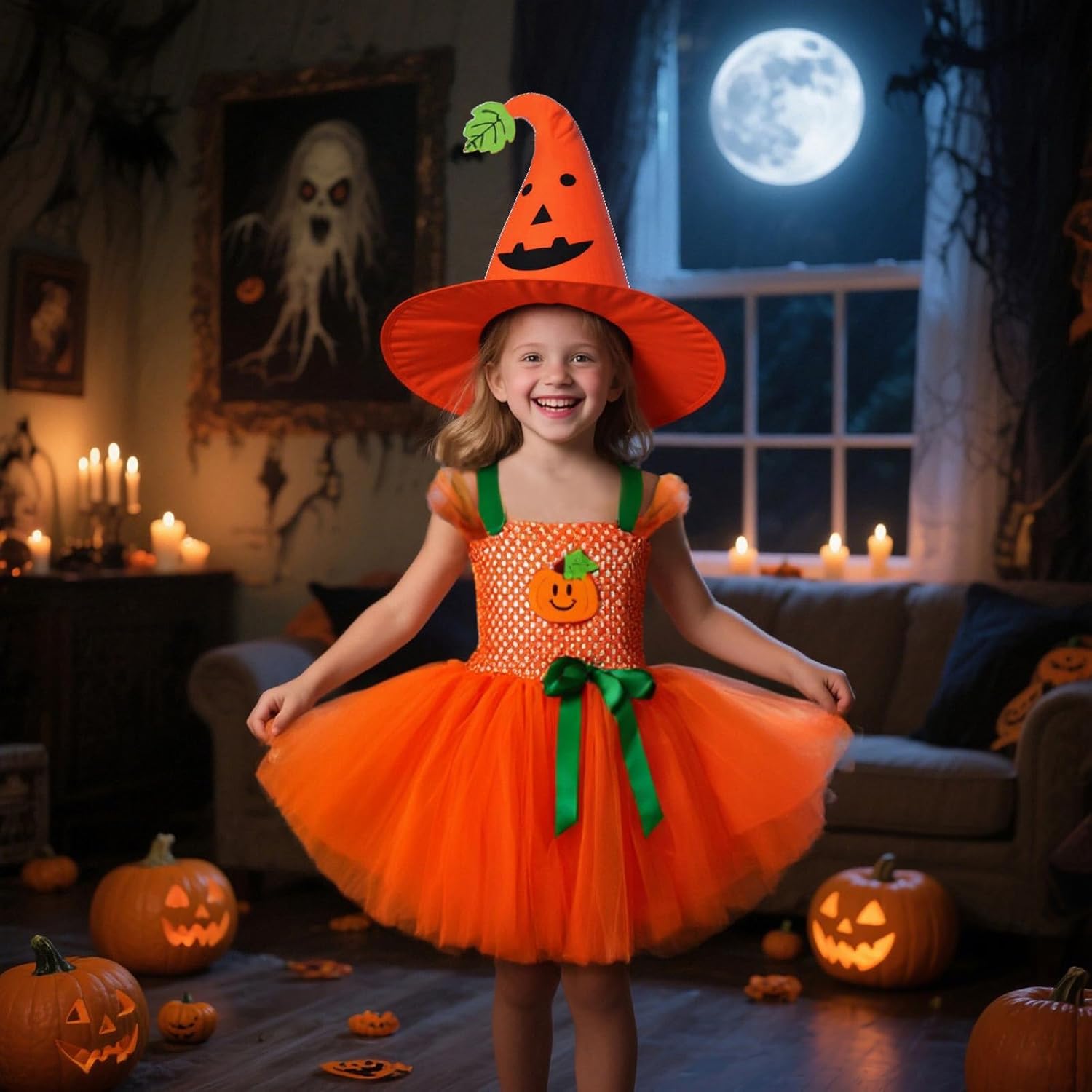 Si tratta di un abito tutù a zucca per ragazze, che può essere utilizzato anche come abbigliamento cosplay, include abito senza maniche in tulle con spallacci regolabili, colore arancione, stile fancy, adatto per feste di Halloween e occasioni festive