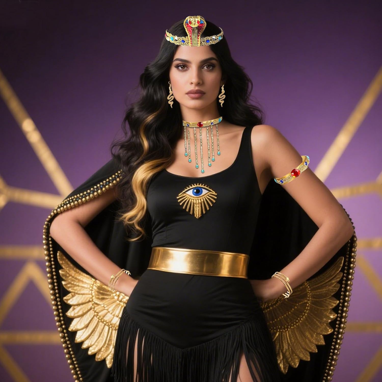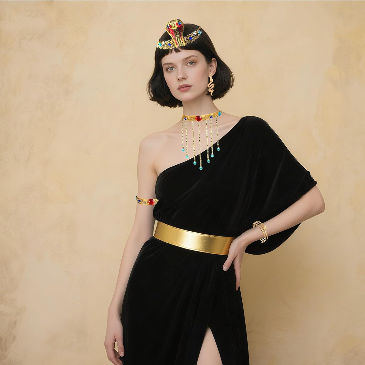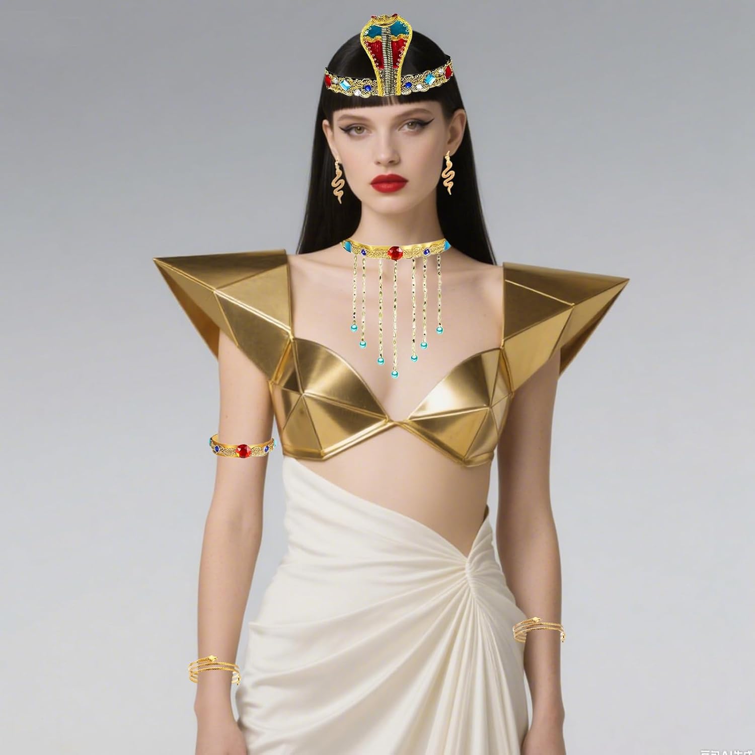 Descrizione prodotto Caratteristiche: 1. Il set è realizzato con materiali di alta qualità, leggero, elastico, comodo da indossare, non appesantisce il corpo. 2. Abbiamo una vasta gamma di set di costumi. Include una fascia per capelli a serpente, polsini a serpente, braccialetto a serpente, braccialetto con pietre preziose e un paio di orecchini. 3. Il set da abito egiziano è molto facile da indossare e indossare, pregevole fattura, non devi preoccuparti che le pietre si sfaldino, puoi facilmente vestirti come preferisci! ; 4. Un cobra dorato a spirale ispirato ai totem mistici egiziani. Decorato con strass scintillanti e colorati, è un pezzo di capelli abbagliante. La vista più avvincente del Nilo è quando giri delicatamente la testa. ; 5. Può essere utilizzato per una varietà di occasioni come feste di Halloween, mostre cosplay, servizi a tema, copertura completa di spettacoli teatrali e altre prestigiose feste ed eventi legati all'Egitto. La confezione include: Set da 7 pezzi per travestimento egiziano. Specifiche tecniche: Materiale: come da immagine. Dimensioni: come da immagine. Attenzione: 1. A causa dei diversi schermi, potrebbero esserci lievi differenze di colore. 2. Si prega di considerare una differenza di 1-2 mm dovuta alla misurazione manuale e confermare la lunghezza prima di ordinare, grazie per la vostra gentile comprensione! 3. Faremo del nostro meglio per fornire prodotti migliori. Vi preghiamo di contattarci liberamente se avete bisogno di assistenza. Avviso di sicurezza Uso sicuro