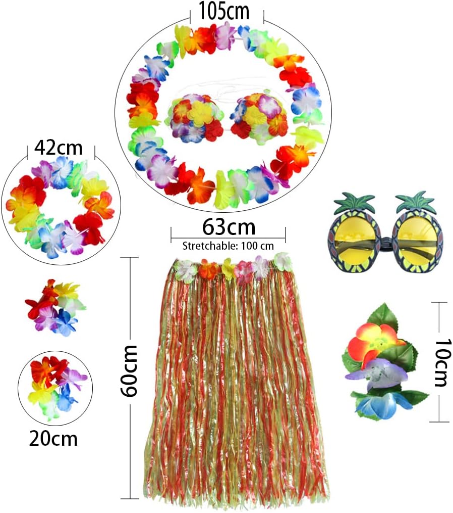 Materiale: realizzato in plastica e tessuto, è leggero e resistente, facile da trasportare e può essere indossato più volte. Dimensioni: ca. 60 cm (lunghezza gonna); Circa 63-100 cm (vita), in grado di soddisfare le esigenze della maggior parte delle donne. Contenuto della confezione: riceverai un set di gonne in erba (8 pezzi), comprese gonne, ghirlande, occhiali, braccialetti, ecc. Ambito di applicazione: adatto per occasioni di vacanza, feste a tema, feste in spiaggia, feste a tema hawaiane, feste in maschera, feste di compleanno, ecc. Servizio: se hai domande sull'acquisto di un prodotto, puoi contattarci in qualsiasi momento. Ti risponderemo e risolveremo il tuo problema il prima possibile.