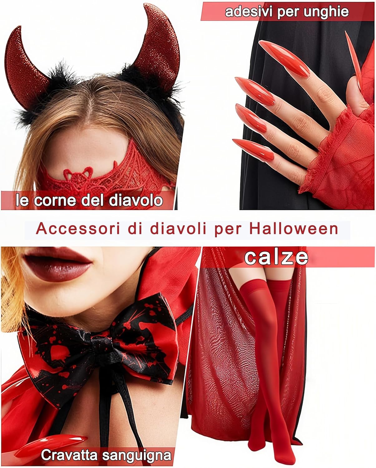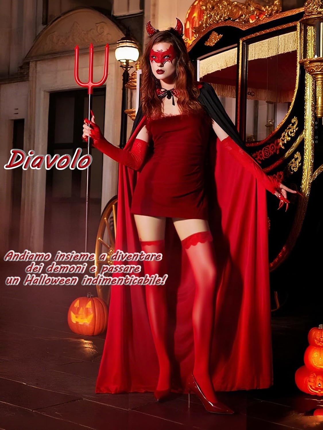 Descrizione prodotto Costume da Vampiro per Halloween – Per ragazze, giovani/adulti al carnevale Sbalordisci ad Halloween 2025! Questo set premium ti trasforma in un vampiro realistico, perfetto per "Dolcetto o Scherzetto" e ruoli horror! Ordina subito: Mantello reversibile (nero/rosso), fascia con corna demoniache , maschera da pipistrello, farfallino insanguinato, bracciali a ragnatela, artigli da vampiro rossi, calze rosse. Set completo per dominare la notte! Prodotto e taglie: Mantello: Taglia M (130-160cm) Taglia L (160-190cm) Taglia XL (170-200cm) Fascia corna: Unica Maschera: Unica Farfallino: Unica Bracciali: Unica Artigli: Unica (adesivi inclusi) Calze: Unica Materiale: Raso doppio viso Avvertenze: ① I colori possono variare leggermente. ② Misurazione manuale – lievi variazioni possibili. Avviso di sicurezza Non applicabile a questo prodotto