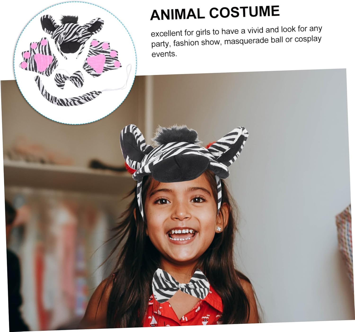 Utilizzo multievento: adatto per spettacoli teatrali, feste ed eventi a tema, portando entusiasmo ed energia, fascia per zebrata, accessori zebrati Flessibilità della moda: il costume da zebra può essere abbinato senza sforzo a vari stili di abbigliamento per un look distintivo, costume da animale, kit costume da zebra Regolazione flessibile: la fascia può essere facilmente regolata per adattarsi a qualsiasi dimensione della testa, adatta ai che agli adulti, copricapi di carnevale per le donne, costume da spettacolo per feste di carnevale Vestibilità fai da te: la fascia regolabile rende il vestito adatto a qualsiasi dimensione della testa, adattandosi a tutti i costumi da zebra per , costumi da zebra per donne Comodo e traspirante: realizzato in cotone e tessuto, offre comfort e traspirabilità, mantenendo il suo aspetto vivace, costume con accessori per animali, costume da spettacolo
