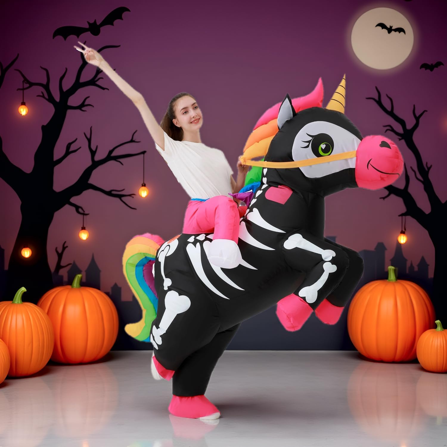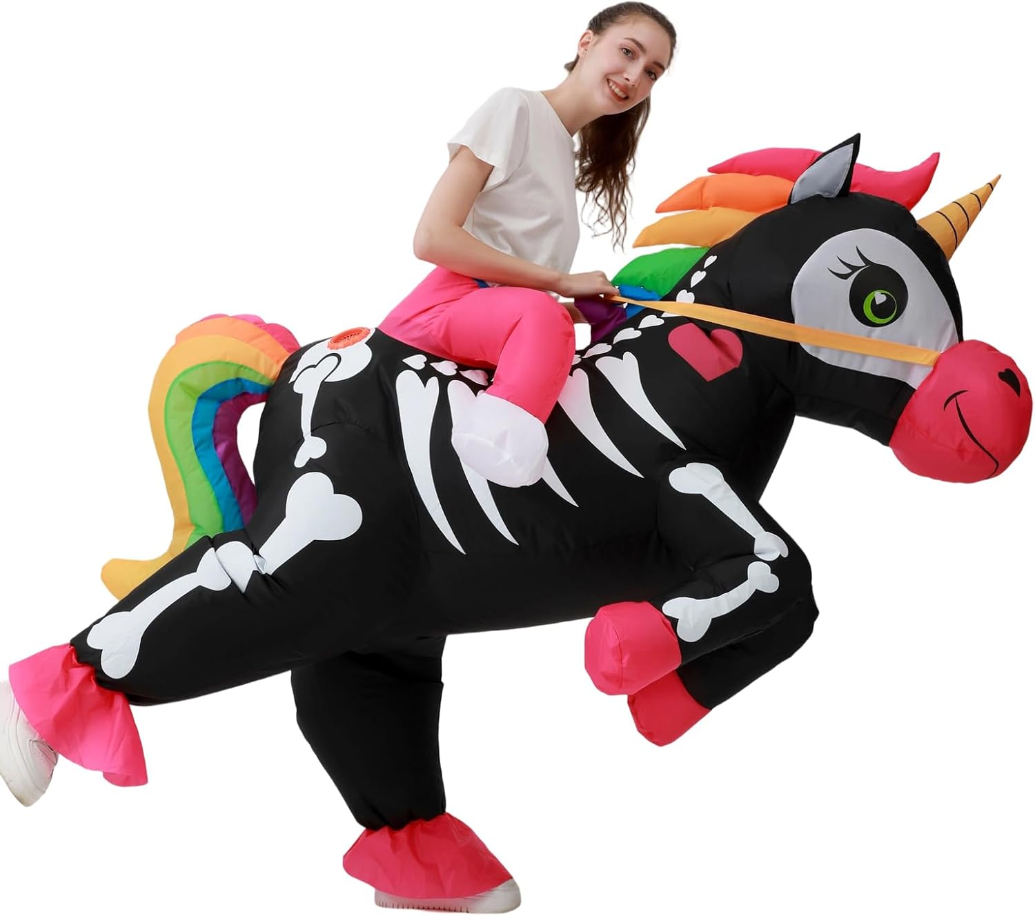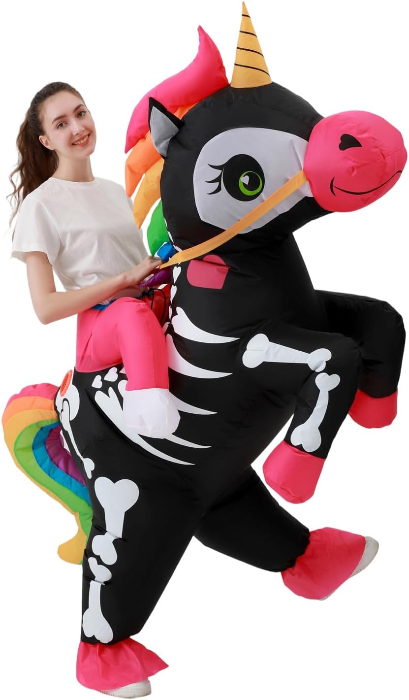Il costume gonfiabile da unicorno è realizzato in poliestere. Costume gonfiabile da cavalcata su unicorno, adatto per altezza 135-180 cm, vita massima 100 cm, più adatto per donne magre. Costume da unicorno gonfiabile per adulti. La confezione include 1 costume da unicorno, 1 pompa ad aria e 1 ventaglio per costumi. I costumi gonfiabili di Halloween unicorno richiedono 4 batterie AA, non includono la batteria; il secondo metodo è utilizzare la banca di potere USB per l'alimentazione, non include la banca di potere. Fai esplodere i costumi da unicorno entro 1-2 minuti dall'alimentazione. Perfetto per una varietà di occasioni come: Natale, Halloween, Pasqua, Ringraziamento, pesce d'aprile, ecc. e tutte le feste come feste da ballo, feste di compleanno, feste di carnevale, feste in maschera e matrimoni, cosplay, Halloween, cosplay anime, ecc. JASHKE fornisce un costume gonfiabile per tutto l'anno, vari costumi da festa, costumi divertenti, costumi di Halloween, costumi di Natale, costumi di carnevale, costumi cosplay, ecc.