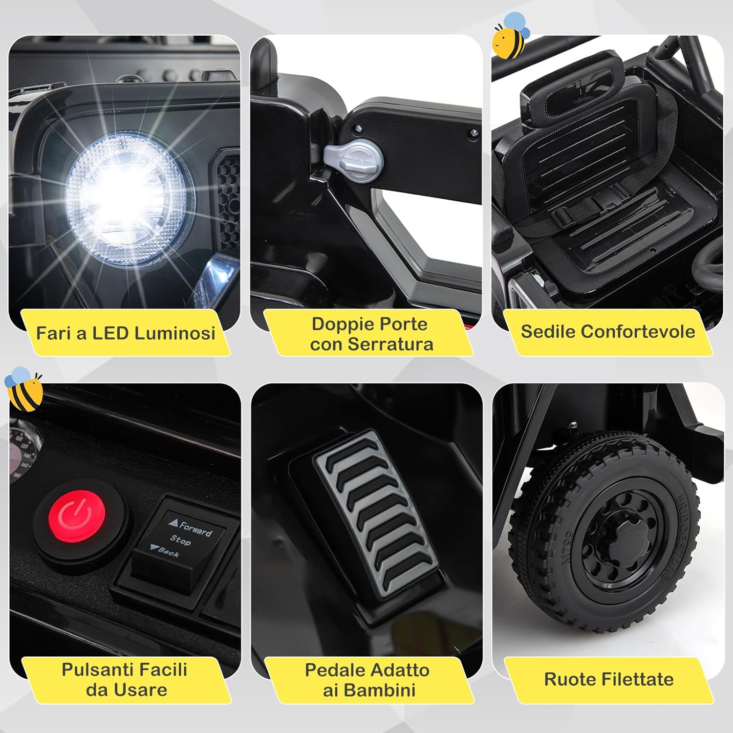 【Opzioni di Controllo Doppio】I bambini possono guidare questo camion giocattolo utilizzando il volante e il pedale intuitivi. Inoltre, i genitori possono prendere il controllo con il telecomando quando necessario, garantendo maggiore sicurezza e tranquillità. Gli interruttori comodi permettono transizioni senza problemi tra i 2 modi. 【Prestazioni Eccezionali】Dotato di una batteria ricaricabile da 12V, questo veicolo elettrico a batteria promette periodi di gioco prolungati per i più piccoli. I motori potenti da 12V migliorano le prestazioni e la durata dell'auto, assicurando divertimento senza fine. 【Design Portatile e Confortevole】Progettato pensando alla comodità, questo veicolo elettrico a batteria viene fornito con un manico portatile e ruote per il trasporto per facilitare il movimento e lo stoccaggio. Il sedile è dotato di una cintura di sicurezza regolabile per un comfort personalizzabile, completato da 2 porte bloccabili per maggiore sicurezza. 【Caratteristiche Interattive e Divertenti】I fari LED luminosi stimolano l'immaginazione e le avventure del tuo bambino. Inoltre, questo camion giocattolo è dotato di musica integrata, ABC, racconti, clacson e suoni del motore per intrattenere e coinvolgere il tuo piccolo pilota per ore. La porta USB consente il collegamento a dispositivi esterni per opzioni di intrattenimento extra. 【Regalo Fantastico per Bambini】Ideale per il gioco indoor e outdoor, il giocattolo a batteria 12V ha ruote antiscivolo e resistenti all'usura che offrono corse stabili e fluide su varie superfici. Questo veicolo motorizzato è un regalo spettacolare per bambini di oltre 3 anni, perfetto per compleanni, Natale o altre occasioni speciali.