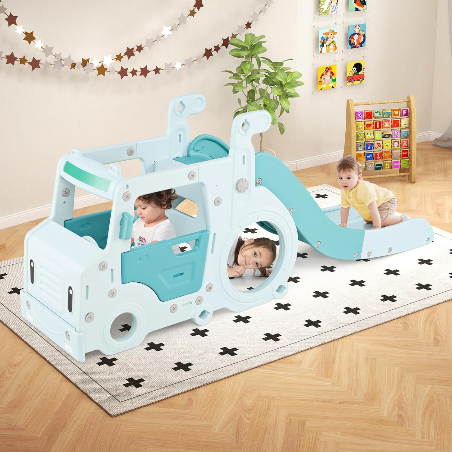 【Set di Scivolo Multifunzione per Bambini】Il set di scivolo per bambini è dotato di uno scivolo, un tunnel per gattonare e una casa giocattolo a forma di autobus per scivolare, gattonare e guidare. Terrà il tuo bambino attivo e intrattenuto per ore. Può ospitare fino a 3 bambini che giocano contemporaneamente. 【Esperienza di Guida Realistica】Dotato di un volante con clacson e leva di comando, questa casa giocattolo a forma di autobus offre avventure immersive per il tuo piccolo. Inoltre, ha due porte apribili e un sedile spazioso per un'esperienza di guida sicura e confortevole. 【Scivolo Sicuro】Questo scivolo è progettato con un'area di attesa, un'area di accelerazione, un'area di decelerazione e un'area di ammortizzazione. I corrimano rialzati e la zona di ammortizzazione estesa garantiscono uno scivolo e un atterraggio sicuri. 【Set di Gioco Amico dei Bambini】Il set di scivolo è realizzato in materiali PE e PP privi di BPA, creando un ambiente di gioco sicuro per i bambini. Gli angoli arrotondati proteggono la pelle delicata dei bambini dai graffi. Inoltre, questo scivolo 3-in-1 porterà loro ricordi d'infanzia indimenticabili e eserciterà le loro abilità motorie. 【Design Pieghevole Conveniente】Quando non è in uso, lo scivolo può essere piegato per risparmiare spazio. La dimensione piegata è di 106 x 45,5 x 190 cm (L x P x A). Puoi riporre il set di scivolo piegato in qualsiasi angolo.