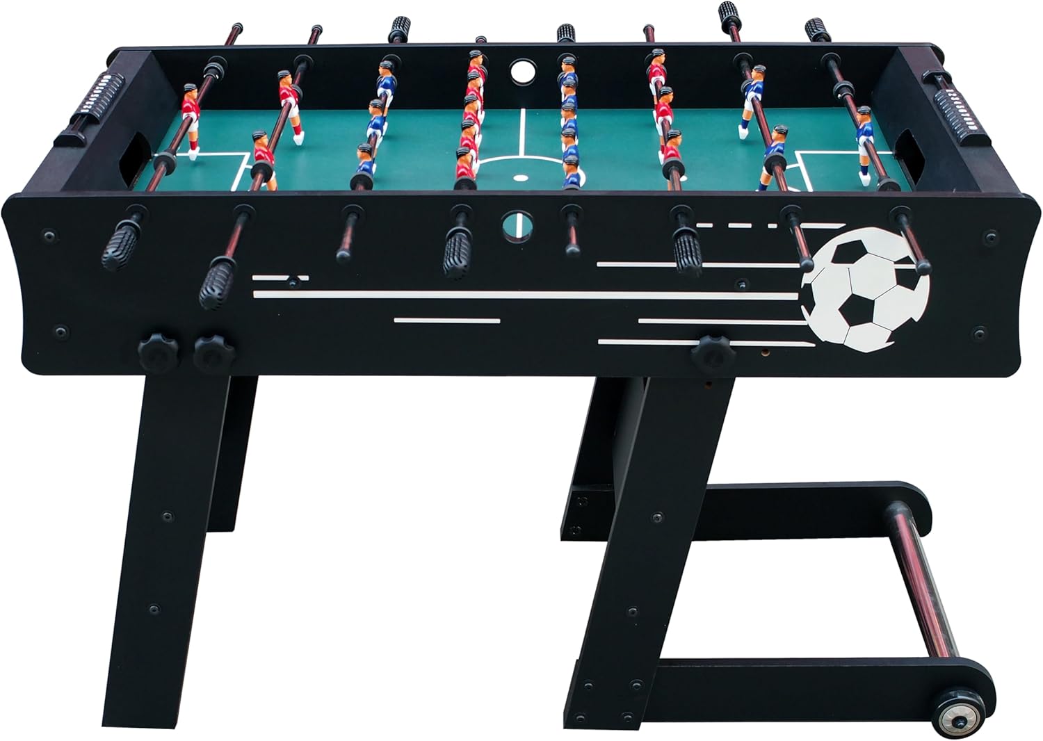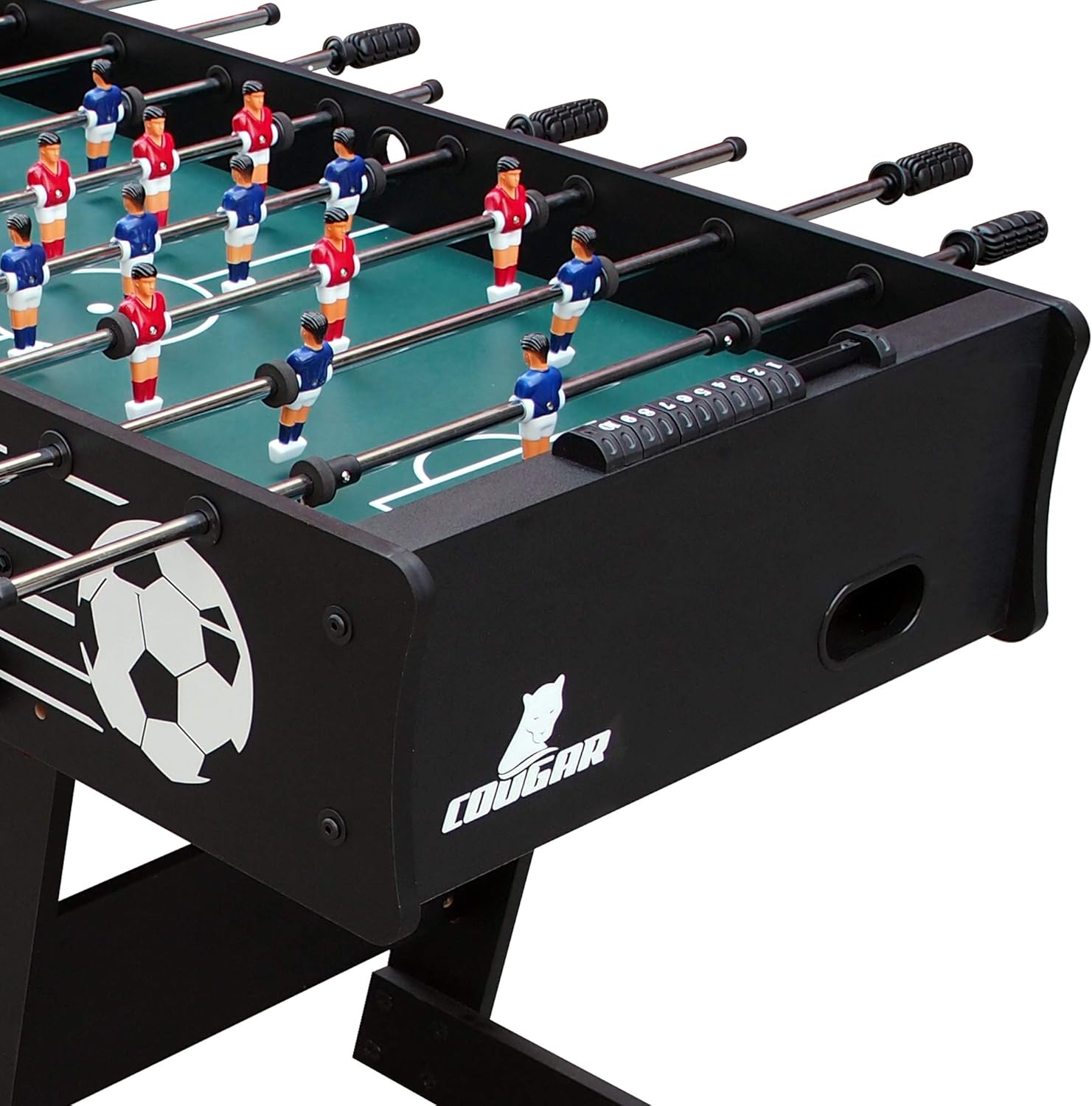 DIVERTIMENTO PER BAMBINI E ADULTI: Con il nostro tavolo da calcio Scorpion Kick, il divertimento con la famiglia, gli amici o i colleghi è garantito! Non vedo l'ora di passare insieme delle serate di gioco emozionanti! Il calciobalilla è pieghevole e con i suoi 24 chili è davvero leggero. Basta riporre il calciobalilla dopo il gioco per risparmiare spazio... ALTA QUALITÀ: Il robusto biliardino con pareti laterali spesse 15 mm è montato sul telaio di base pieghevole. Grazie al solido supporto, il nostro biliardino non traballa nemmeno durante le partite di calcio con il massimo utilizzo. Le aste da gioco cromate sono comode da usare grazie alle maniglie in PP. Il tavolo da calcio è adatto per uso interno e facile da montare. DIMENSIONI TAVOLO DA CALCIO (L x P x H): 122 x 61 x 8 cm. Il calcio balilla ha una superficie di gioco di 1 1,6 x 58 cm. La superficie di gioco è dotata di uno strato superiore di robusto PVC, che si inclina leggermente più in alto agli angoli. Questo evita che la palla si fermi in modo indesiderato. PESO: 24 chili. ACCESSORI INCLUSI: La nostra scatola di biliardino Scorpion Kick viene fornita con 2 palle (Ø31mm) e un contapunti. Così ogni giocatore sa in qualsiasi momento se ha bisogno di fare un passo avanti! Le buche di rimessa sulla linea centrale garantiscono un inizio corretto del gioco! COUGAR: Porta l'emozione di una partita a calcio balilla, air hockey o biliardo nelle tue quattro mura con Cougar! Con i tavoli da gioco di Cougar, ore di divertimento sono garantite per grandi e piccini. I nostri prodotti sono realizzati con materiali di alta qualità e sono adatti ai bambini (e agli adulti) a partire dai 5 anni.