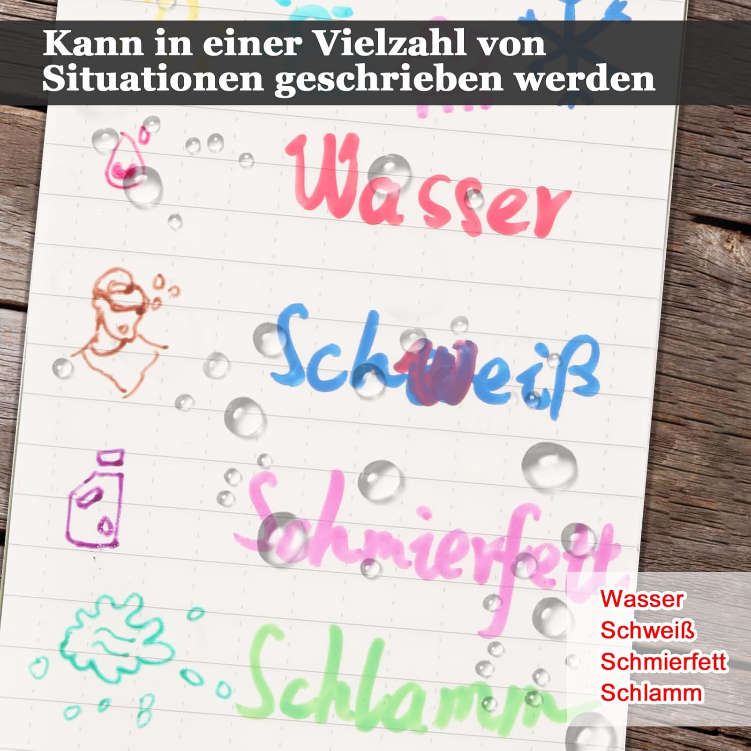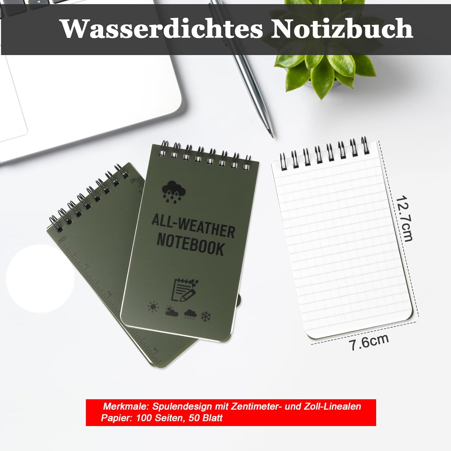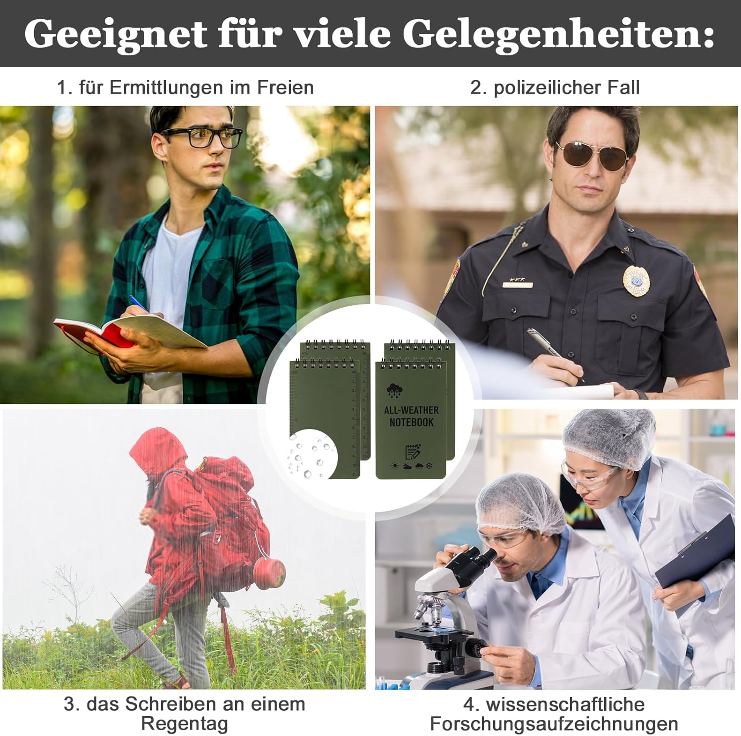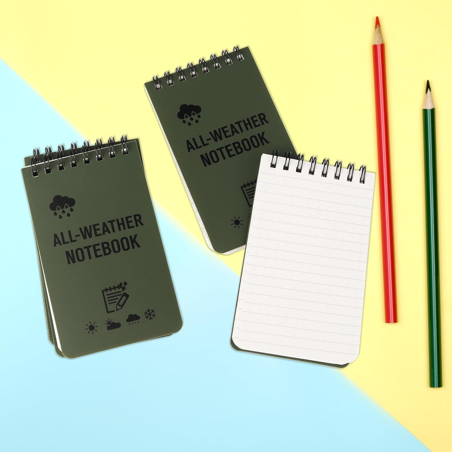 Notebook impermeabile al 100%: confezione da 4 notebook impermeabili, 100 pagine/50 fogli per notebook impermeabile per soddisfare le tue esigenze. Il nostro notebook adatto a tutte le stagioni è resistente all'acqua e al fango e non si marcisce troppo, anche in caso di incidente con il bucato. Dimensioni tascabili: il taccuino tascabile impermeabile misura 3 "x 5". Le piccole dimensioni tascabili e il design robusto possono essere utilizzati come taccuino della polizia, taccuino da golf, diario, promemoria, taccuino da campo o taccuino. Con un righello stampato sul retro del taccuino tascabile, taccuino con scala in pollici e centimetri. Materiale di alta qualità: il piccolo taccuino tascabile è realizzato in carta di pietra resistente e impermeabile, rispettosa dell'ambiente. Questo taccuino impermeabile e robusto è più resistente a strappi, strappi e pieghe rispetto ai comuni taccuini di carta per scrivere sotto la pioggia: con cosa scrivere? Copertura in PVC impermeabile e carta di pietra. Usa una matita o una penna per tutte le stagioni nei giorni di pioggia e i tuoi appunti rimarranno intatti. Quando la carta è asciutta, penne a sfera e pennarelli indelebili funzionano perfettamente. La scelta migliore: un taccuino impermeabile ideale per tutte le stagioni, adatto a tutte le condizioni atmosferiche. Puoi utilizzare questo notebook resistente alle intemperie in diverse occasioni, come viaggi, campeggio e ufficio, soprattutto per attività all'aperto
