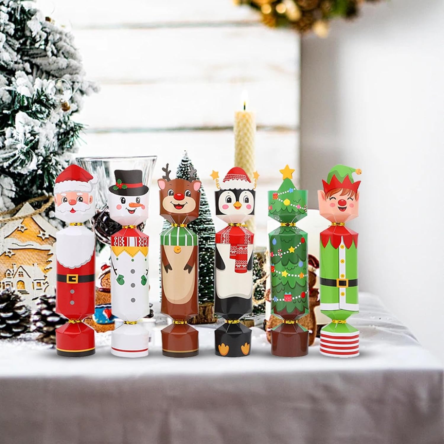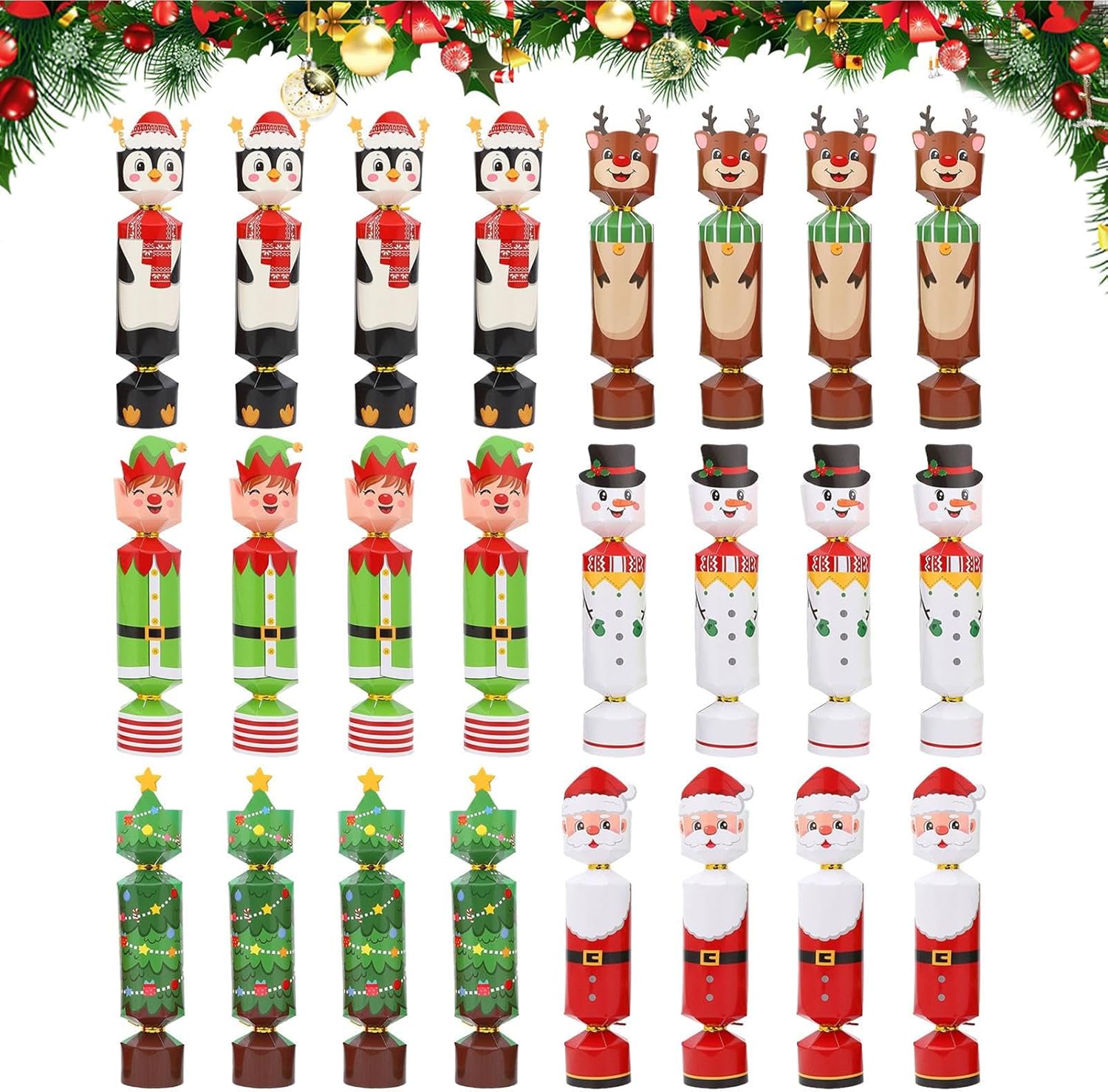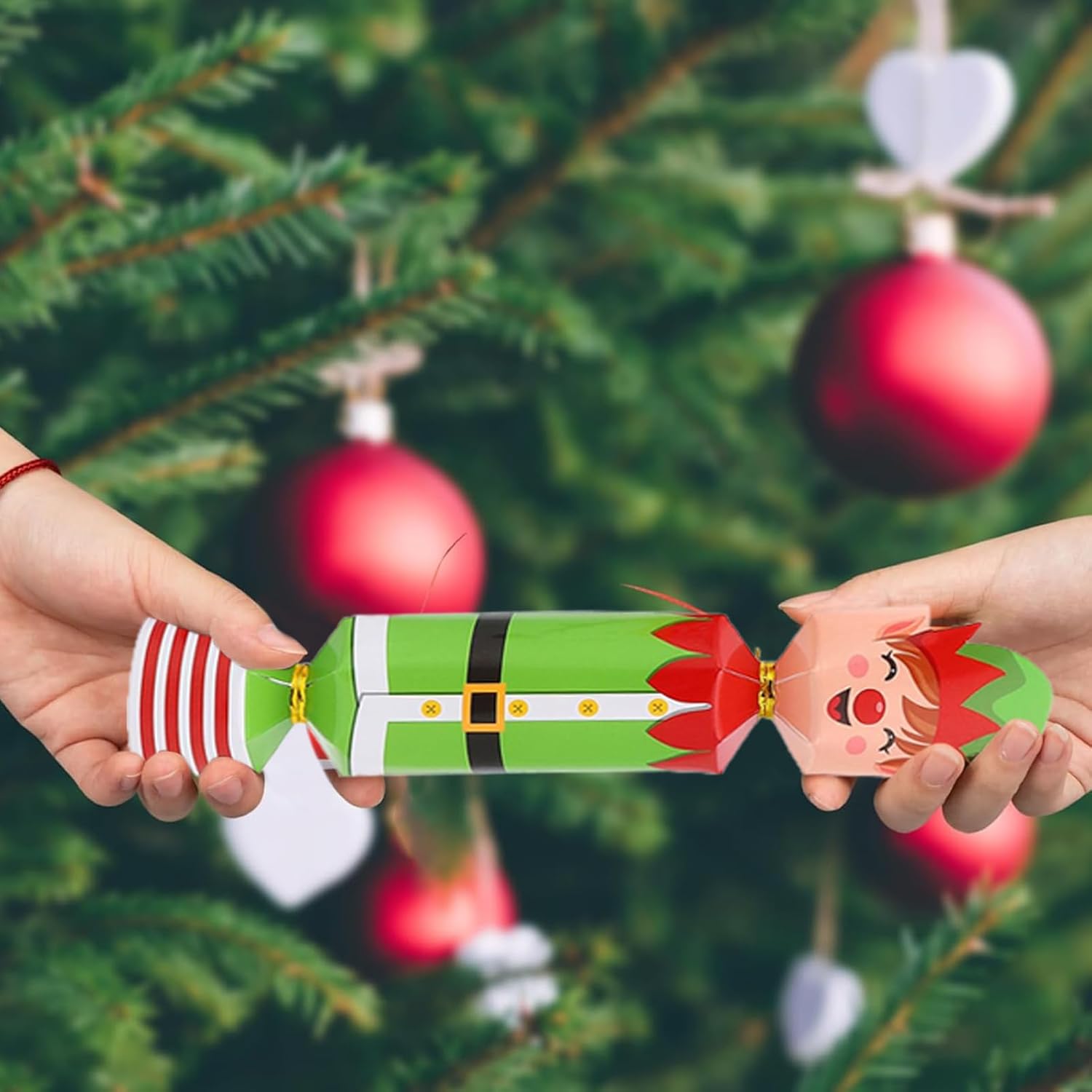 Festività ideale: aggiungi fascino alle feste utilizzando 24 scatole di caramelle confezionate con mini regali misteriosi, realizzate per migliorare il fascino dei cracker natalizi durante le celebrazioni ideali per le vacanze Pensieroso per l'utente: realizzato per la sicurezza e la facilità, il design senza clip assicura un uso senza problemi migliorando l'allegria delle vacanze con la sua semplice funzione di apertura Porta un'atmosfera festiva: porta gioia alle celebrazioni usando cracker interattivi, crea un'atmosfera vivace e intrattiene ogni ospite durante l'attività di scambio presente Festa visiva a tema Babbo Natale: progettati con elementi di Babbo Natale e albero in toni allegri, questi cracker offrono una straordinaria festa visiva mentre raddoppiano come deliziosi ricordi delle vacanze Regalo pratico: portando felicità a bambini e adulti, questi cracker natalizi arricchiscono i momenti caldi della famiglia, assicurando che rimangano una scelta regalo amata per le festività natalizie