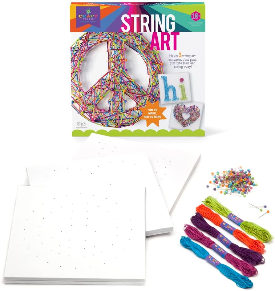 | Included Components | 3 8.5” pre-printed sturdy foam canvases, 60 yards of thread, 170 pins, instructions |